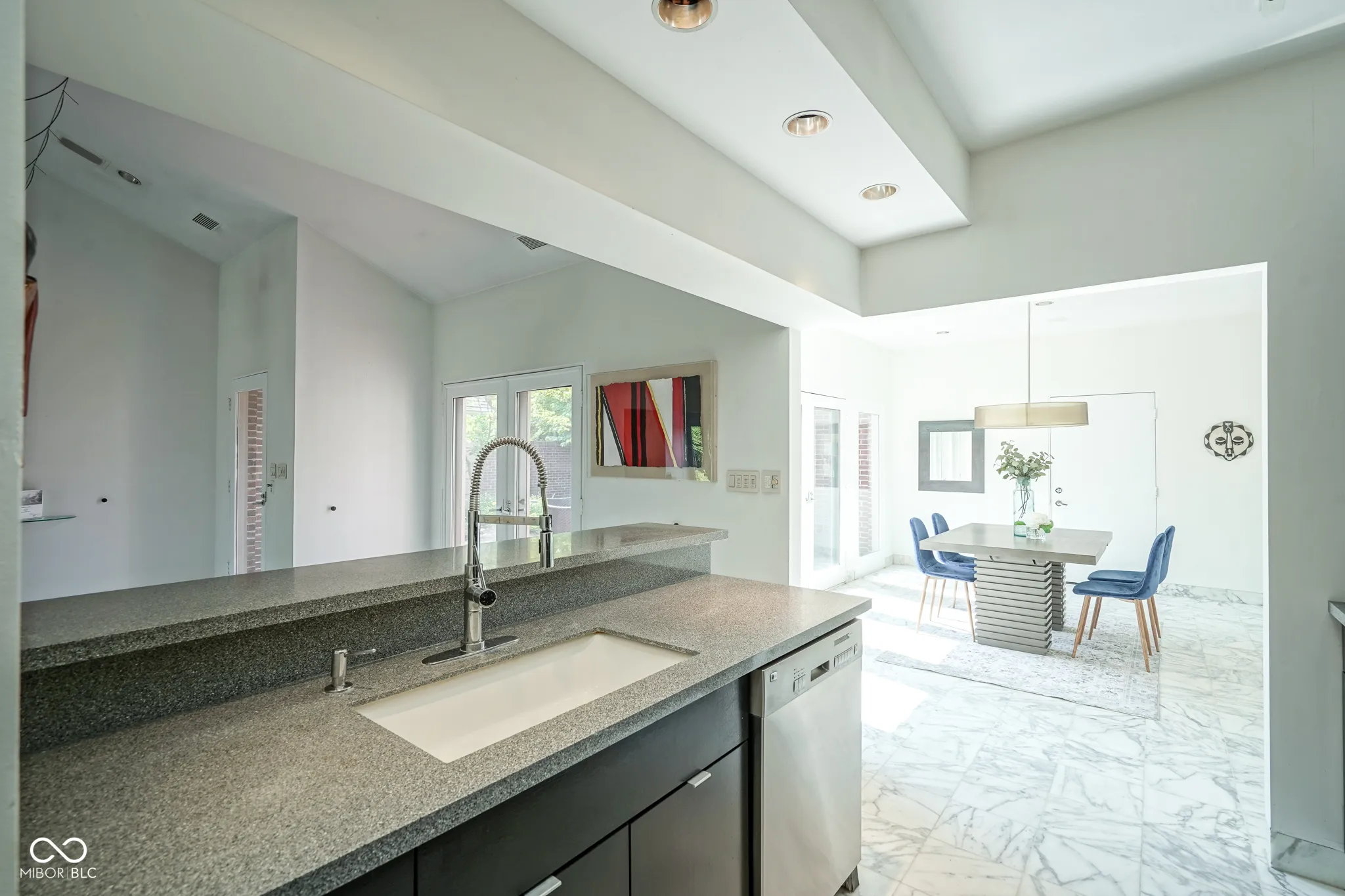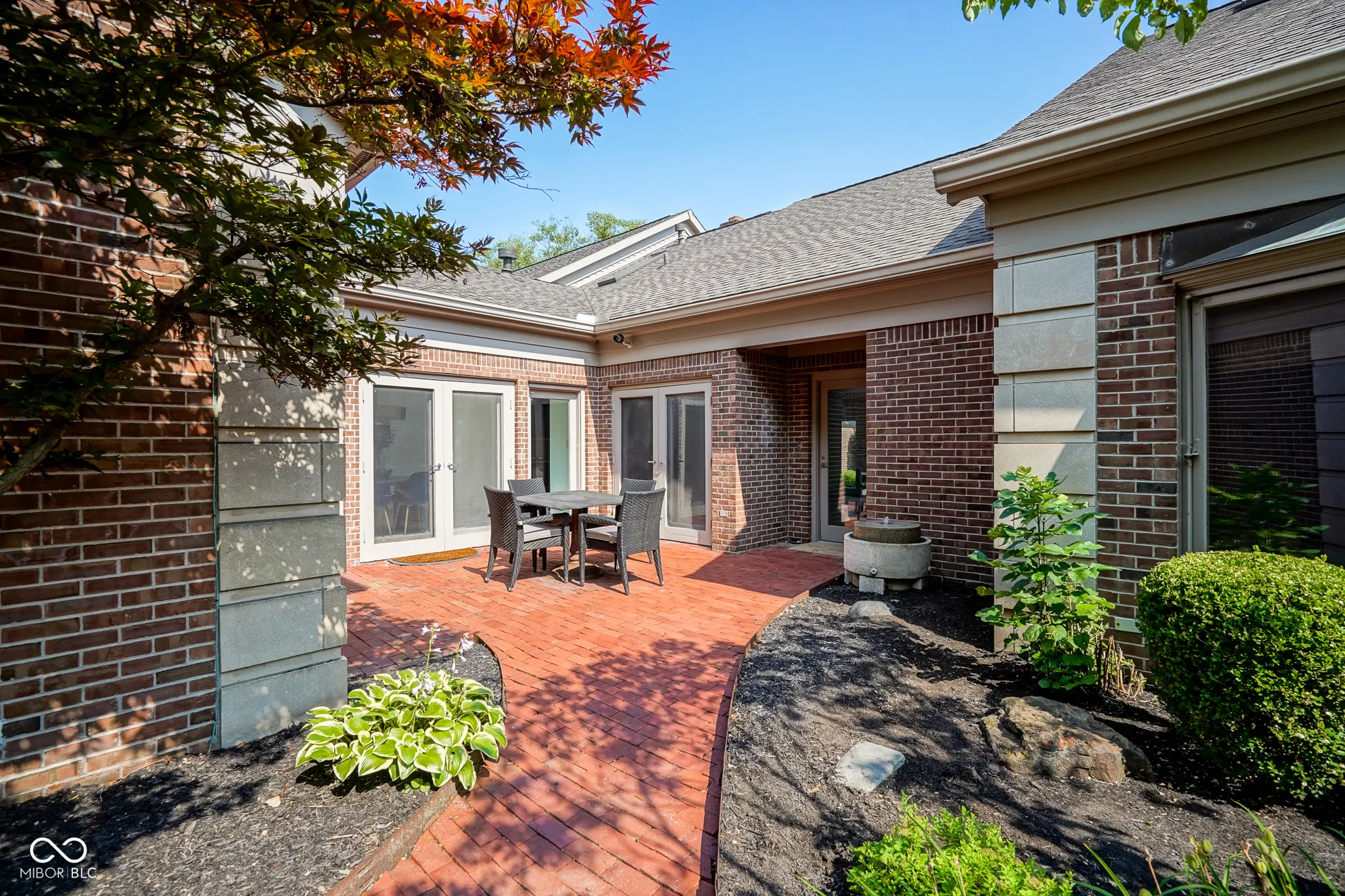 Airy Olde Mill condo brings the light inside and embraces the amazing outdoor views! Enter through your private courtyard and enjoy the soaring ceiling and open spaces. The crisp marble floors show off endless possibilities as you overlook the living room and water fountain. The kitchen has a breakfast bar and opens into the dining area and family room. The cozy den has beautiful bookshelves and breathtaking views of the outdoors. Primary bedroom offers a fireplace, bookshelves, plenty of closets, and a large fabulous bathroom with tub and walkin shower to pamper you! Private back patio overlooks the wonderful pond and fountain with one of the best views in the community. You will enjoy the clubhouse, pool, tennis and a vibrant community.