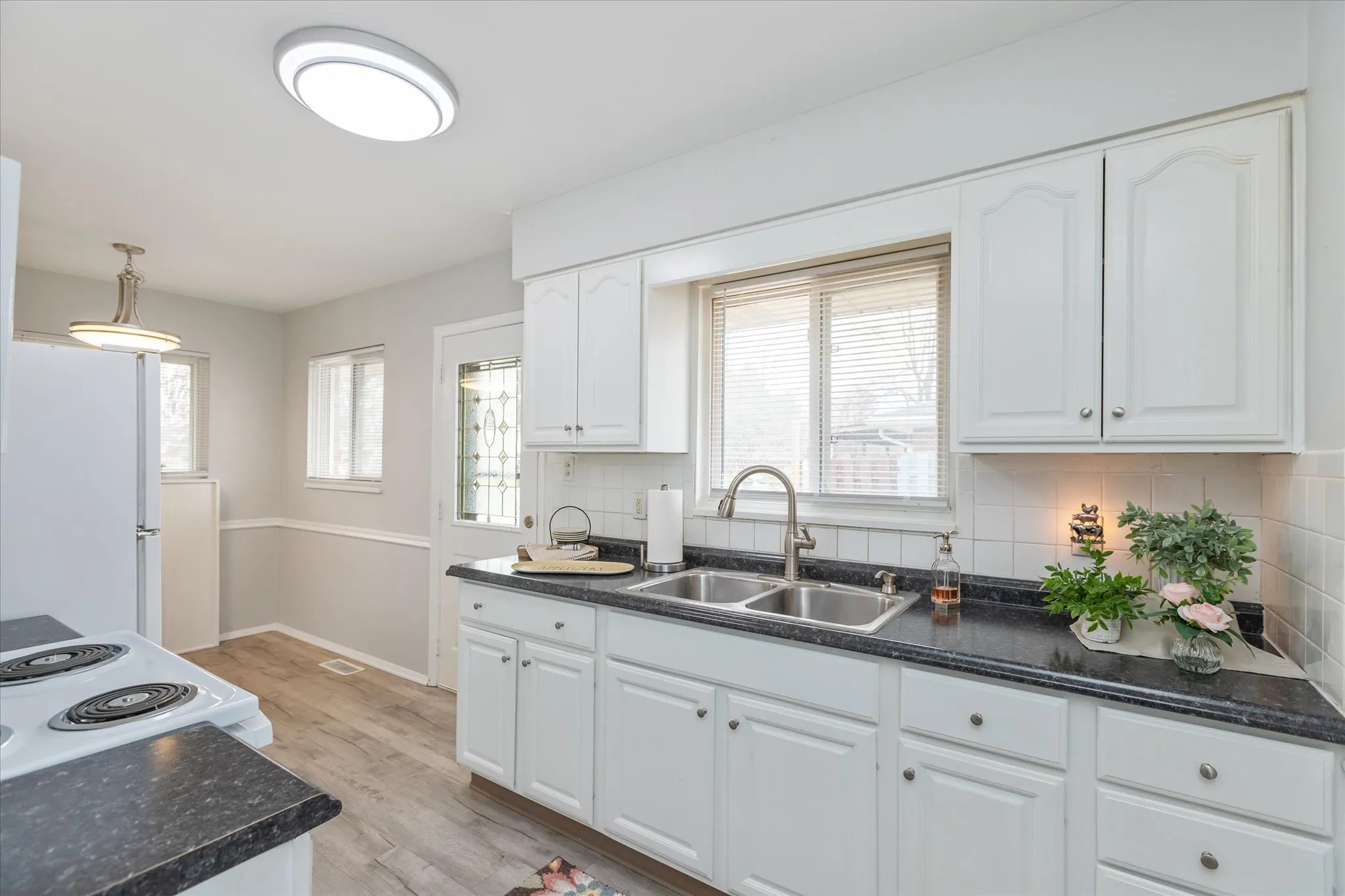 Move right in to this adorable 3 bedroom, 1.5 bath brick ranch with a FULL basement in popular Beech Grove! The living room and bedrooms boast beautiful, original hardwood floors. The full bath was recently renovated with a refinished tub, new sink and vanity, and new flooring. The eat-in kitchen features updated flooring, countertops and sink with painted cabinets and a brand new stove. The DRY, full basement has tons of potential, including a workshop space, washer/dryer hookups and a half bath. A corner lot provides a larger yard and plenty of parking space with the oversized driveway. Close to interstates, shopping and many restaurants. Schedule your showing today!