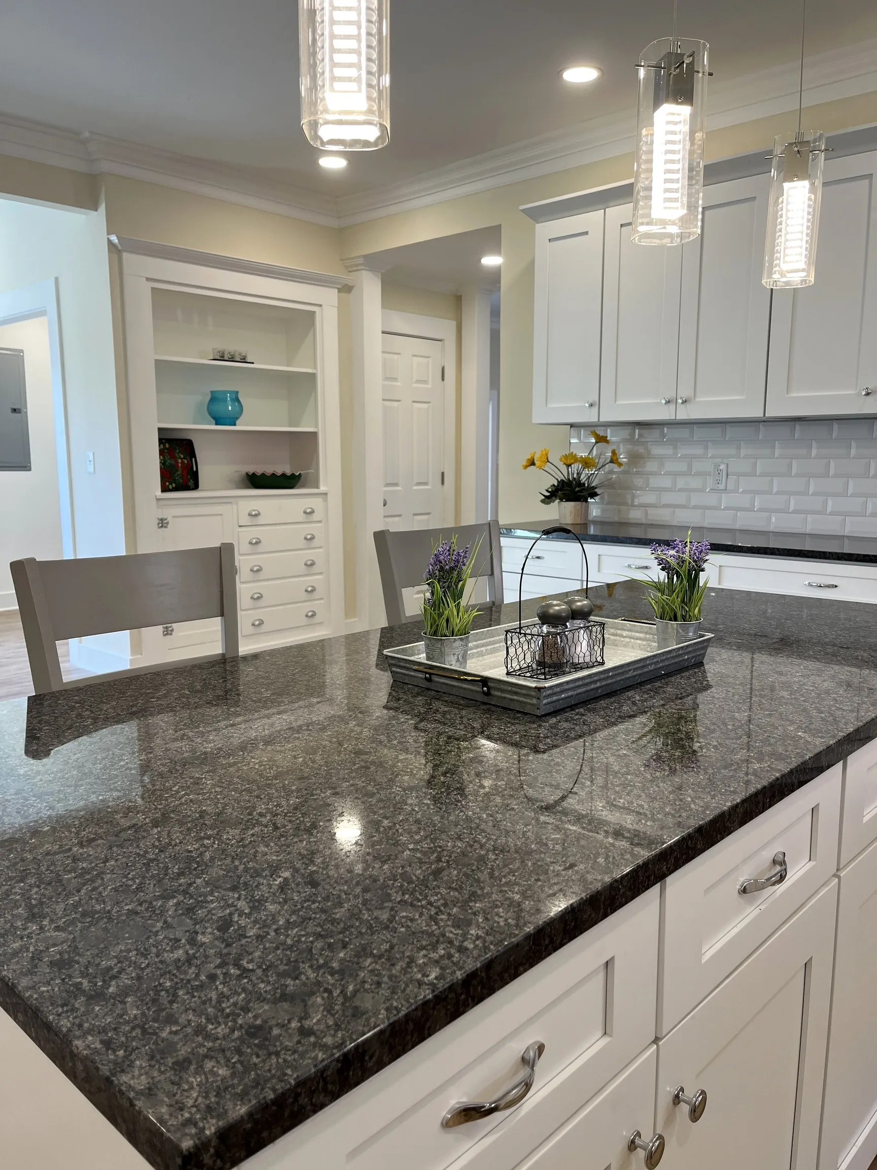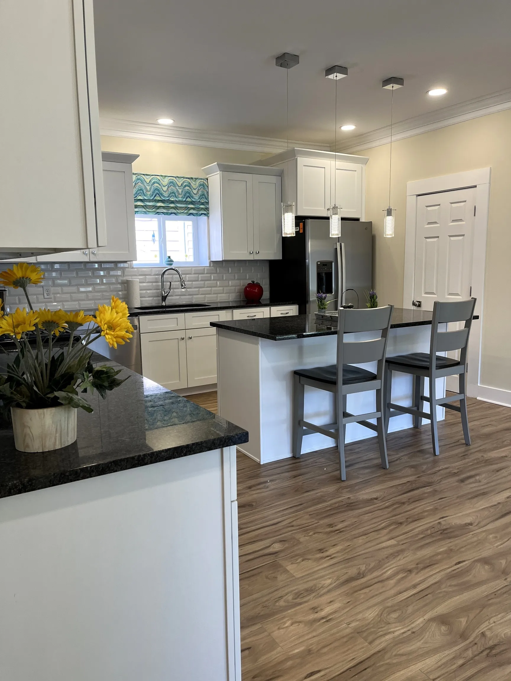 On Martinsville’s historic Jefferson street is a rare opportunity to own this charming 100 year old home which has been thoughtfully and thoroughly transformed into the 21st century! Being walking distance to downtown is unique these days, and this bold one is only 2 blocks to the new amphitheater and a short walk to restaurants, shops, and government offices. Sunlight pours into this open floor plan thru new windows showing off its 10′ ceilings down and 9′ up. Every room has plenty of space to spread out. Kitchen is well equipped with lots of cabinets and center island topped with granite countertops, new stainless steel appliances, and pantry. Seating available at the island and space for a kitchen table. Original restored built-in cabinet provides additional drawers and display area for your decor. Laundry, access to basement, and door to attached garage are off breakfast room. Most of main floor is covered with natural color easy care laminate; upstairs is waterproof LVP. Front bay window and 2 arched transom windows add character to the home. Main floor office provides functional space for those who work at home and many other uses. Sliding door from dining room opens to huge screened porch to enjoy the warmer months. Main floor master has access to a private deck for relaxing any time of the day. The tiled master bath boasts double sinks, dressing table, 6′ shower, linen closet, and walk-in closet. Stairway leads to 3 large bedrooms, 2 full baths, and an open space which could have many uses including watching TV, studying, or playing games. Outside, the house has been outfitted with a grand front porch entry with sparkling beveled glass windows in the front door and sidelights, new ‘SmartLap’ siding, an eye-catching custom color pallet, new sidewalks, alley access to the new oversized 2-car attached garage, and a backyard for activities. Street paving completed. Truly a special place! We welcome you to come experience all this beautiful home has to offer!