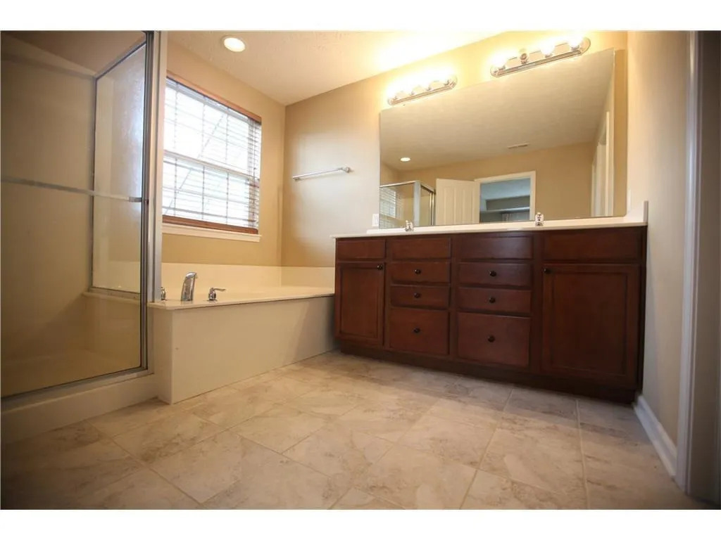 Executive Style Home in Carmel for rent, 4 Bedrooms plus Loft, 3 1/2 Baths, with a Finished Basement, 2 story foyer, Open and spacious home, formal living, formal dining, Den/Study, hardwood floors, gas fireplace, kitchen has center island, granite counters, backsplash, stainless steel appliances, beautiful maple cabinets, lots of windows, master bath has garden tub, separate shower, raised double vanities, laundry room on Main level, basement has a projector screen, recreational area, large covered porch at the back, 3 car garage. This is a beautiful home, neighborhood pool and playground close by, Carmel Clay Schools.