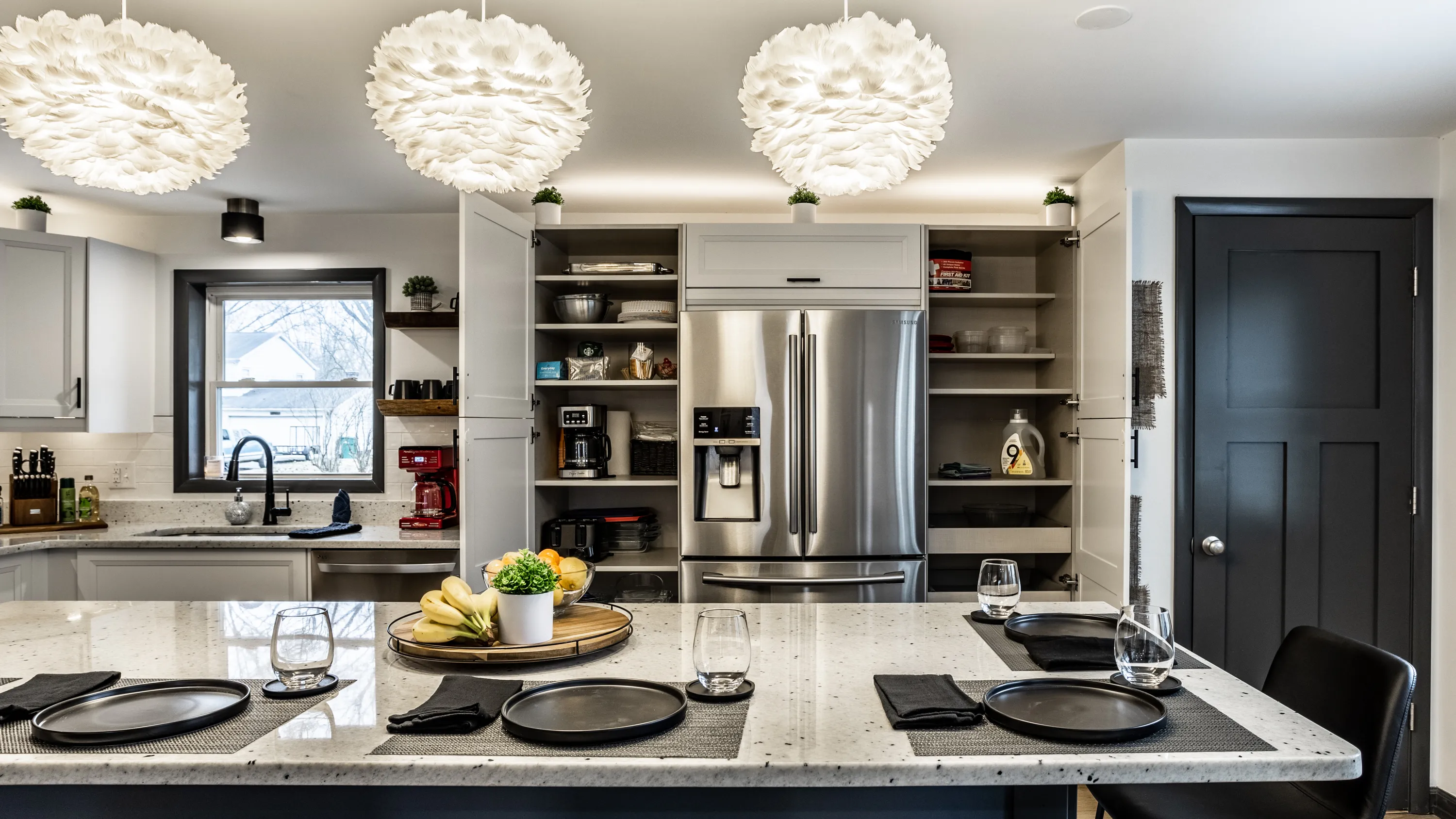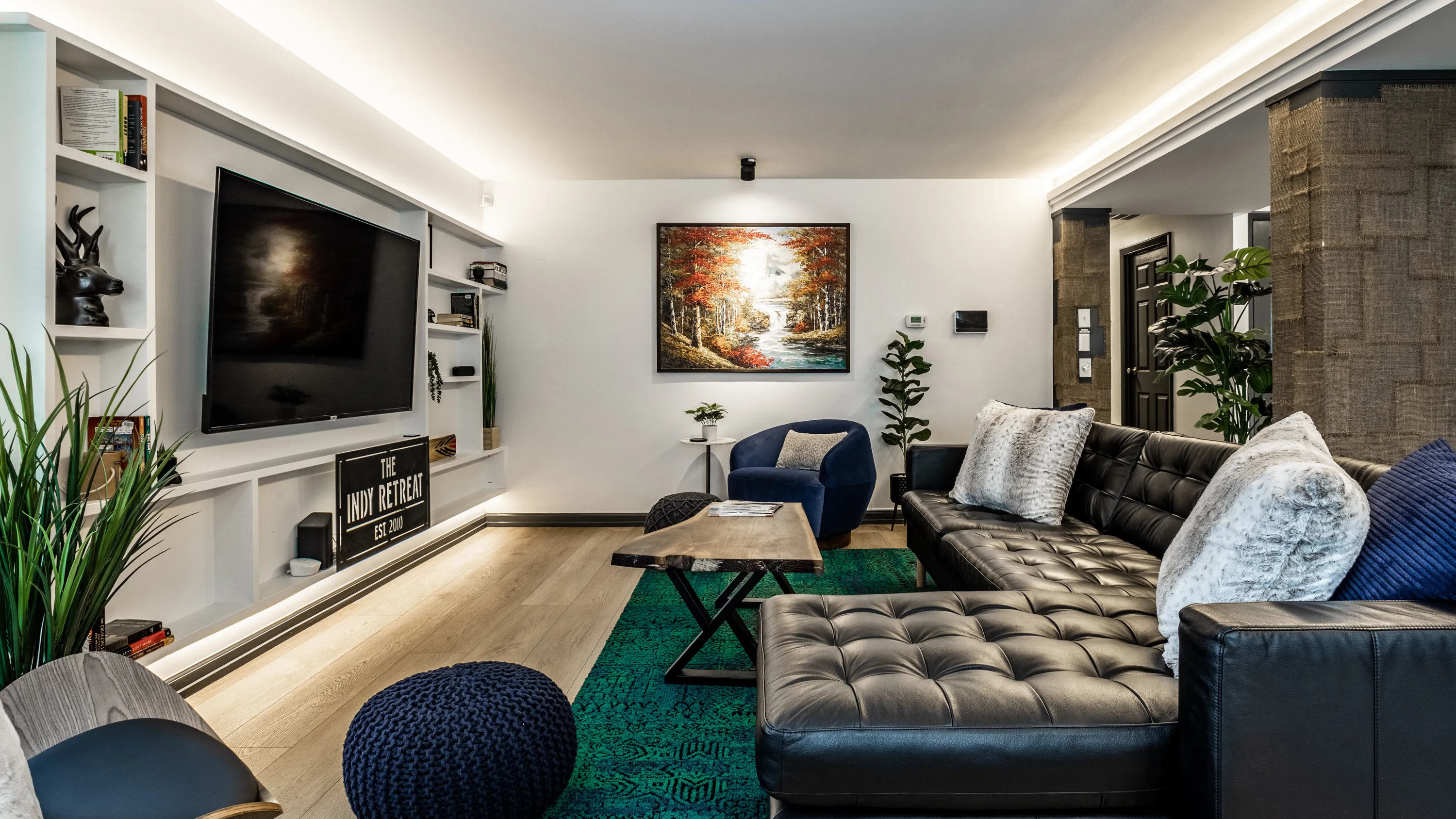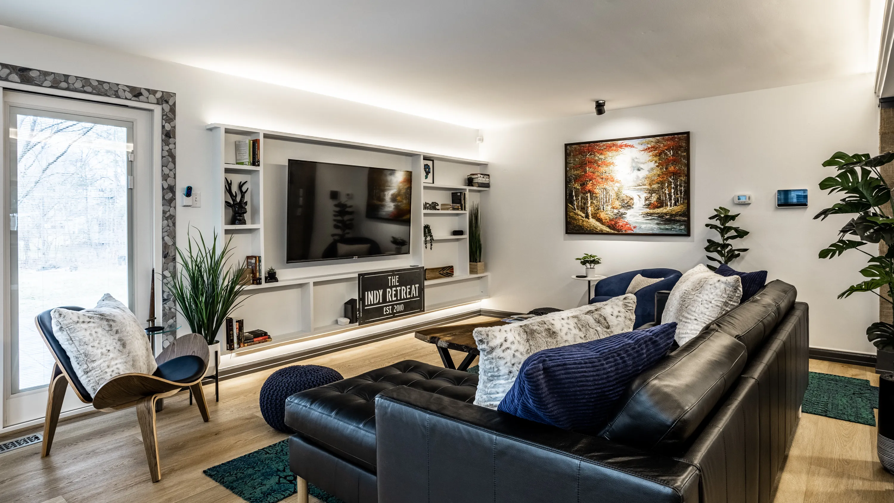 Welcome to the INDY RETREAT!! Professionally remodeled furnished home nestled next to everything on Indy’s Northside. Open concept modern and stylish Kitchen and Living room with plenty of space in the main body of the home. 3 bedrooms with 2 full baths featuring a primary suite with primary bath enclosed! Gorgeous 9′ granite island for xtra seating, wine cooler and brand-new appliances throughout! Home is totally furnished and includes utilities as well as lawn care. 3 spacious bedrooms! Bathrooms totally remodeled as well! New Plumbing and electrical throughout. LED dimmable lighting throughout! Large back yard located in Holida in the middle of the neighborhood on a non through road…SUPER QUIET with great neighbors! Private parking for 3 vehicles in the drive! Monitored by Vivint Security Systems with security panel, driveway camera, and keyless access. Bi-Weekly cleanings included!