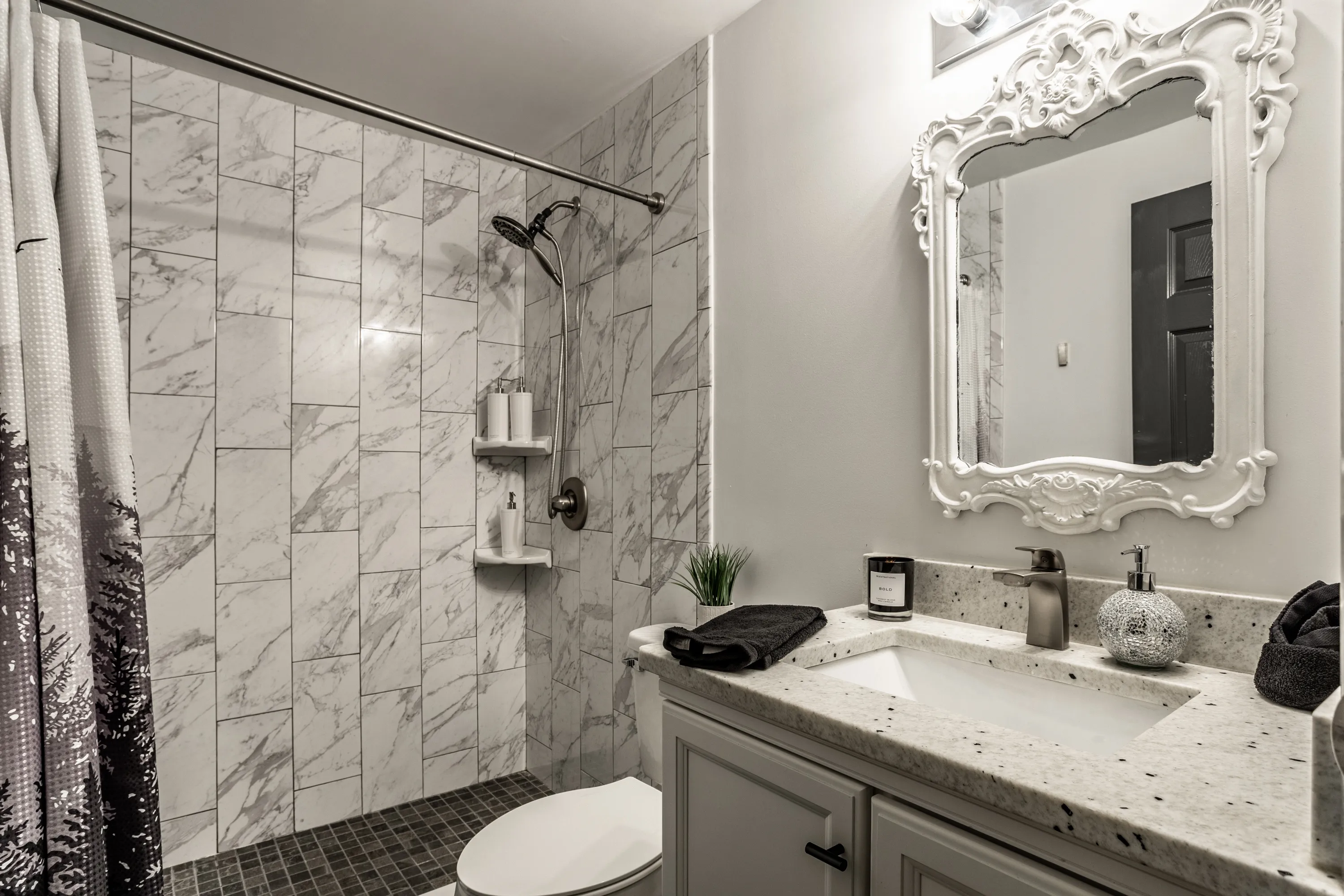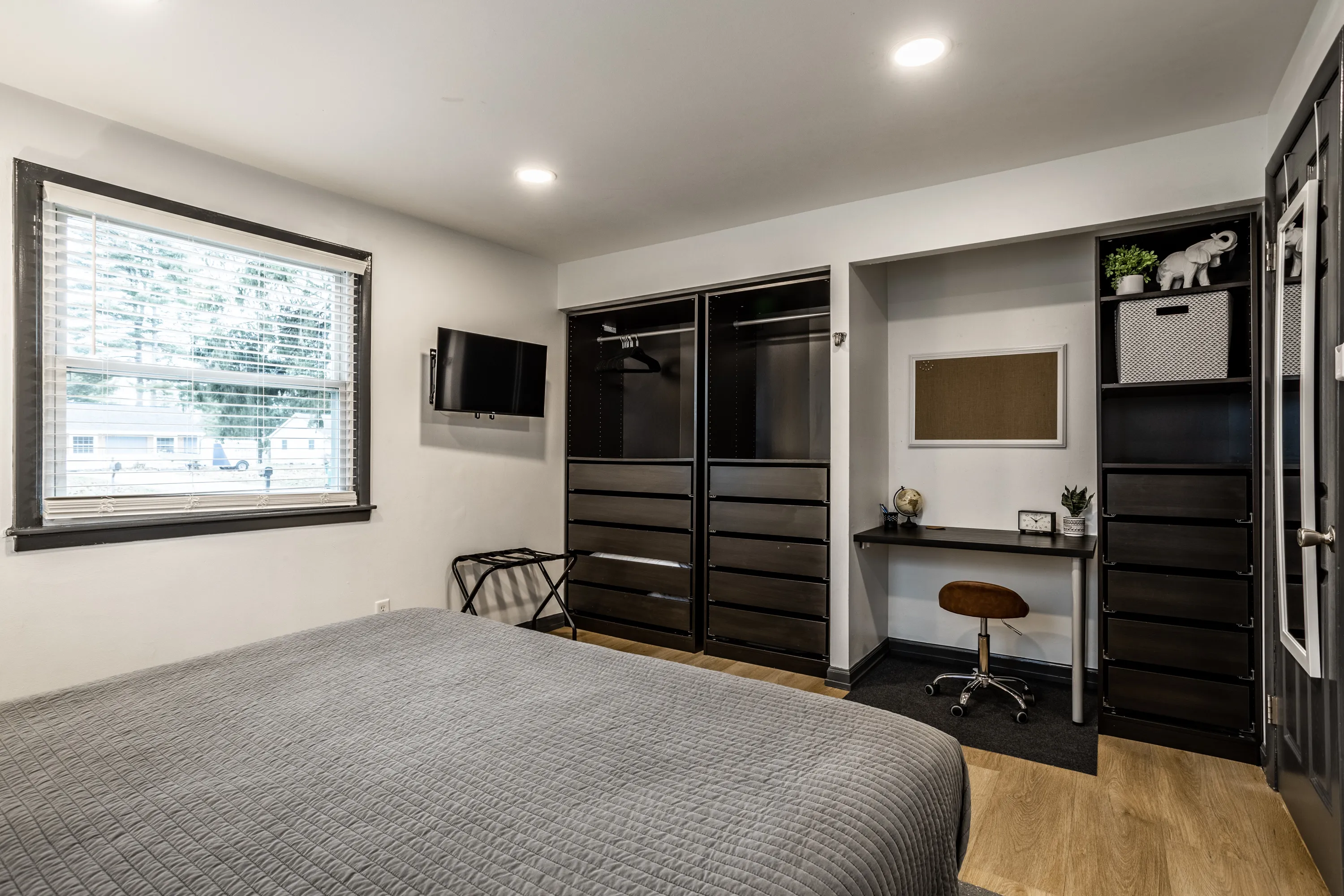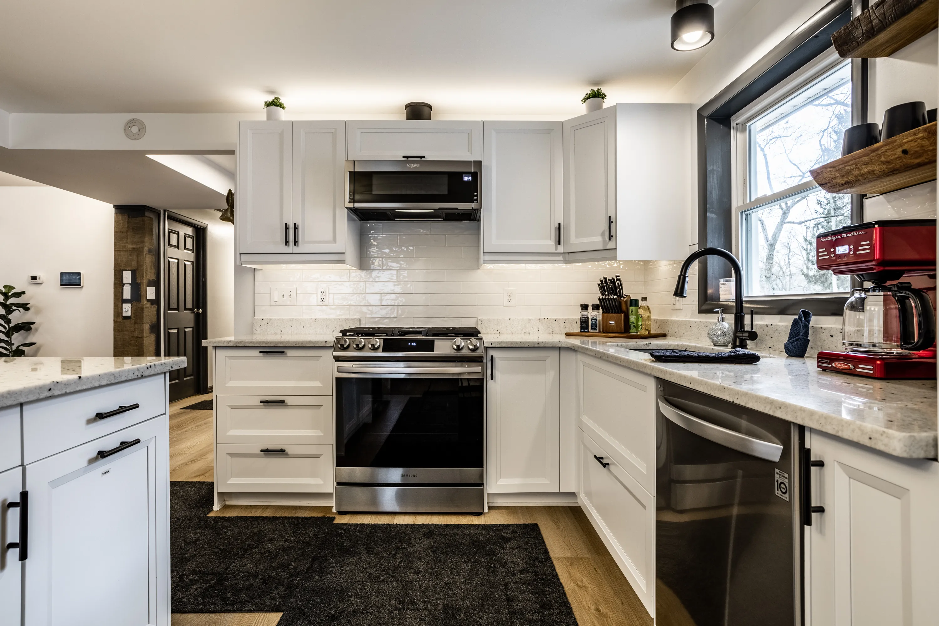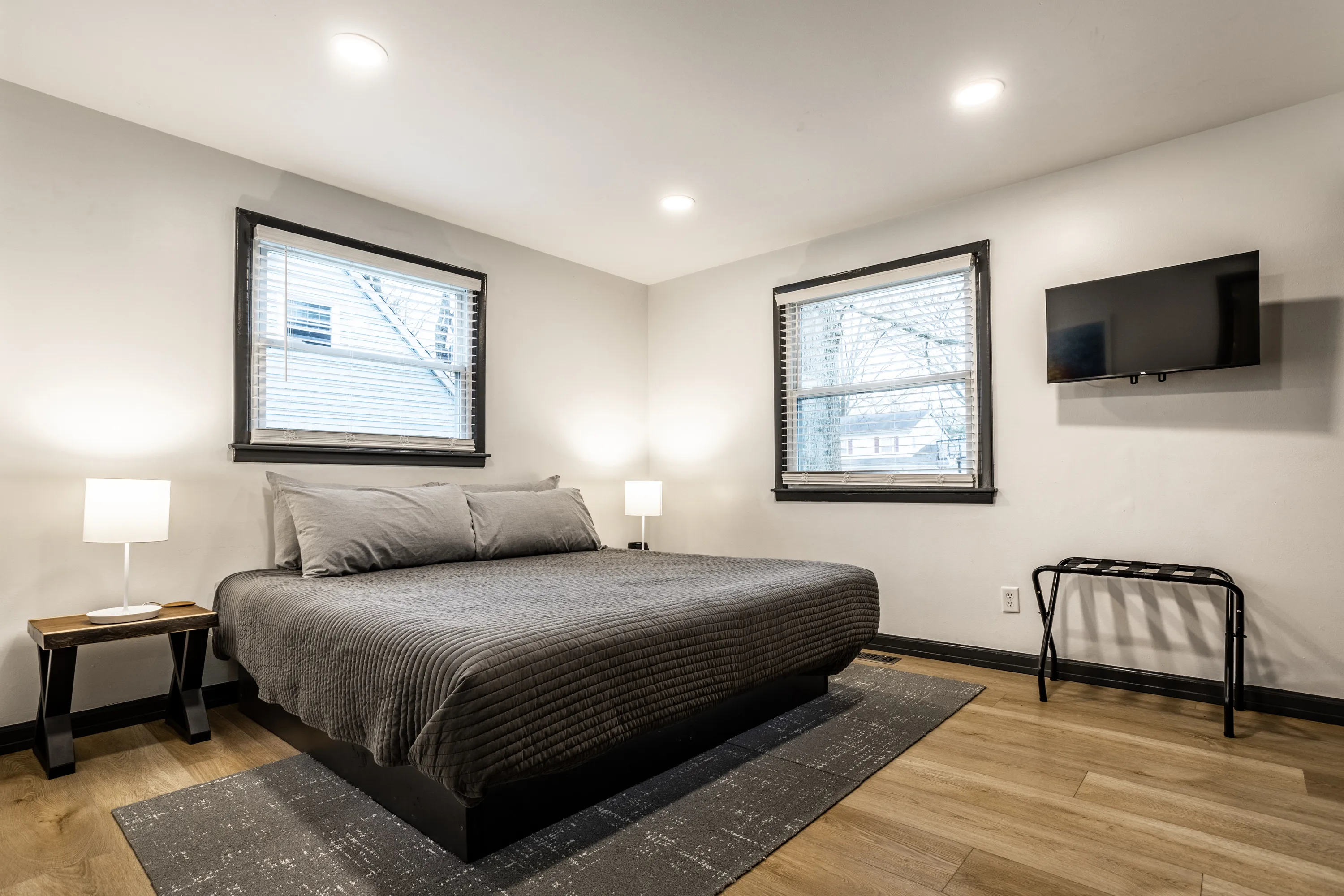 Welcome to the INDY RETREAT!! Professionally remodeled furnished home nestled next to everything on Indy’s Northside. Open concept modern and stylish Kitchen and Living room with plenty of space in the main body of the home. 3 bedrooms with 2 full baths featuring a primary suite with primary bath enclosed! Gorgeous 9′ granite island for xtra seating, wine cooler and brand-new appliances throughout! Home is totally furnished and includes utilities as well as lawn care. 3 spacious bedrooms! Bathrooms totally remodeled as well! New Plumbing and electrical throughout. LED dimmable lighting throughout! Large back yard located in Holida in the middle of the neighborhood on a non through road…SUPER QUIET with great neighbors! Private parking for 3 vehicles in the drive! Monitored by Vivint Security Systems with security panel, driveway camera, and keyless access. Bi-Weekly cleanings included!
