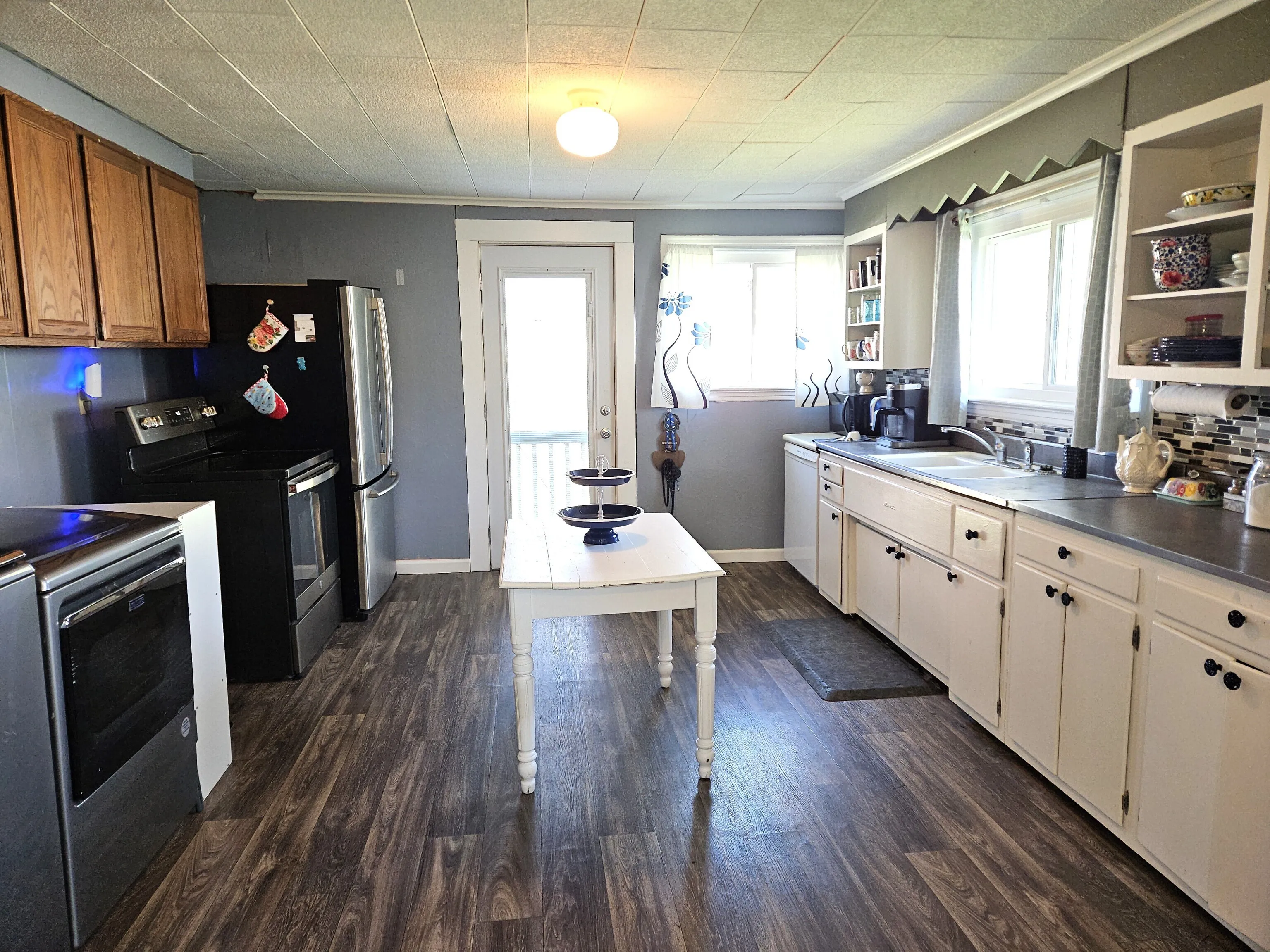 Adorable & affordable 2 bedroom home in St Paul now available! This home offers an inviting enclosed sunroom (not included in sq footage) with tons of windows & shiplap walls. The enormous living room has space for 2 different areas if desired and can be closed off with the trendy sliding barn door. If you enjoy retro & shabby chic, you’ll love the kitchen with chrome edged countertops & open cabinets, and kitchen appliances are included! The formal dining room is currently used as an office but is large enough to accommodate a big dining table and chairs. Two generous sized bedrooms and the full bath round out the home. The back yard is fenced & there’s a 1 car garage plus off street parking! St Paul offers a restaurant & bar, the Artisian Bakery, gas station, fast food, Dollar General, a community gym & playground, post office, liquor store & recreational campground. Close access to I-74.
