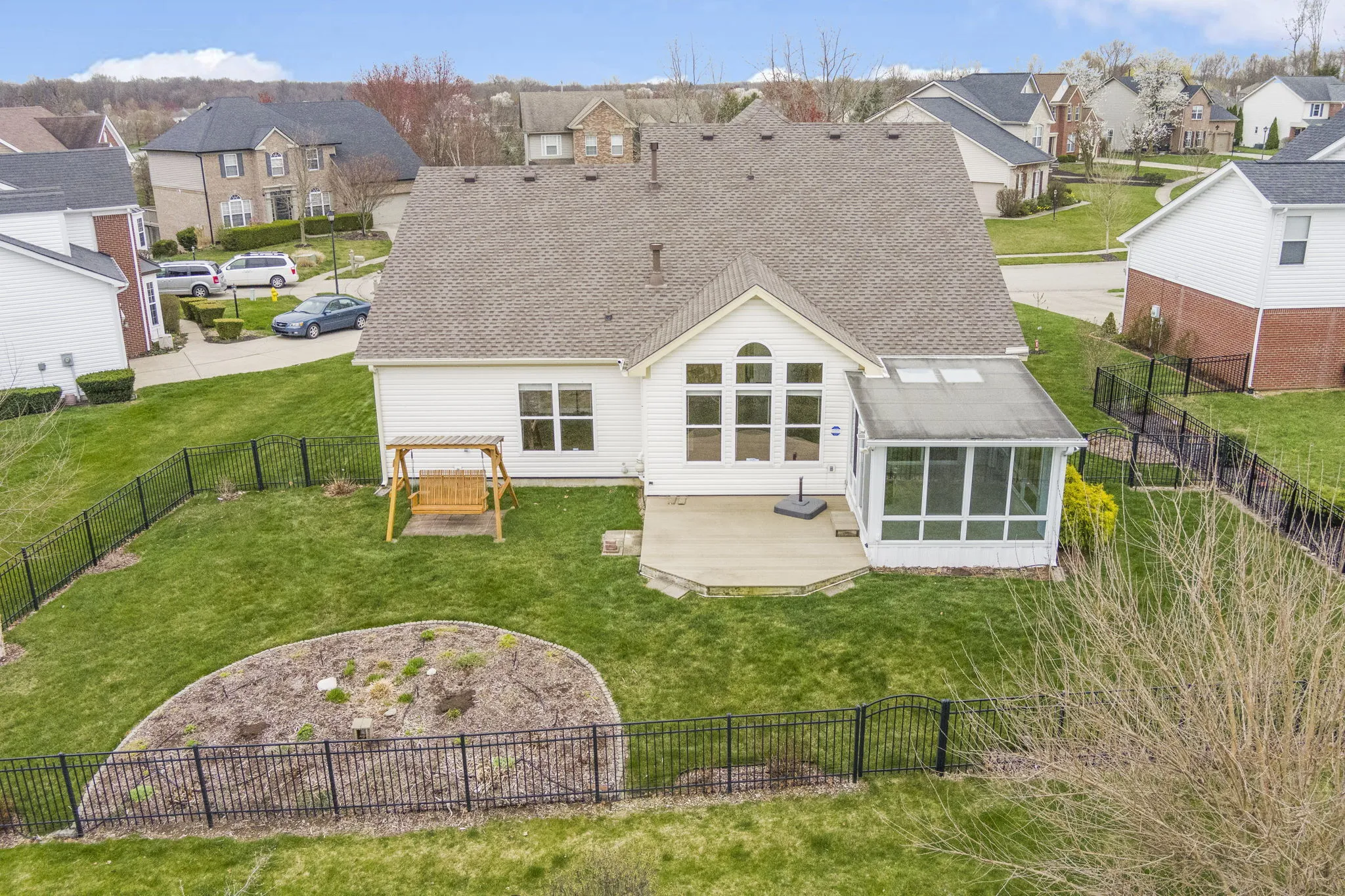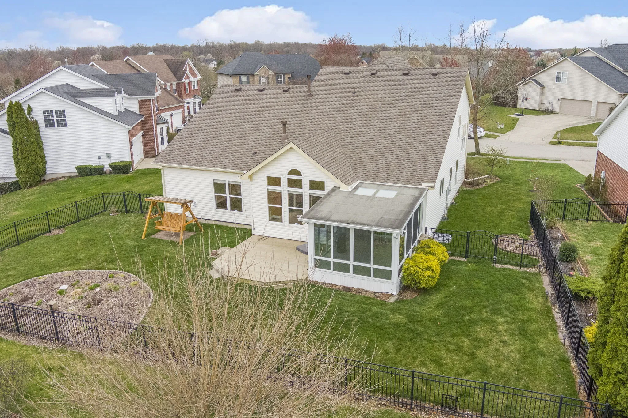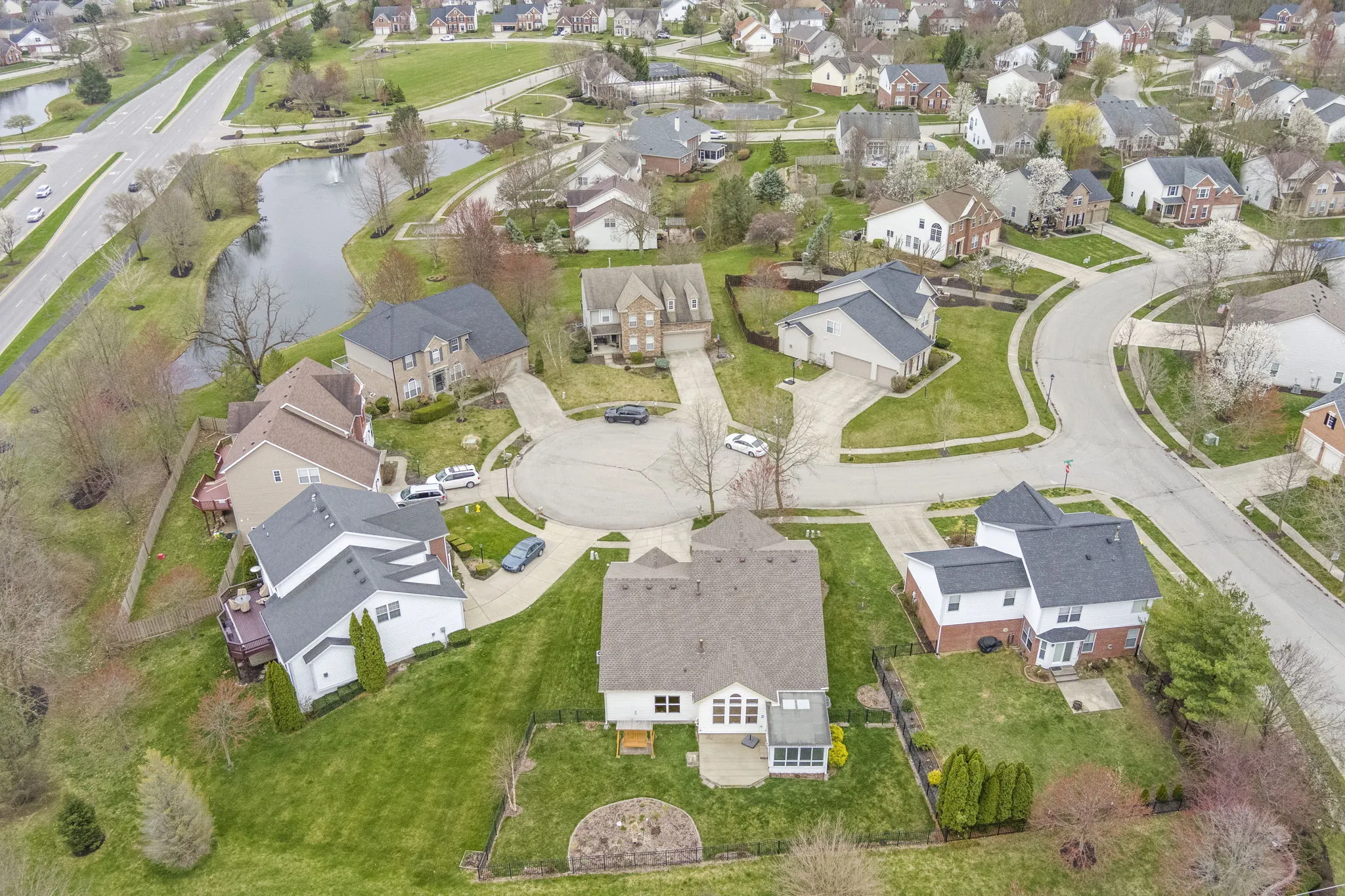 Beautiful, well-maintained home on a quiet cul-de-sac in the Lakes at Hazel Dell! Two-story foyer that opens to a sun-filled living room. Flex room that can be used for formal dining or an office. Spacious family room with soaring cathedral ceiling and large windows open to the kitchen that boasts an extra-large pantry! Three season sunroom! Main level primary suite! Updated primary bath in 2022. 3 additional bedrooms upstairs. One is oversized and perfect for a TV, play or craft room! The sizeable 1,278 SF unfinished basement is ready for you to build out your way. Includes an egress window for adding a bedroom and pre-plumbed for adding a bath. For a complete list of everything that has been updated on this home – ask your realtor for a copy of the Updates and Features sheet in our attachments. Award-winning Carmel schools and great neighborhood amenities that include a pool, playground, basketball court, soccer field and walking trails! Come see this charming East Carmel home before its gone!