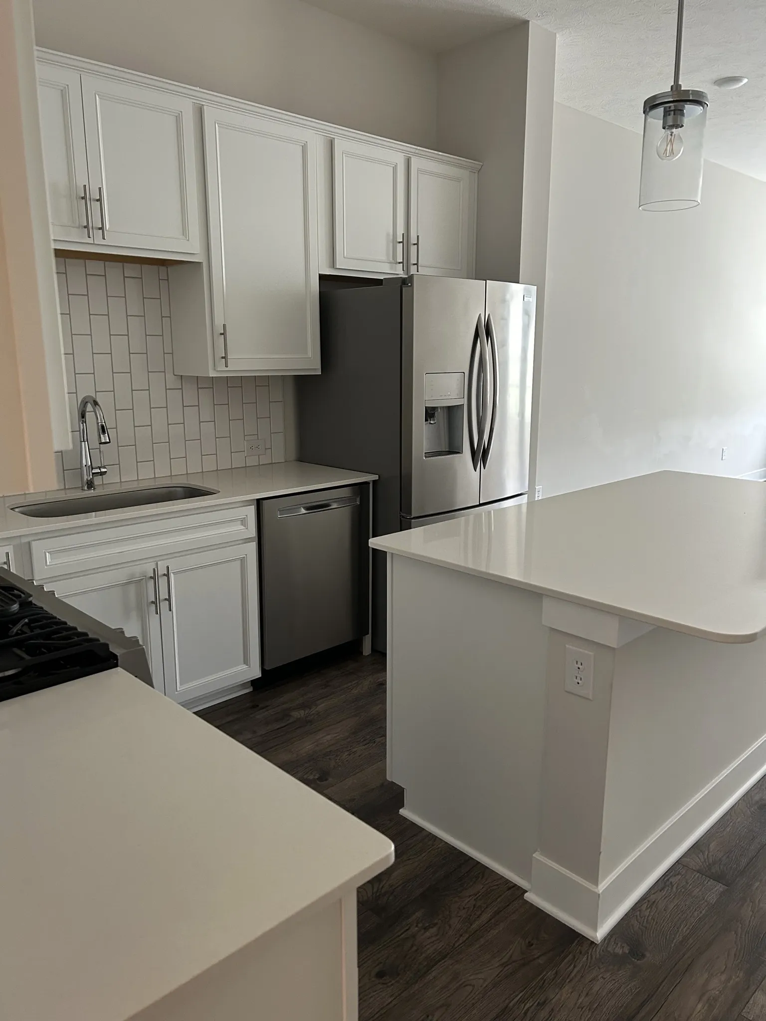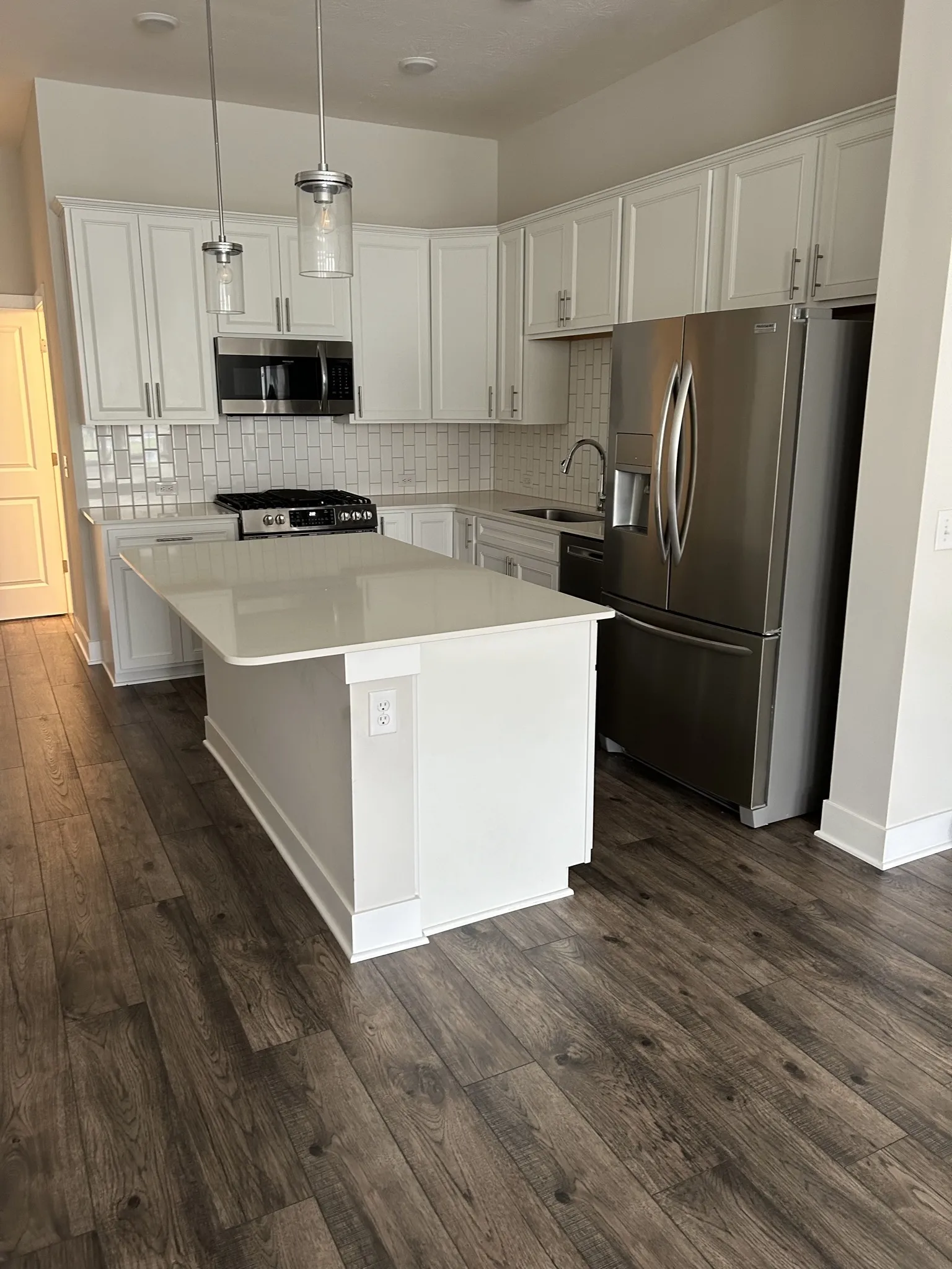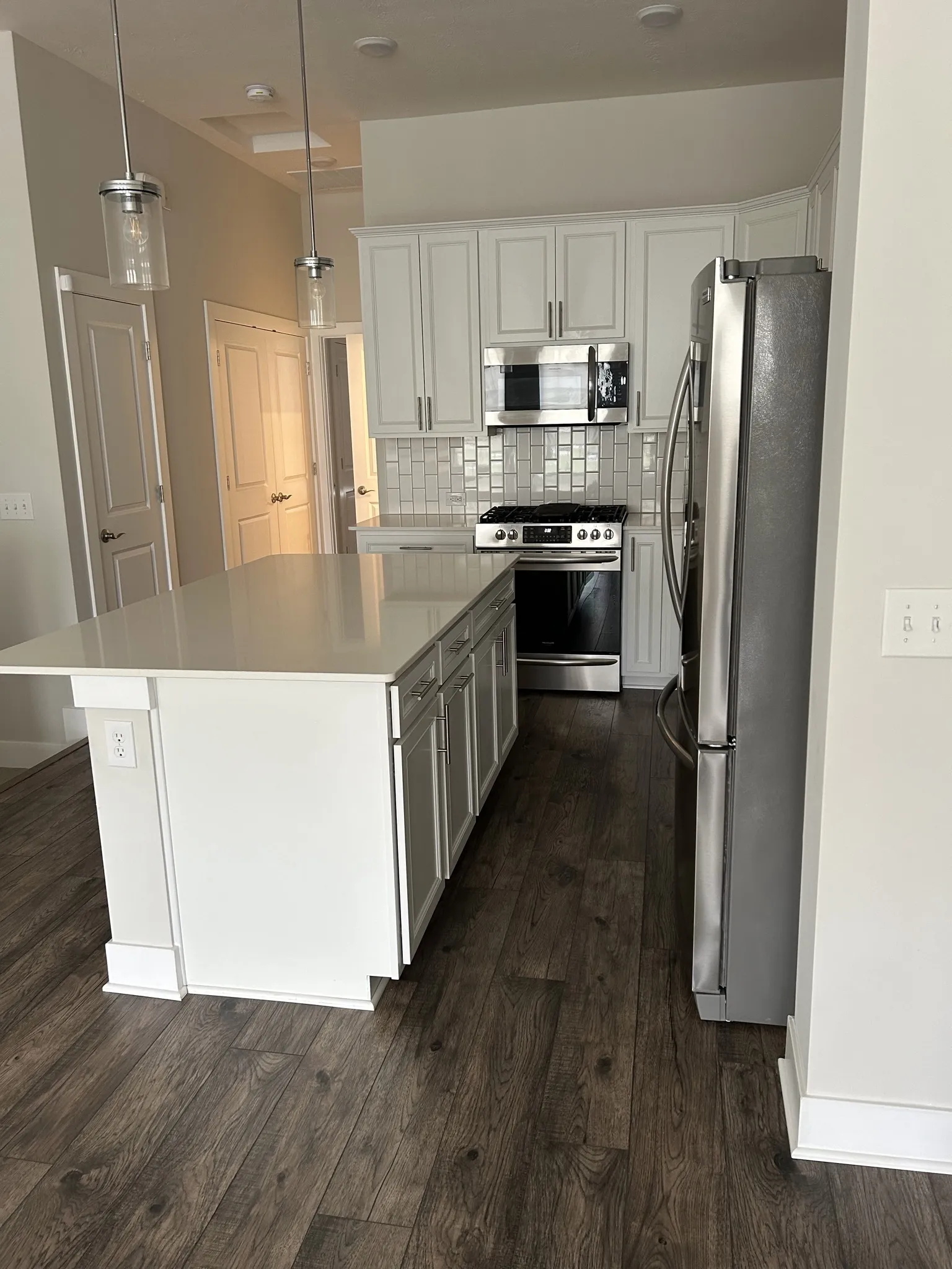 Wonderful Townhome built in 2021 available in Gramercy West for lease. Main level offers extra bedroom or den/office with full bath. Two car attached tandem garage with GDO. Upstairs offers spacious Great room, large Kitchen with plenty of cabinet space, stainless steel appliances including: refrigerator, gas range/stove, dishwasher, microwave. Large center Island with breakfast bar. Unit does include washer and dryer! Master suite is also upstairs and offers a beautiful connected full bath with inviting large shower. Property is close to almost everything and includes a small playground area and swimming pool for the residents. Lots of green space and a “soon to come” Central Park! Pet is “with approval” and under 50lbs.