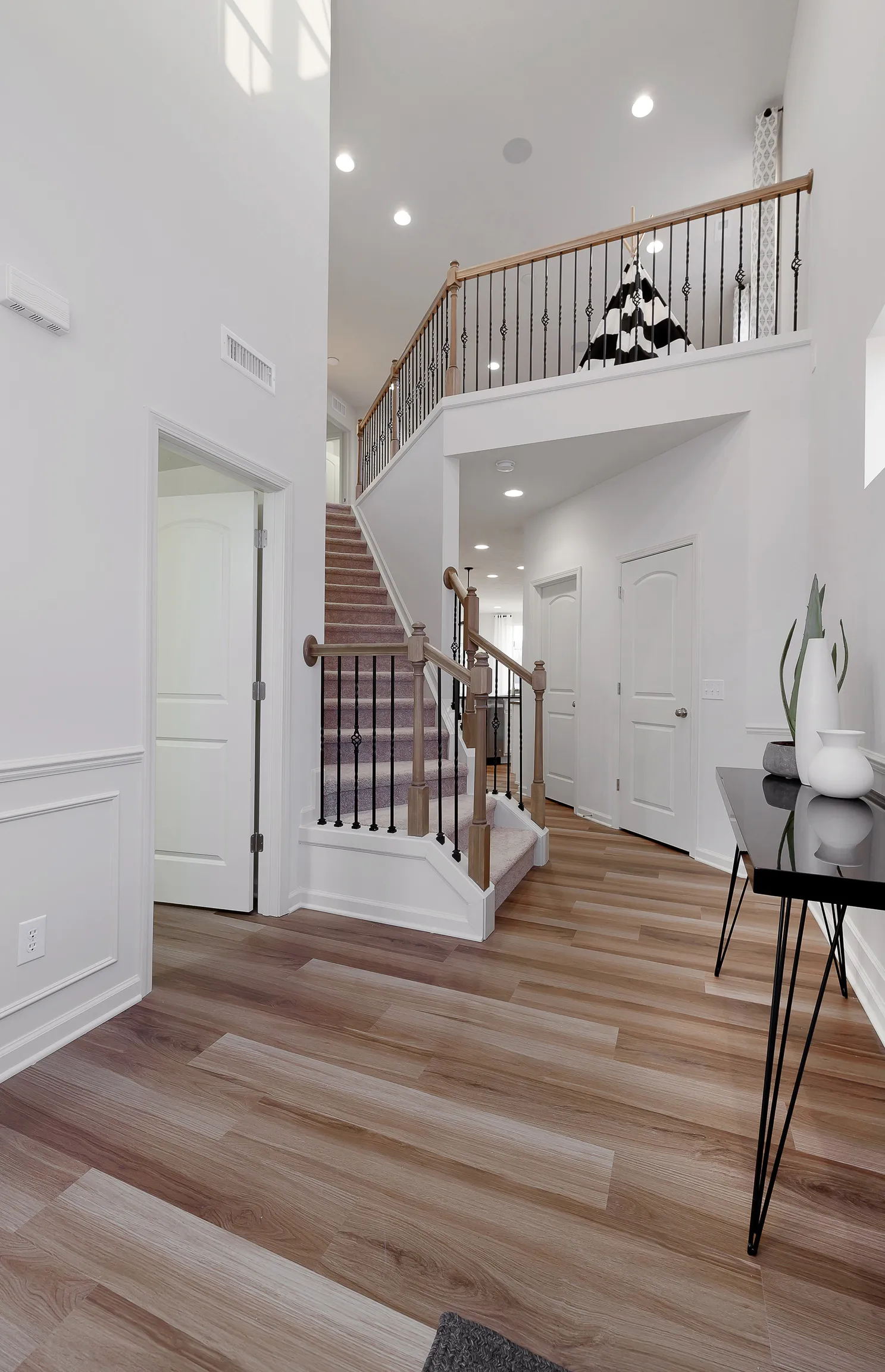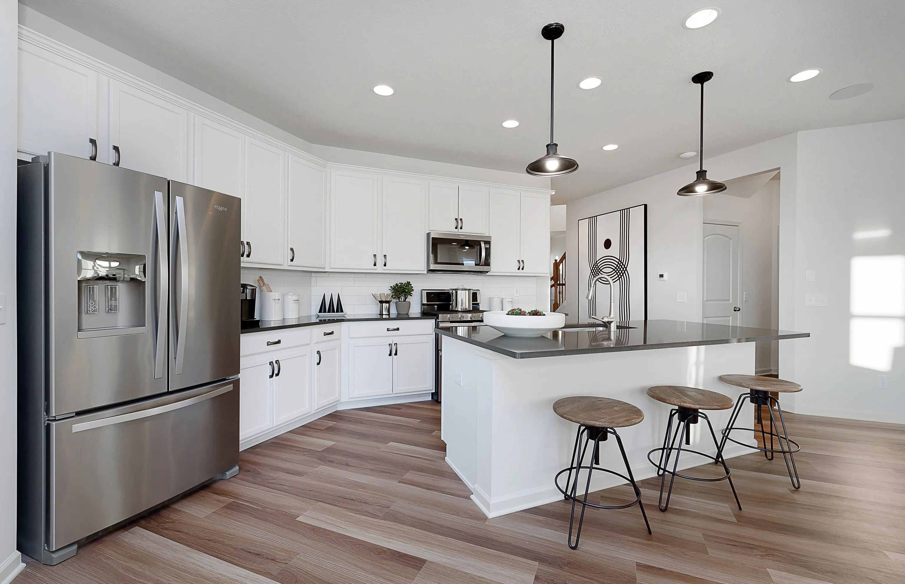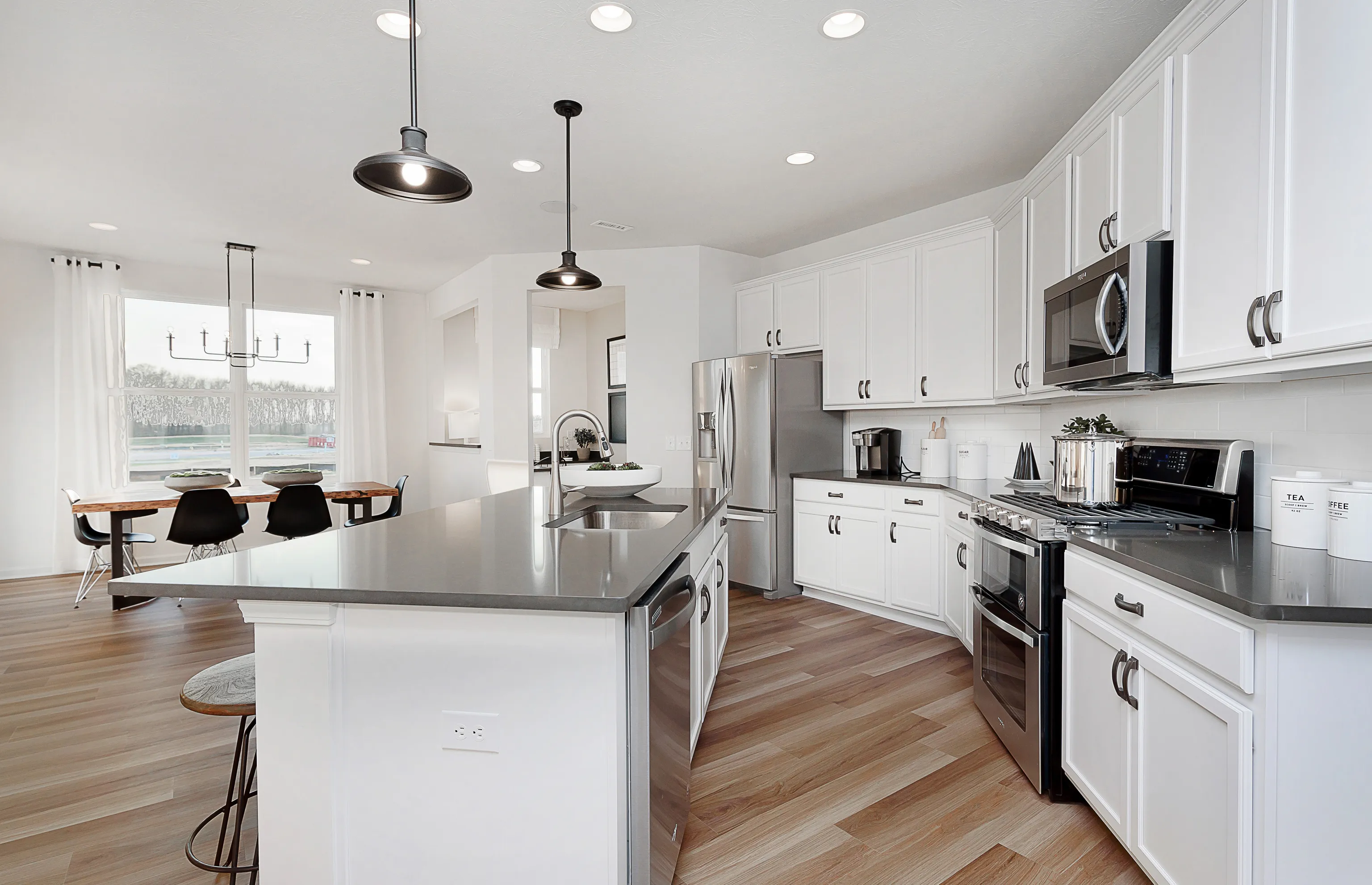 Ready in June, this STUNNING Park Place puts an emphasis on togetherness, with generous gathering areas and multiple flex spaces. The open kitchen features an over-sized island and walk-in pantry! Spacious 16’x8′ covered porch in the back of the home is INCLUDED. This is the only floor plan in the neighborhood with a gorgeous two-story foyer at the front entrance giving this home an extra special awe factor. You’ll be impressed the moment you step inside being greeted with the staircase boasting decorative wrought iron balusters. The Tray Ceiling in your Owner’s Suite is the definition of style and splendor. 2 cozy flex spaces include the Upstairs Loft and First Floor Enclosed Den. Upgrades include: Cabinets Throughout Whole House, 3×6 Glossy Tiled Backsplash in Kitchen, Above-Stove Vent Upgraded to Vent to Exterior and Luxury Vinyl Plank Flooring throughout Main Level. Fully furnished Park Place model on site for you to tour!