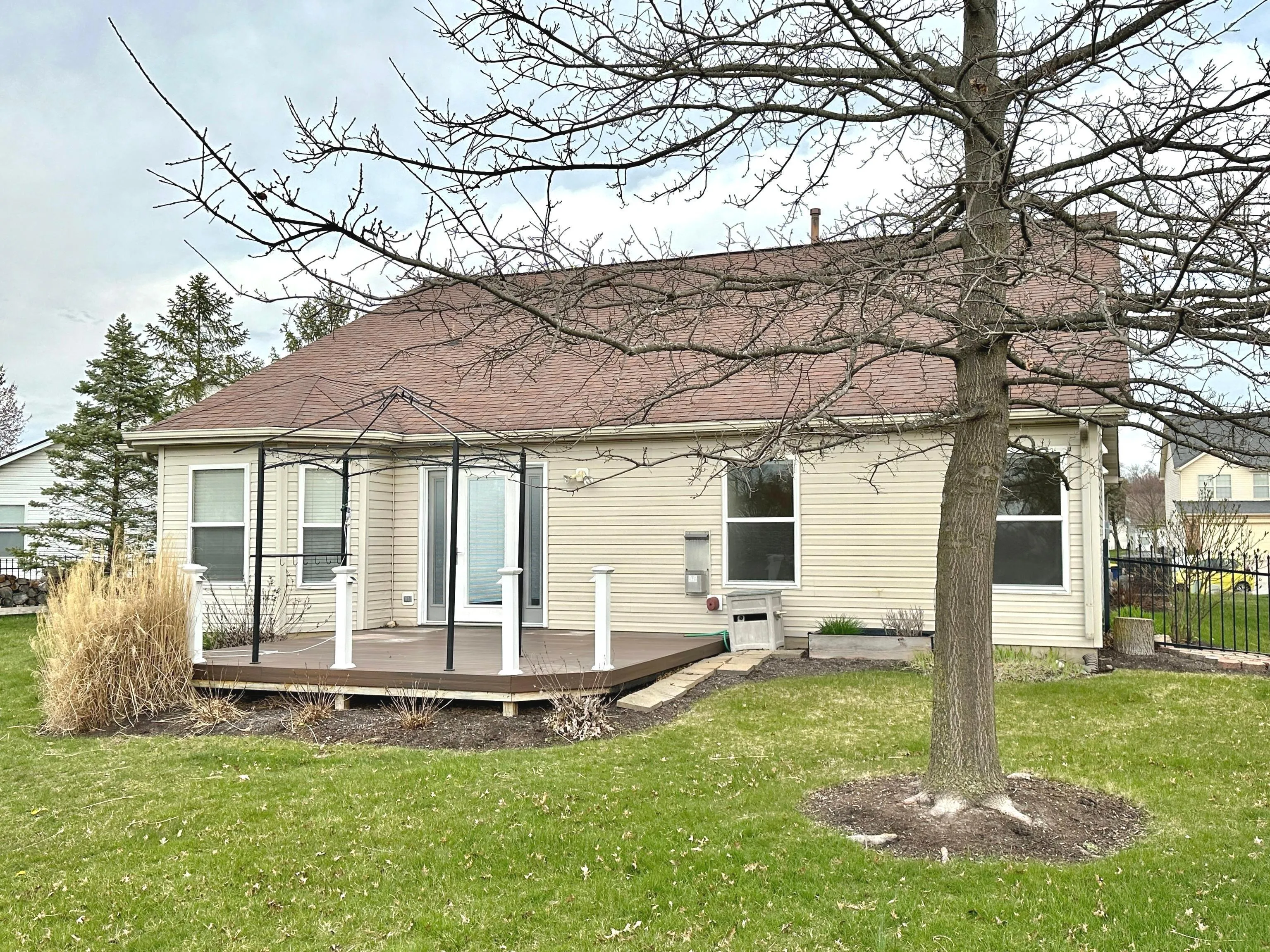 Garden style beautifully maintained and cared for ranch in the sought-after Country Meadows of Haverstick in Carmel, offers three bedrooms, two full baths, and numerous upgrades. Entryway, Foyer, Formal Dining Room and Living Room all have hardwood floors featuring an open floor plan to dining nook & kitchen. Kitchen has new flooring and all appliances are newly updated. Backyard is fully fenced with deck, gazebo, fire-pit, wood storage (stocked already) and a beautiful pond view where you can enjoy sunrises and sunsets. Community amenities include pool, clubhouse, tennis & basketball courts, and walking trails.