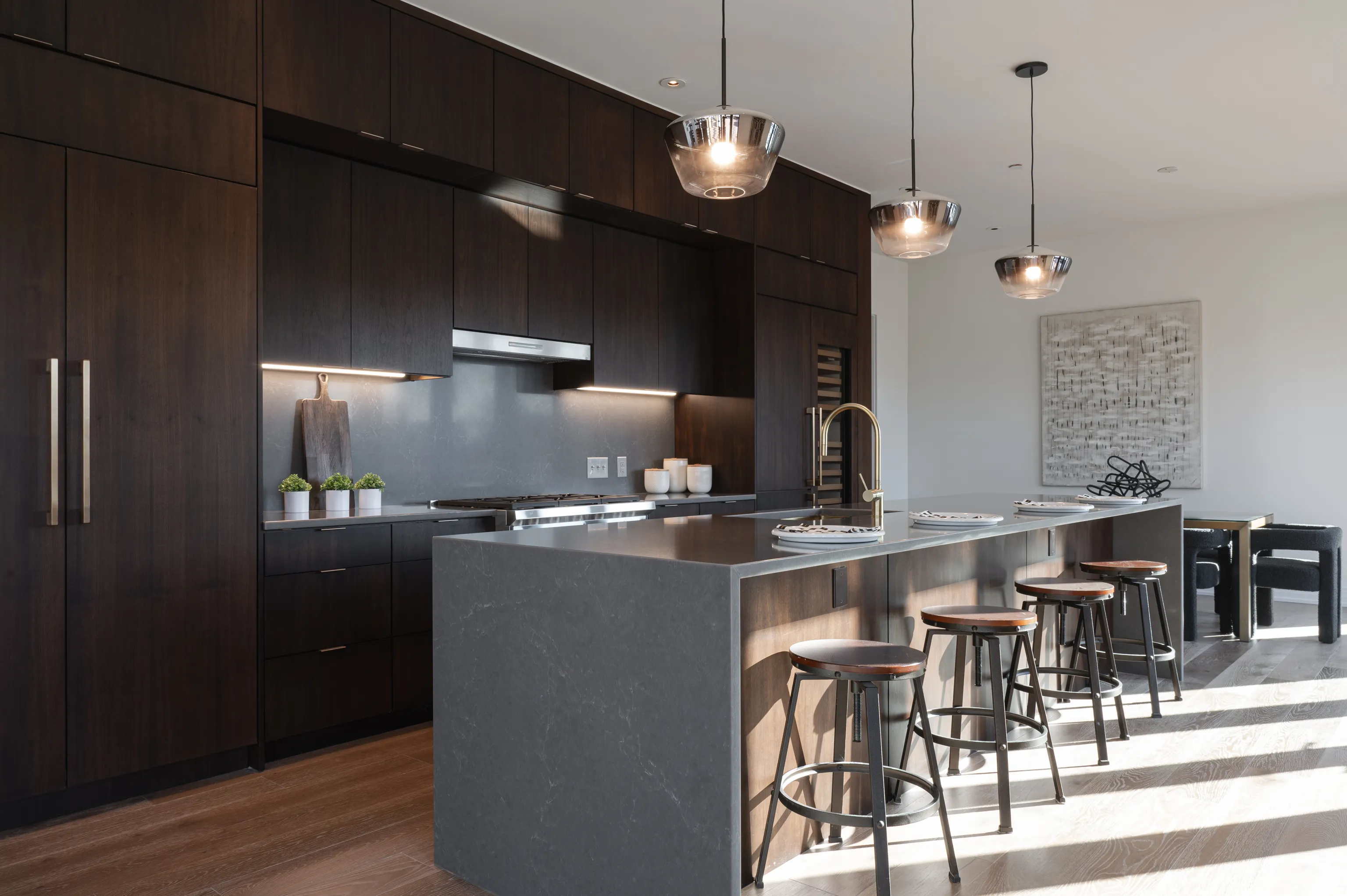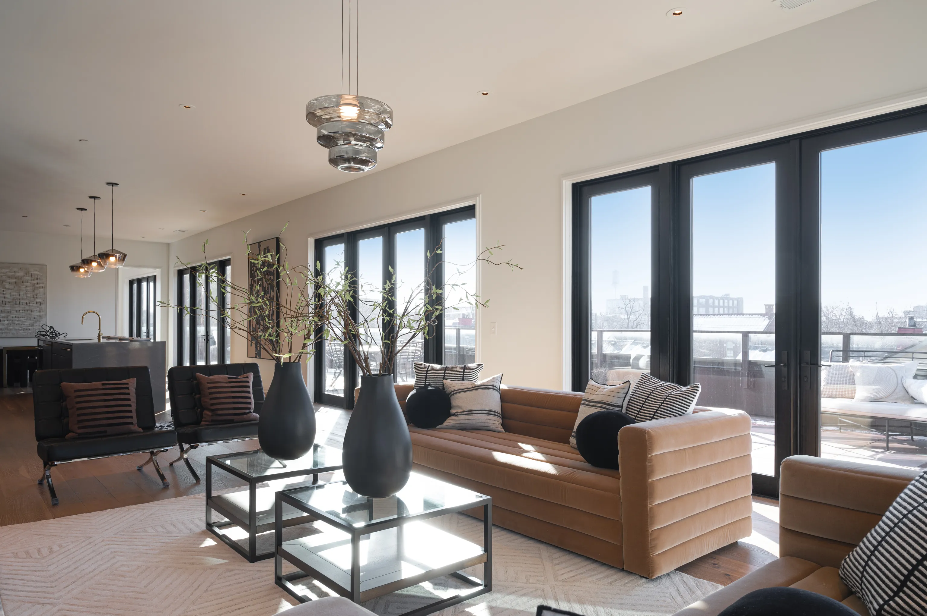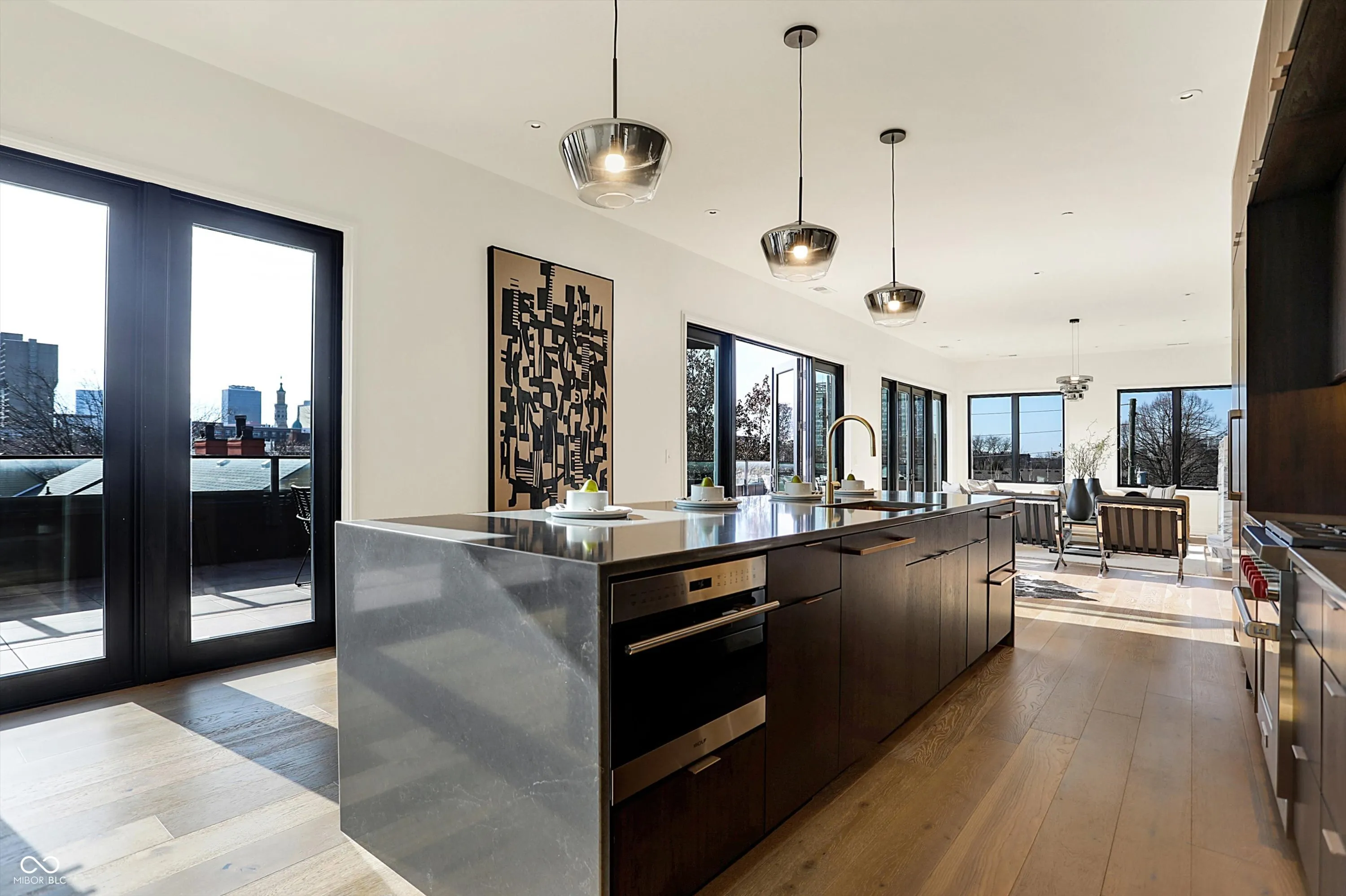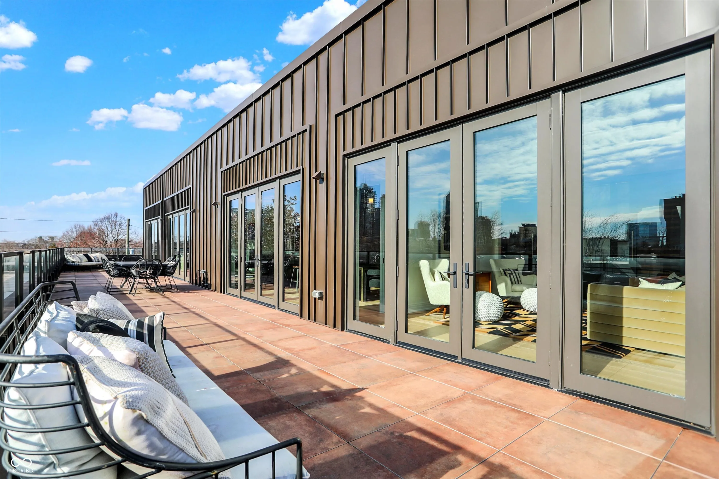 Experience the epitome of luxury living in this exquisite third-floor penthouse condo nestled within The Residences at Chatham Park. Boasting over 2,500 square feet of impeccably designed living space, this exclusive unit offers a blend of opulence and functionality. Upon entering, you are first greeted by the 10-foot ceilings and designer finishes. The focal point of the living area is the custom marble gas fireplace. The open-concept kitchen is a chef’s dream, featuring top-of-the-line appliances – Sub-Zero refrigerator, Wolf gas range, under-counter microwave and Cove dishwasher. Custom walnut cabinetry, Corian quartz countertops and wine refrigeration further elevate the culinary experience. Indulge in relaxation within the two-room owner’s suite, complete with an en-suite bathroom boasting a soaking tub, steam shower and a walk-in closet. Direct access to a private den/lounge enhances the sense of luxury, offering additional under-counter refrigeration and wine storage. Step outside to your rooftop terrace providing stellar panoramic views of the Indianapolis skyline – a perfect setting for entertaining or unwinding in style. This condo also features two additional bedrooms, ensuring ample space for guests or family members. Dual HVAC systems offer personalized comfort, while residents can enjoy access to the fitness center, library/lounge, and community room. Outside, the courtyard beckons with its outdoor kitchenette, complete with grills, sinks and a dining area perfect for al fresco gatherings. Three parking spaces, equipped with EV charging compatibility, and two storage units in the heated underground parking garage provide convenience and security. Situated in the historic Chatham Arch neighborhood just minutes from the Mass Ave Cultural Arts District and the Bottleworks District, The Residences at Chatham Park offers a lifestyle of unparalleled sophistication. Don’t miss this rare opportunity to elevate your living experience to new heights of luxury.