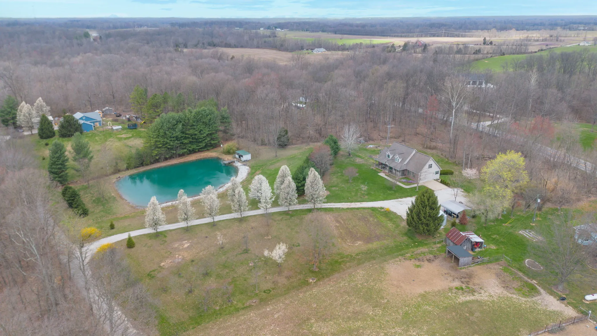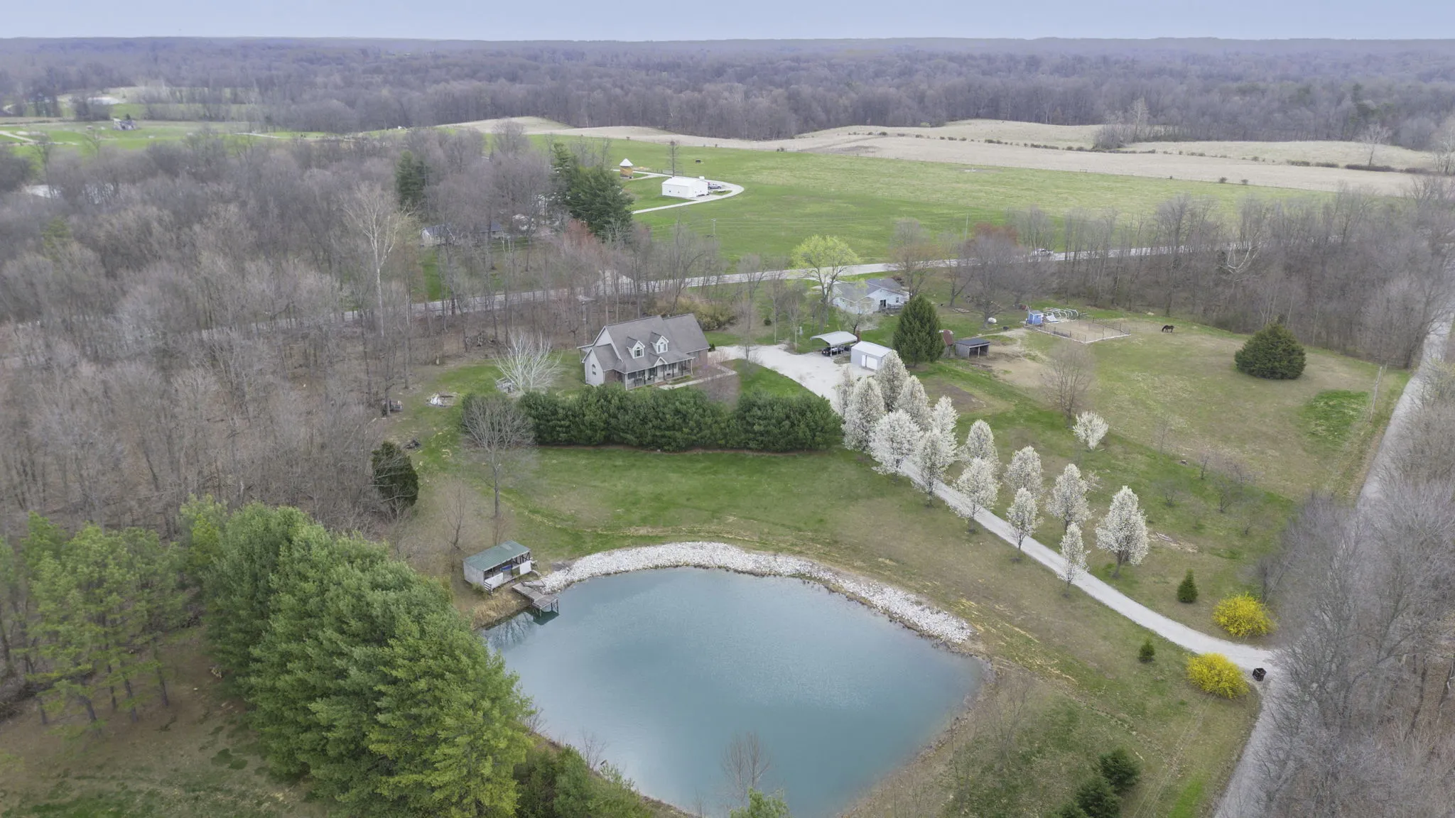 WOW! This beautiful 2600+ sq/ft home offers ample space with its 4 bed and 3 baths over a full walkout basement. A little slice of paradise sitting on over four acres with a pond, this property is gorgeous inside and out! The main floor master suite provides an oasis of relaxation and comfort with an ensuite that has a jetted tub, shower, and his and hers walk-in closets. Upstairs there are three additional bedrooms and a very generous full bath. As you head down to the basement, you will find a spacious family room, full bath, and flexible living space. Step outside and enjoy the covered porch out front or the covered deck in the back, which are both perfect for taking in those beautiful Hoosier evenings. A brand new geo-thermal unit ensures that you stay comfortable, while an attached 2-car garage and gravel parking area provide ample space for parking when hosting your housewarming party!