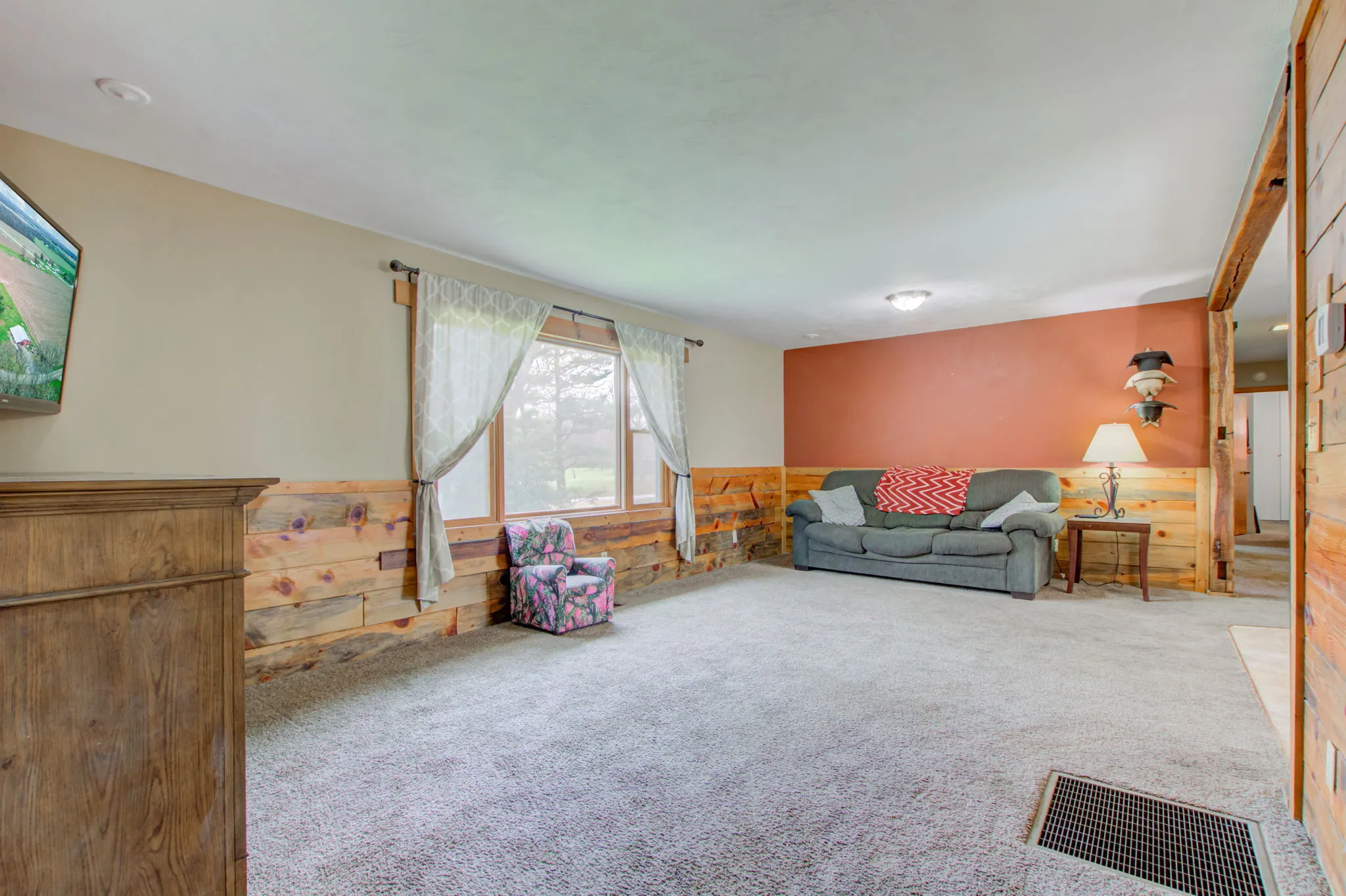 Enjoy tranquility and escape to the country! So many great features in this 3 Bedroom, Brick Ranch with 2 full baths, 3 car attached garage, full basement, geothermal system, whole house updated to Pex, and an abundance of storage all situated on 2.5 Acres with a Barn in Western Boone Schools! Fabulous use of reclaimed barn wood, creates a warm rustic, cabin feel with accent walls, barn doors and beams. Updated Sunken Family Room, currently used as an office w/laminate flooring and shiplap, crown moulding. Laundry Room w/floor to near ceiling built-ins cabinets, basket cubby, boot bench w/storage, sink, washer & dryer! Living room with picture window overlooking the front yard. Kitchen updates include Samsung SS appliances, new countertop, farm sink and a large window to watch over the back yard! Dining/Hearth Room with brick wood burning fireplace, sliding glass door that exits to the patio and tree-lined back yard! On the patio, a Built-in Blackstone Grill and hot tub! Chain-link 5 ft. fenced portion of the back yard includes an area intended for your firepit, roast some marshmallows! Some newer windows throughout. The basement is like stepping into your favorite local place to meet friends. Rustic bar (plumbed for sink), drink rail, pool table, daylight windows. Fun and relaxing. Finished 3 car garage with floor drains, insulated garage doors, workbench. So much to see and appreciate, don’t forget to check out the barn, perfect for your farm animals. Easy access to 65/52/47, easy commute to Lebanon Leap District, Indy, Frankfort, Lafayette. America’s Preferred Buyer’s Home Warranty Included.
