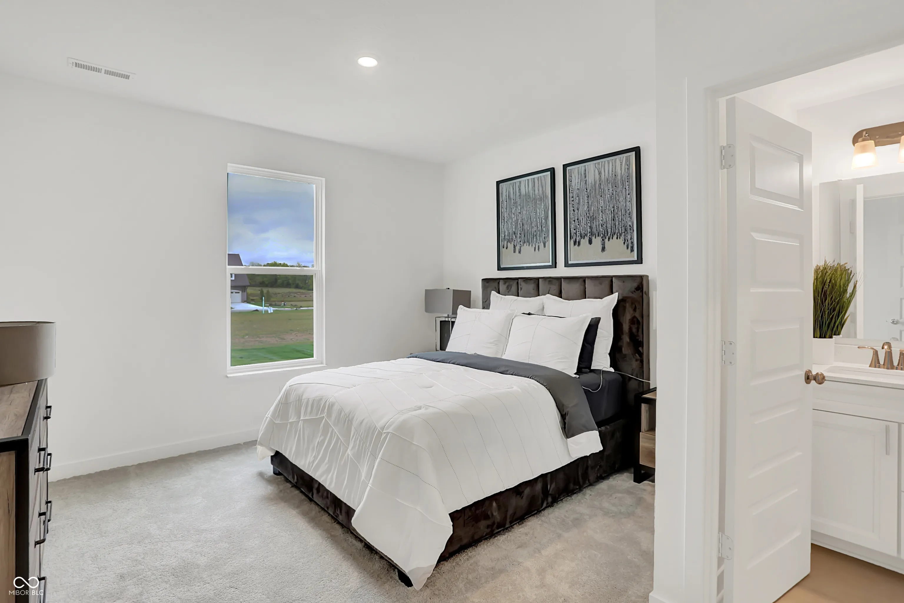 The Cornerstone Collection offers expansive single-family homes to Chatham Village, a master-planned community in Westfield, IN. Residents will be Sport and Social Members of The Club at Chatham Hills. The 65,000-square-foot club features a fitness center, indoor and outdoor swimming pools, golf courses, two onsite lakes and so much more. From the A-rated Westfield-Washington School District to lively restaurants and popular recreation sites such as the Monon Trail, Westfield has it all. This two-story home includes a spacious open floorplan between the living room, dining room and kitchen on the first floor. The first level is also host to a convenient study located off the foyer and a bedroom with a walk-in closet that could be used as a guest space or a den. Don’t miss the light filled morning room! Upstairs, the second floor is occupied by four bedrooms, including the owner’s suite, and a loft. A 3 car garage adds extra storage. *Photos/Tour of model may show features not selected in home.
