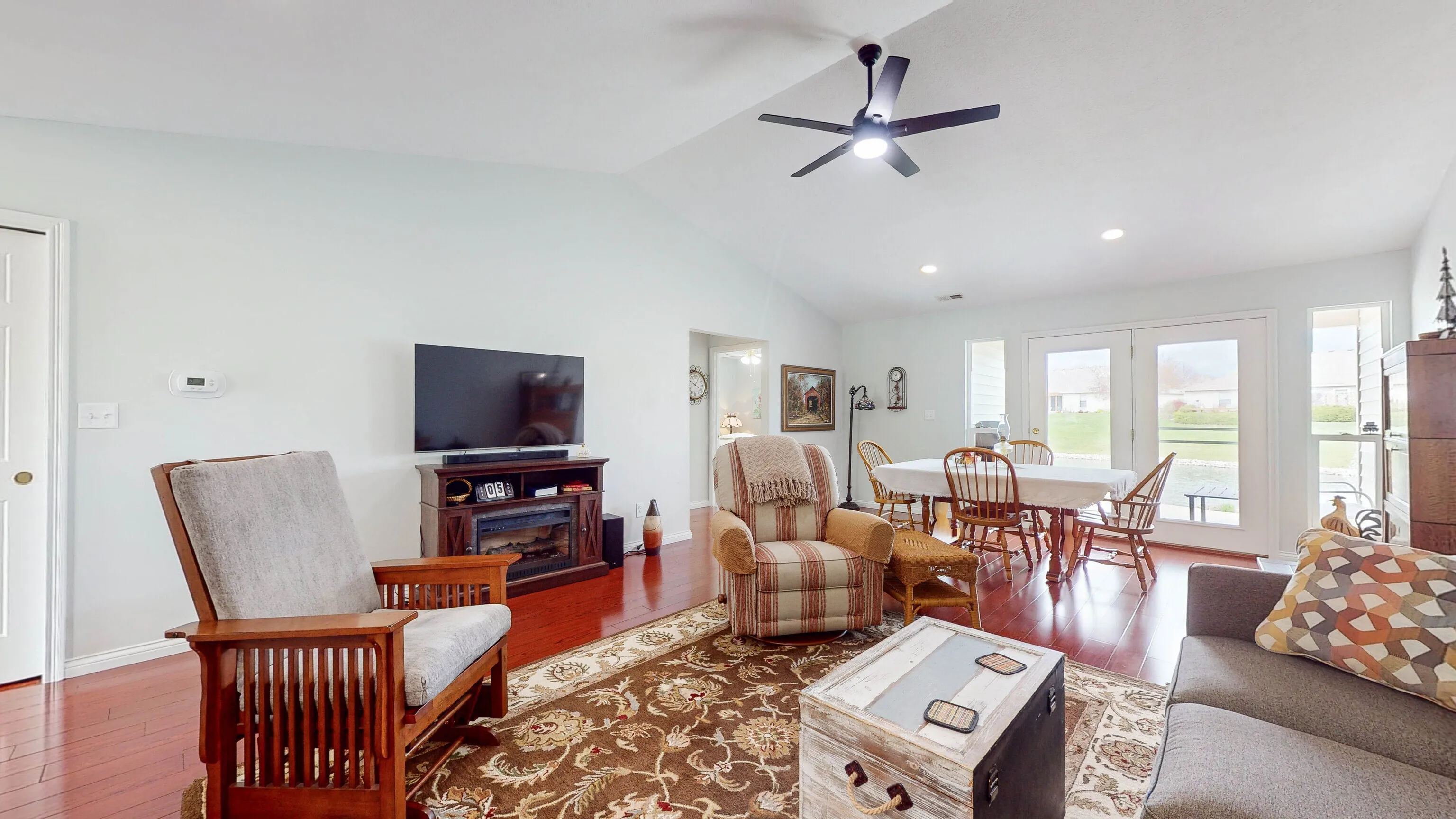 Don’t miss out on this beautiful 2 bedroom paired patio home in Franklin’s 55-and-older community of Whispering Ponds! Relax and let the HOA maintain your lawncare and snow removal. Explore this home via interactive 3D home tour, complete with floor plans, video & more. The open concept great room/dining room features engineered hardwood flooring and a high cathedral ceiling. Kitchen updated with painted cabinetry & adjacent pantry storage. Both bedrooms recently updated with new windows and vinyl plank flooring. Walk-in closet storage in the primary bedroom. Bathroom updated with new vanity. Sit outside on the covered front porch or enjoy a serene pond view from the covered back patio. Additional storage in the finished 1-car garage. Community clubhouse includes a meeting room and a suite that can be rented for out-of-town guests. Great location with convenient access to nearby dining, shopping, & more in Franklin!