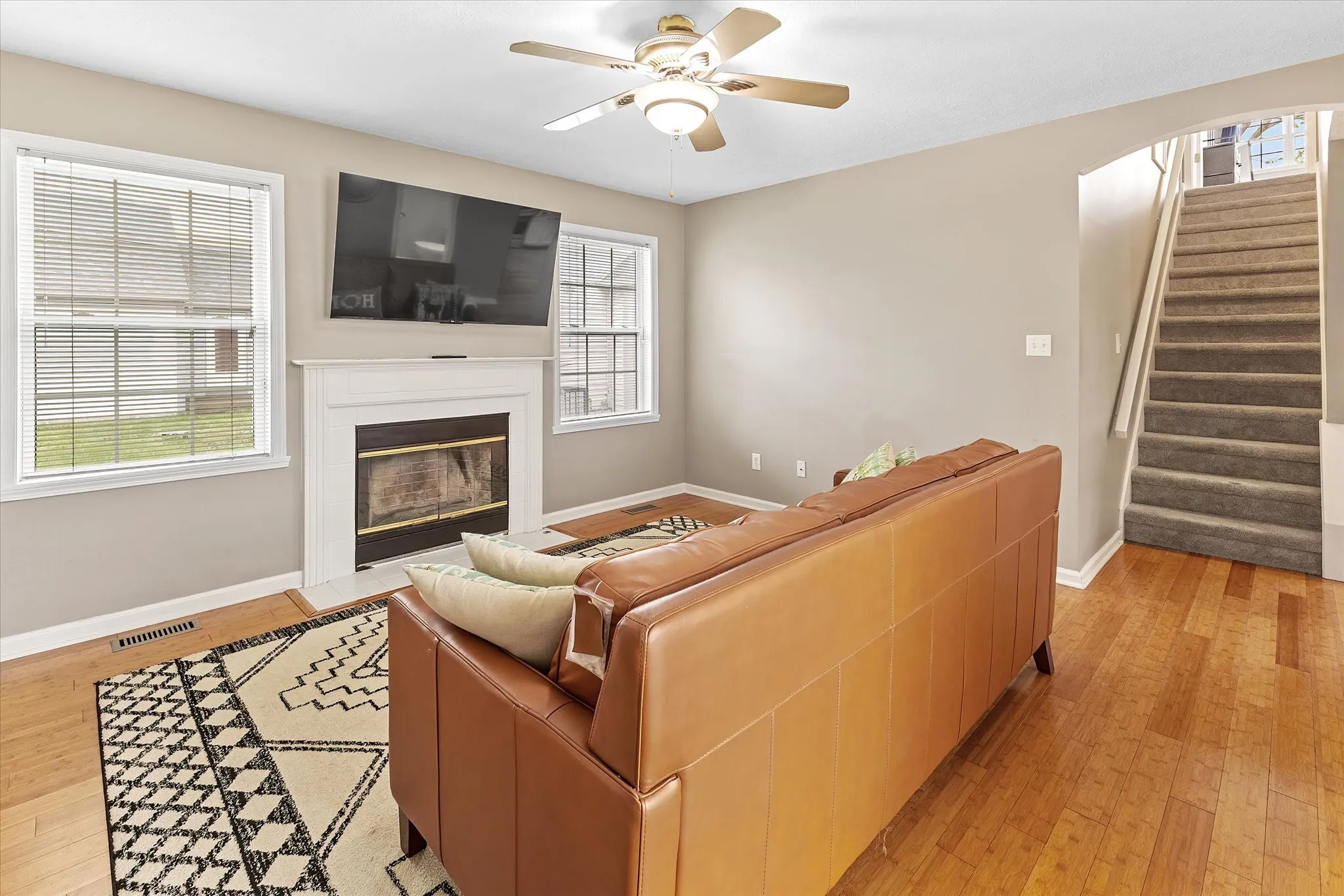 This 3BD 2.5 BA split plan home has been nicely updated. The Living Room is open to dining & updated KIT. All have beautiful hardwood flooring to unify the space. The Kitchen has granite countertops, new hardware, SS Sink, Elec range, microhood & Dishwasher. Living room in the front of house and there’s a family room in the back of the house that walks out to new large private patio ready for spring & summer outdoor fun, on your extended Fully Fenced lot/ Side yard. The master ensuite is placed upstairs for extra privacy. It includes new carpeting, a jetted tub and separate shower along with a large walk in closet & room for a sitting or exercise area too. The Canal, IUPUI, shops and restaurants all within walking distance. Interstate is close too. Enjoy a rich lifestyle in the Heart of Circle City.