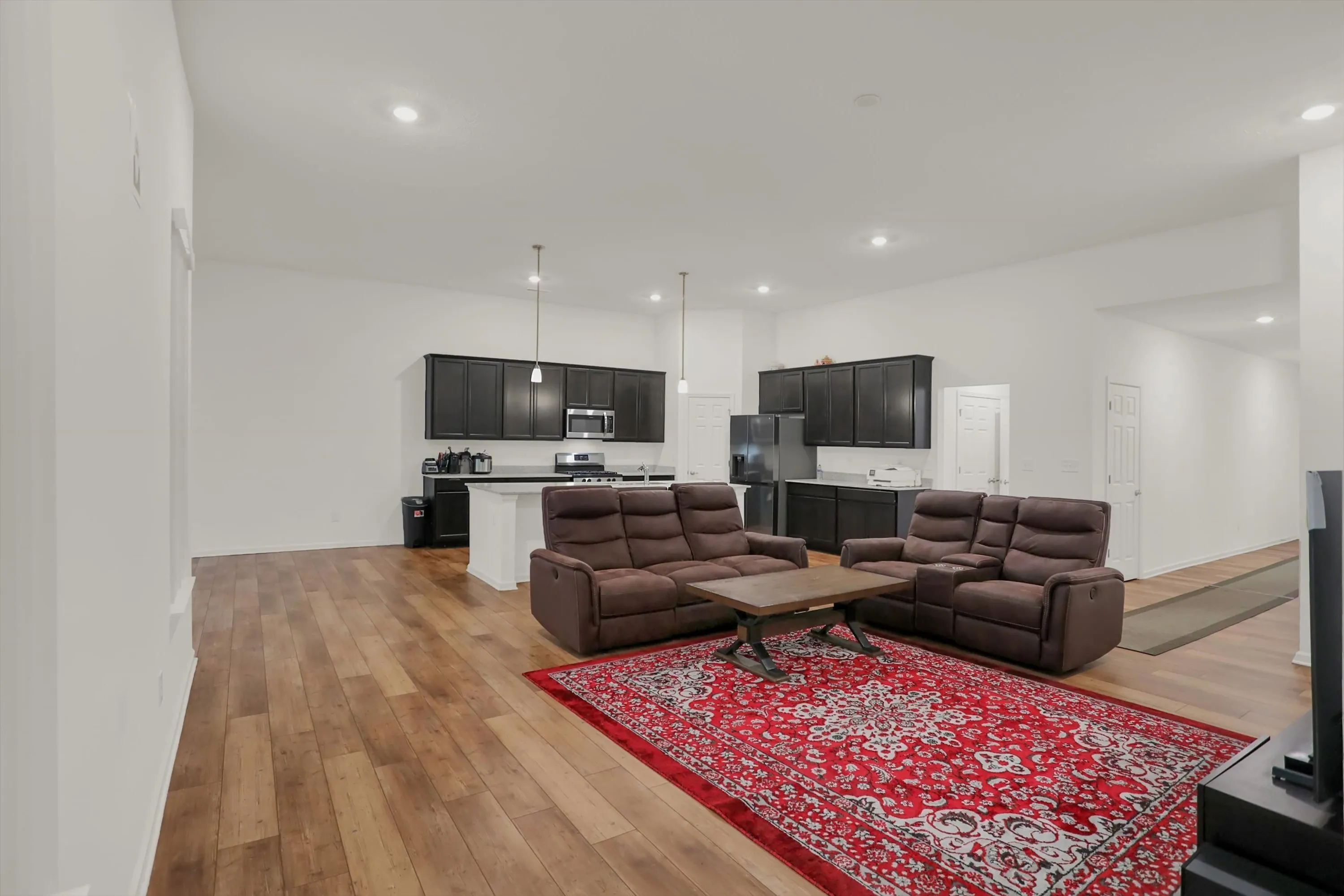 Beautiful 4 Bedroom, 2.5 bath, single story, 2,370 sq ft move in ready home on 9,091 sq.ft. lot size with upgraded kitchen that includes quartz countertops, with huge center island, dark cabinets, all stainless appliances, gas stove, microwave, including refrigerator. Spacious living room and dining area. Laundry with dryer and washer included. Primary bedroom has standing shower, double bowl vanities, quartz counter top and spacious walk in closet. Enjoy sitting in the back covered patio.The property has irrigation. HOA covers lawn care and snow removal.