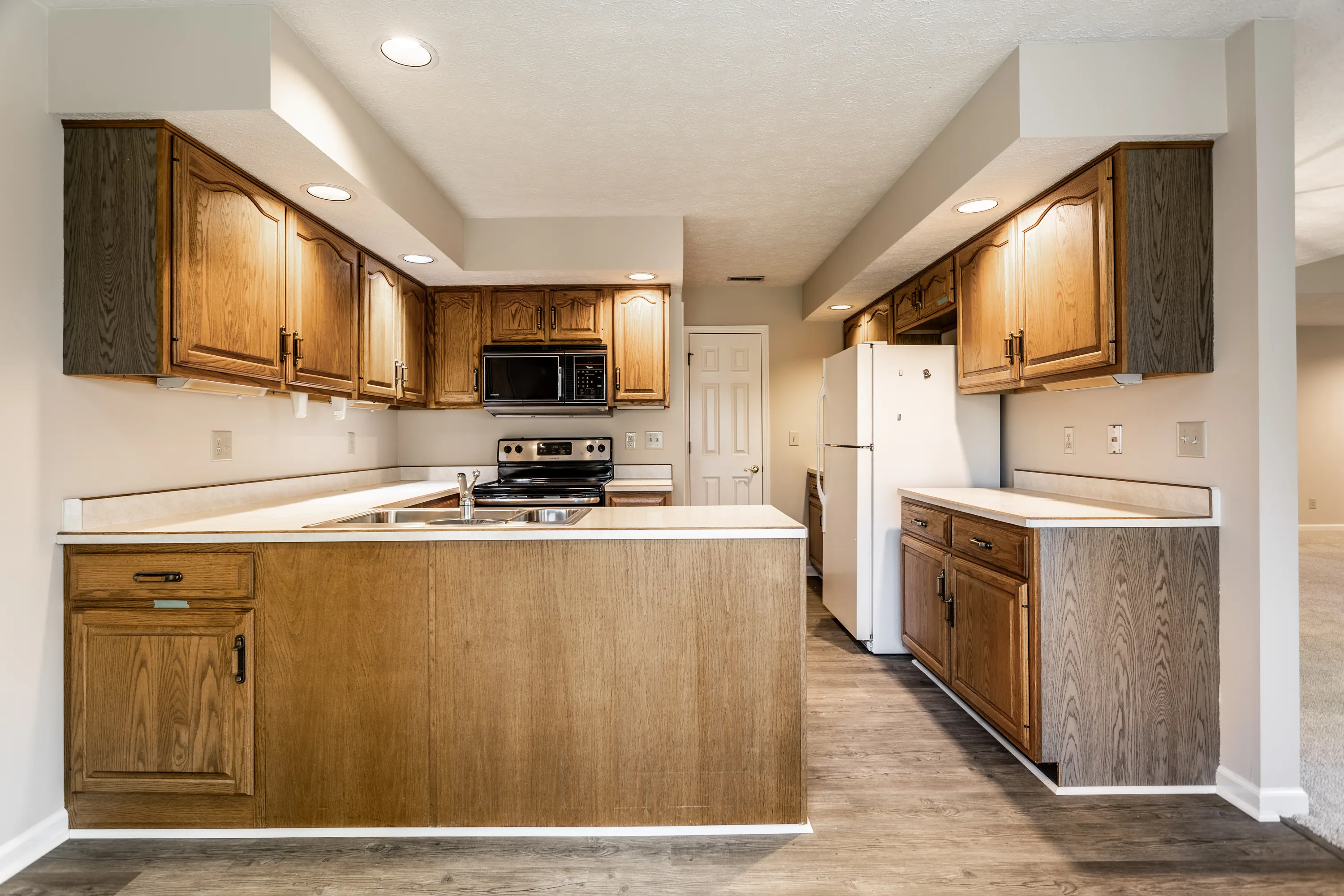 Welcome to maintenance-free living in this charming ranch-style condo on the North-West side of Indy! Located in the desirable Homestead Lakes community, this cozy home offers 2 bedrooms, 2 full baths, and a convenient at-home office. The open floor plan fills the space with natural light, creating a warm and inviting atmosphere. The kitchen features a breakfast nook, while the separate dining room and great room combo provide ample space for gatherings. With a 2-car garage, laundry area, and a primary bedroom walk-in closet, storage is never an issue. Freshly painted and featuring new flooring, this condo also benefits from a brand-new HVAC system. Situated in a cul-de-sac within a well-maintained complex, the mature landscaped surroundings add to the peaceful ambiance. Enjoy easy access to shopping, dining, medical facilities, and entertainment options. Please note that this complex is exclusively for owner occupants. Don’t miss this opportunity – schedule your showing today!