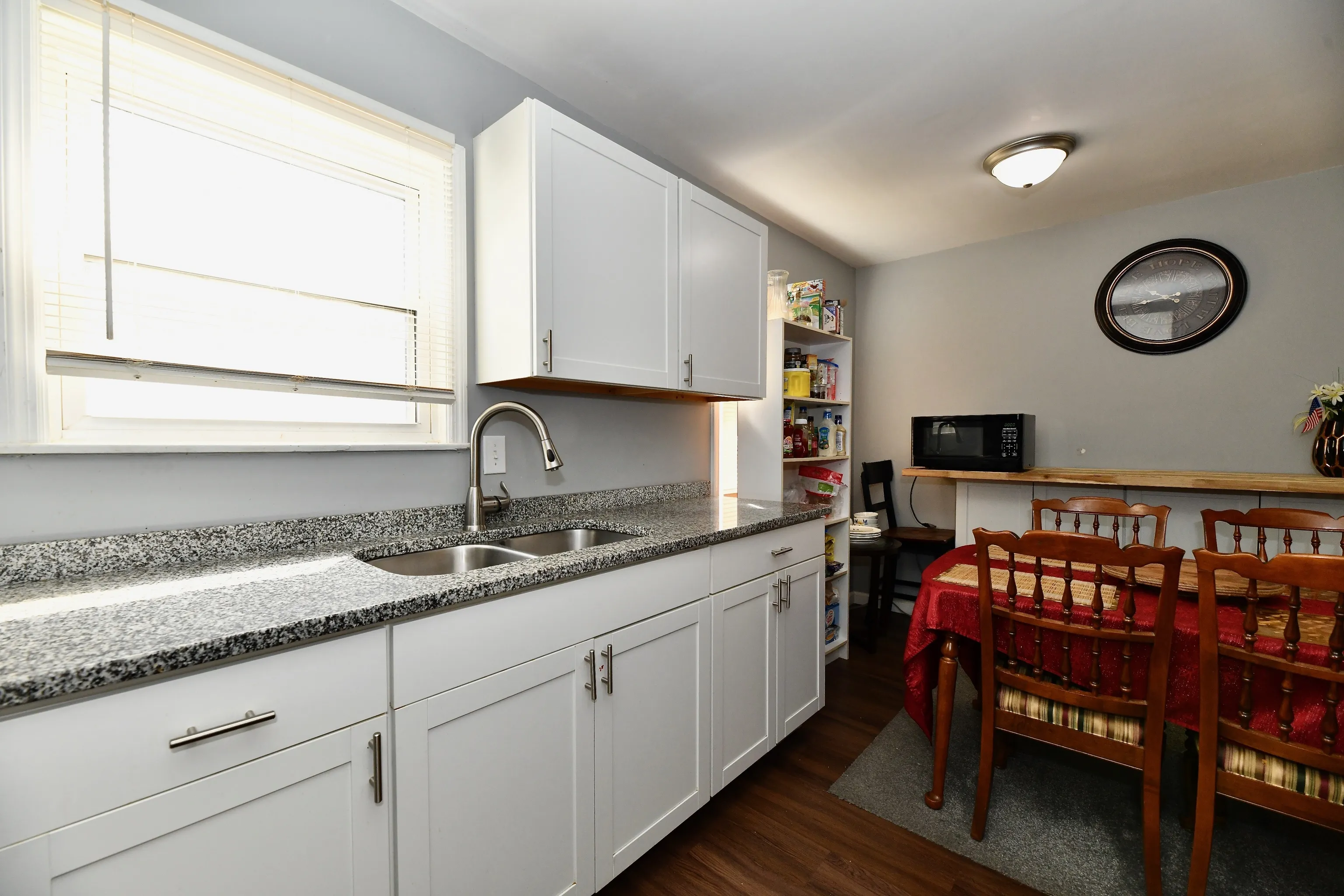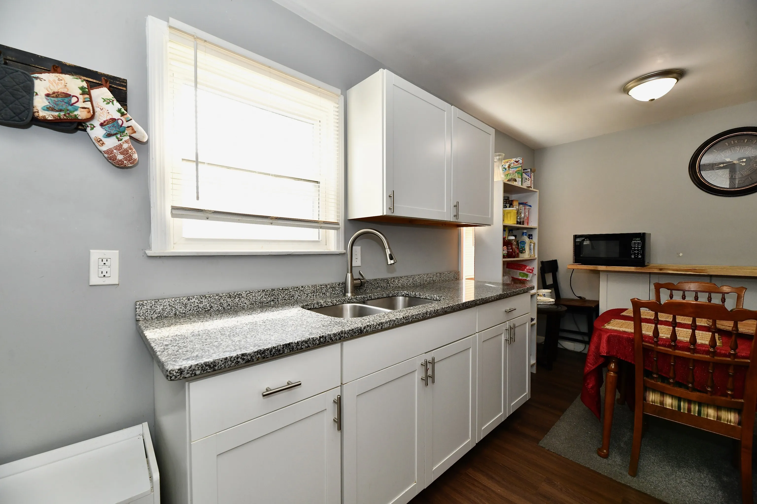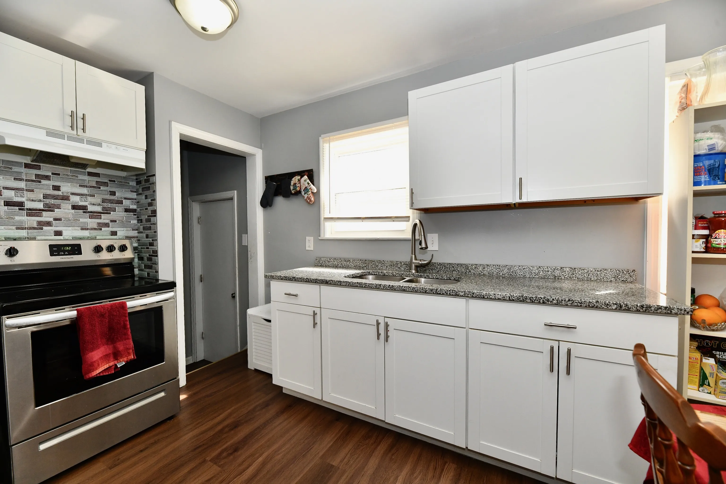 This home has been remodeled with many updates. New kitchen, flooring, lights, paint, updated bathroom. The basement is partially finished and will add more to your desired living space. The garage is in back. A large sunroom overlooking manicured lawn is a added area for relaxation. The yard is fenced. Many updates to enjoy in this cozy home.