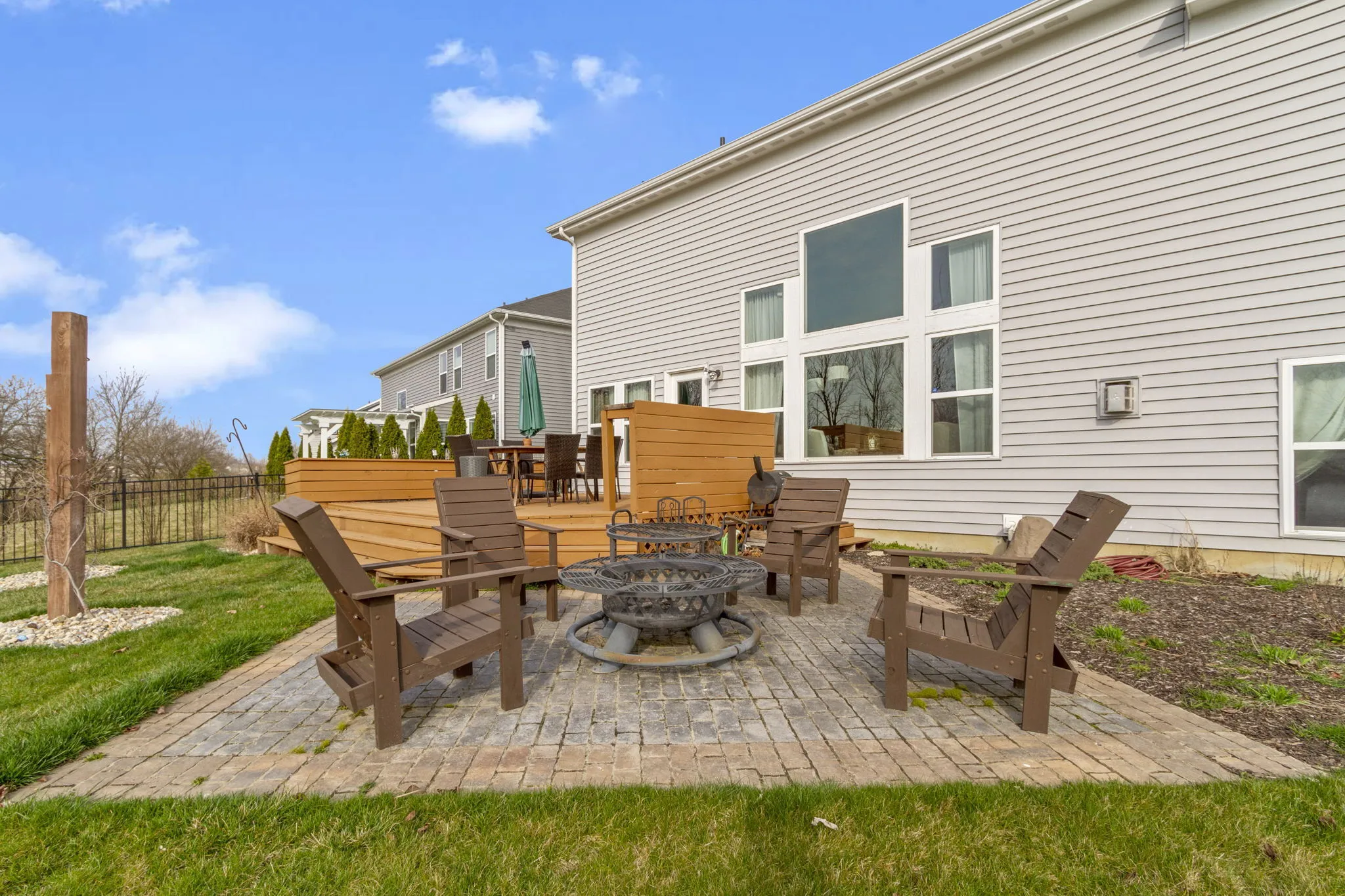 Welcome to this well-appointed home in Glen Ridge Estates, where comfort and functionality meet. This residence features 4 bedrooms, 3.5 bathrooms, configured in the spacious Blair floor plan by Fisher Homes that provides spacious and practical living. From the moment you step inside, the commitment to quality craftsmanship and finish is evident. The main level living area, centered around a gas fireplace and large windows, offers a warm, inviting atmosphere with abundant natural light, perfect for both relaxed evenings and entertaining. Open concept kitchen offers granite counters, ample storage, pantry, dry bar and a large island. Down a few steps, the expansive bonus room is ideal as an entertainment hub or home theater, offering the ability for hosting movie nights and gatherings. Upstairs, the layout is efficient with all four bedrooms, including a primary suite with a tray ceiling, dual walk-in closets, and an en suite featuring a double vanity, tiled stall shower & soaking tub. Unfinished basement presents an opportunity to create a home gym, storage room or any additional living spaces to meet your needs. The property boasts a simple yet well-maintained lot with an in-ground irrigation system. A spacious deck and paver patio invite outdoor living and dining, while the absence of neighbors behind ensures a more secluded and personal space. The attached garage featuring an additional bay with external access-provides abundant storage. This home promises a blend of everyday comfort with the potential for personalization, making it ideal for your next chapter.