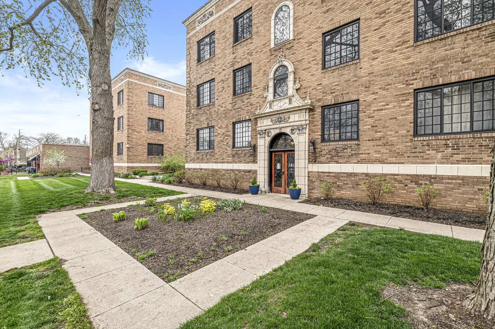 Welcome to College Court Condominiums! This rare two-level gem features a captivating spiral staircase and boasts 2 bedrooms and 2 bathrooms, all overlooking the beautiful courtyard in the front of the building. The main floor showcases a kitchen with stainless steel appliances, dining area, living room, and a primary bedroom with a full hallway bathroom, with gleaming hardwood floors throughout. The lower level presents a spacious bedroom or recreation room with an additional exit, another full hallway bathroom, and a laundry/utility room with newer washer and dryer. With a smart lock entrance and supplied extra storage, this unit offers modern convenience and security. Enjoy the convenience of assigned parking, and the HOA covering water, sewer, and trash removal. Located in the sought-after Meridian Kessler neighborhood, this unit provides easy access to grocery stores, restaurants, and shopping. Don’t miss out on this fantastic opportunity!
