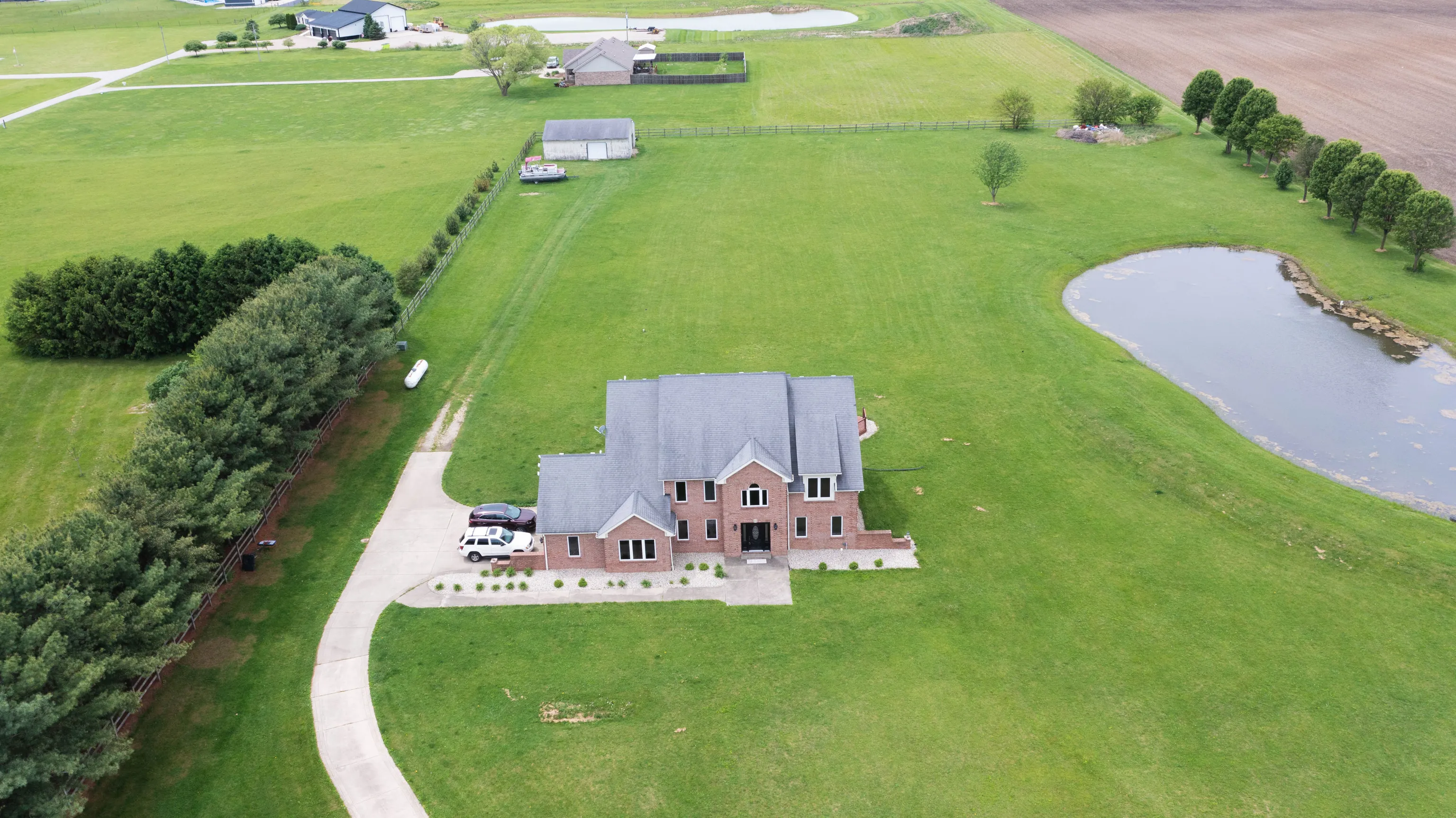 STEP OUT OF THE CITY LIFE INTO YOUR OWN COUNTRY RETREAT!!!!..ENJOY 5 ACRES AND A FULLY STOCKED POND!!!! THIS PROPERTY HAS LIMITLESS POSSIBILITIES.!!!! Enjoy this full brick home, that is only 5 miles from Indy and 4 miles to the casino. Kitchen appliances will remain with the home and there are TWO large primary ensuites. Five bedrooms with the possibility of a 6th, and four bathrooms. Home has an attached 2.5 car garage with a separate garage that contains your own workshop. NEW HVAC!!