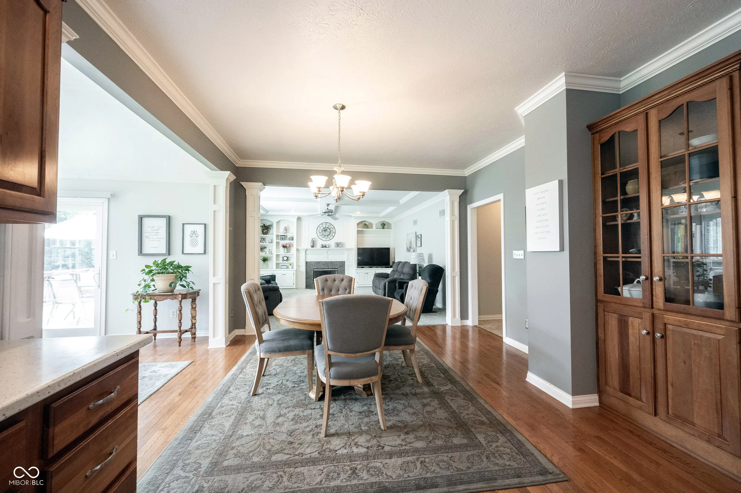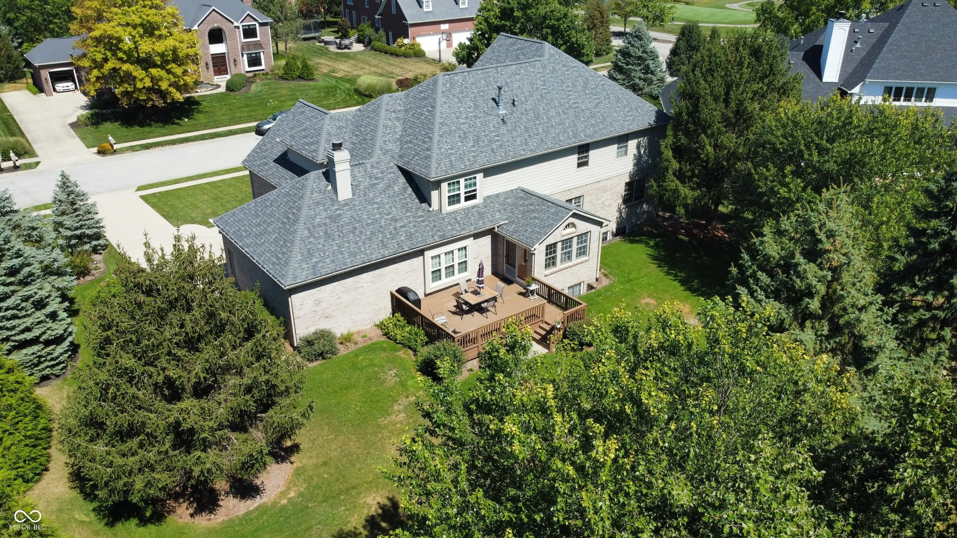 Welcome to this stunning 5 bedroom, 5 full bathroom custom built home that combines exquisite style and craftsmanship. The moment you step in, you’re greeted by a grand two-story entry and gleaming hardwood floors. Additional custom features like built-ins, trim and moulding work, and ceiling details elevate the home’s aesthetic appeal. The light and bright main level offers a home office with built-in shelving, full bathroom, living room open to the dining room, as well as a cozy family room complete with a warm and inviting fireplace, perfect for those cool fall nights. The spacious kitchen, with center island, has ample countertop and storage space and is open to the breakfast room. Relax and enjoy the views from the sun room with easy access to the back deck and yard. The upper level primary suite has custom, vaulted ceilings, a large walk-in closet, along with a spa-like private bathroom offering a large soaking tub, separate shower, and dual vanities. Three additional bedrooms are on the upper level with one bedroom featuring its own private bathroom and second/third bedroom connecting with Jack & Jill bathroom. The fully finished basement provides an additional bedroom and full bathroom along with lots of space for entertaining for the big game or get-togethers. Enjoy evenings outside on the deck in your spacious backyard which features over a half acre with privacy and lots of space to play and entertain! Desirable neighborhood bordering Plum Creek Golf and Country Club and perfectly located to many additional restaurants and shopping. This home is your perfect sanctuary – Welcome Home!
