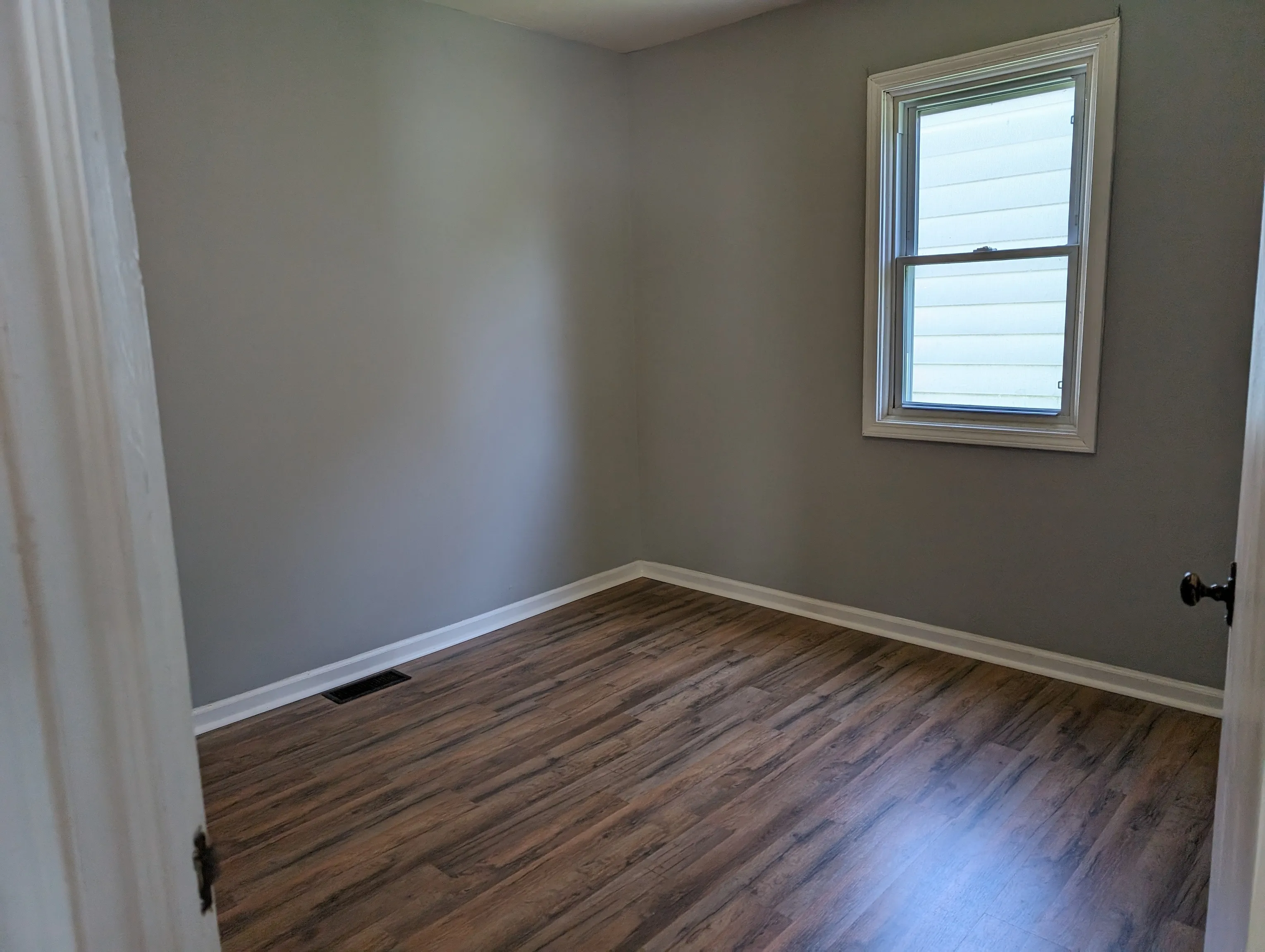Meadowbrook home…MOVE IN READY with recent updates!! This would make a great 2BR/1BATH home or rental property. Renovations made in March/April 2024: Tree trimmed by shed, partial roof replacement, painted- including all of the closets, and all new flooring except the kitchen tile. Work done in August 2023: Shed improved and painted & deck steps replaced or re-secured. Kitchen: Nice cabinets & Tile floor. Refrigerator, Electric Range/Oven, Fan Hood, and Window Air Conditioner stay with home. A nice back yard with the storage shed and partial chain link fencing. Gravel drive next to the home for off street parking.