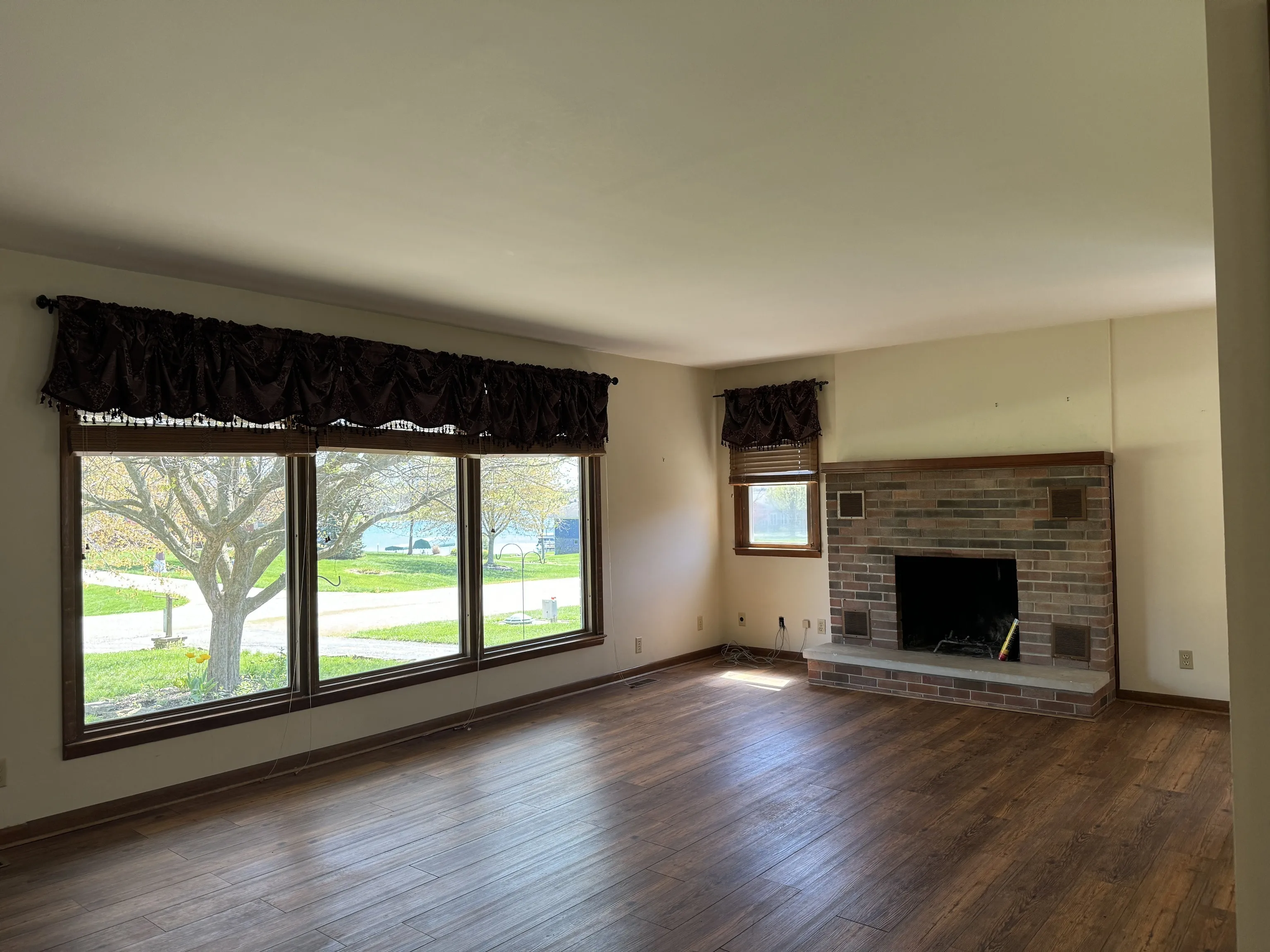 Two bedroom 1.5 bath brick ranch with 24×30 detached garage. In a nice quiet area, located at the corner of Seneca and Oneida, this home offers direct water access in the back and a beautiful lake view from the front. Lots 189 and 188 totaling .86 acres are both considered waterfront at Lake Santee with access to a “shared” waterfront lot providing direct access to the water and room to place a dock. Roads to this home are now paved! Entry opens to the family room with a nice sized coat closet, view of beautiful built-in and wood burning fireplace. Dining area is located off of the kitchen as well as full laundry room and exit to the back patio. Primary bedroom offers a half bath. Basement in the home provides 1140 sf of extra room and storage.