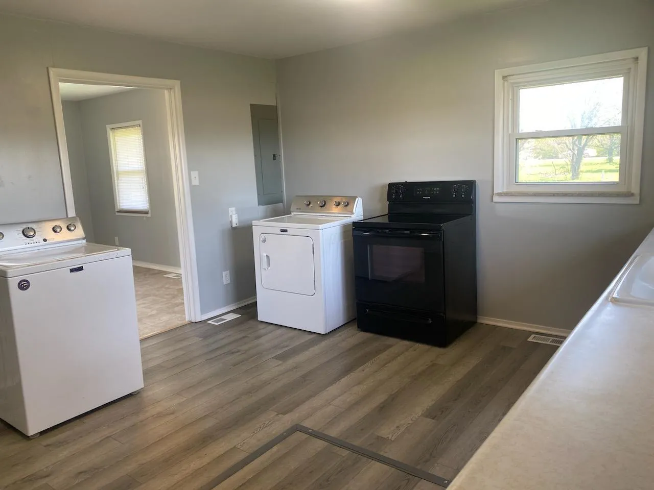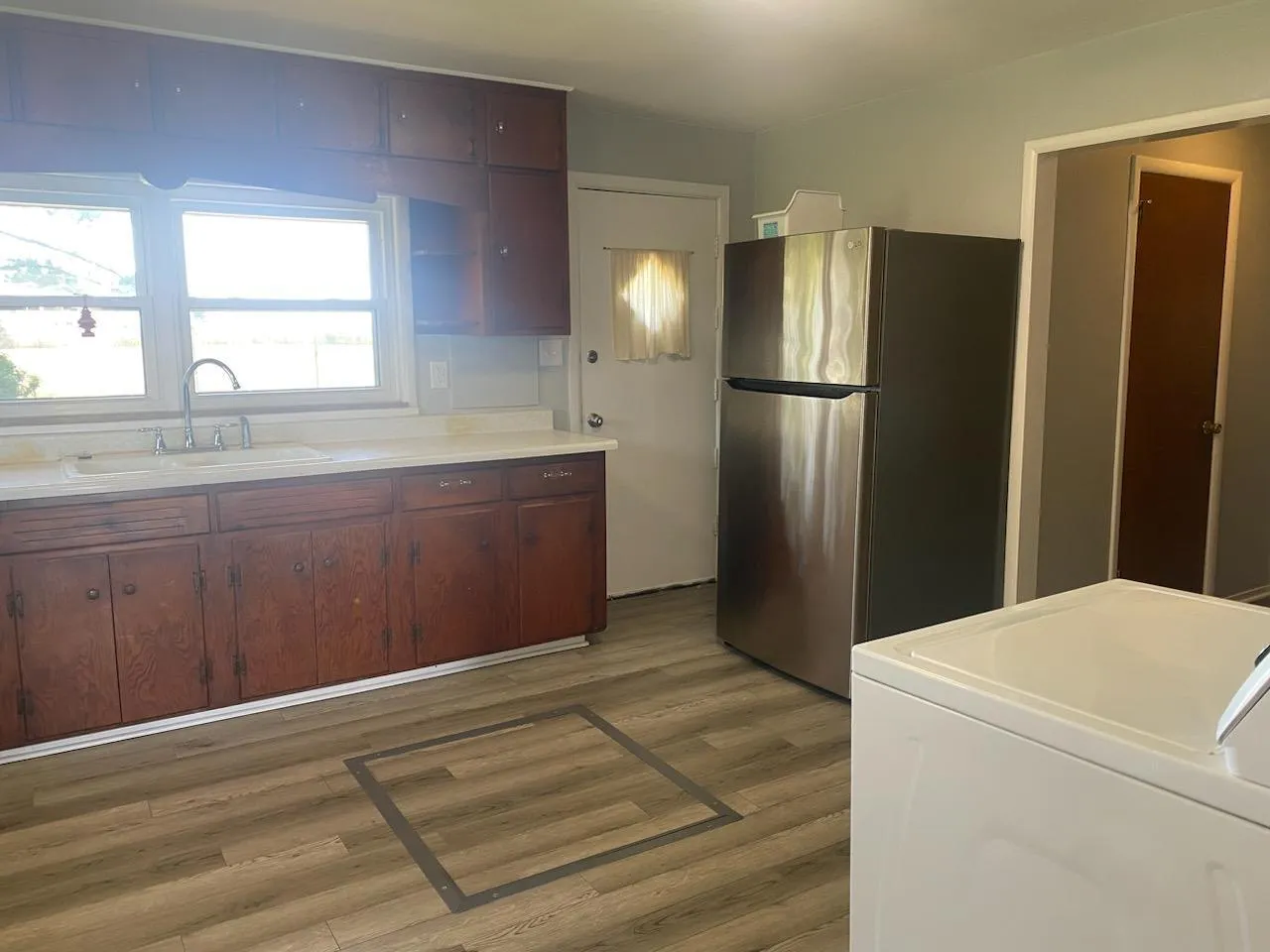 Home was just completely painted and has new LVP flooring almost throughout. All appliances including washer and dryer are included. Immediate possession. Home and two large storage sheds included but the pole barn IS NOT INCLUDED. Owner will have east side of yard mowed if desired by tenant. Tenant shall be responsible for the yard near home. One small dog may be considered. No cats.