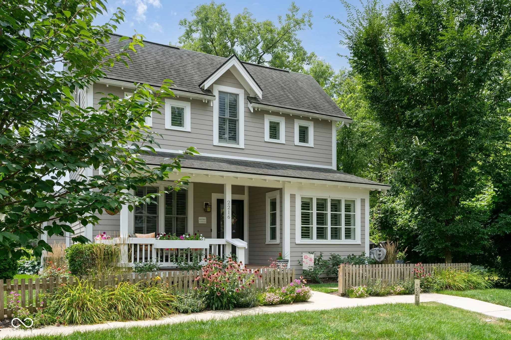 Spectacular Ross Chapin designed Plumrose cottage is perfect for entertaining friends and family. Your guests are greeted by a spacious, covered front porch and beautifully, hand-crafted interior details including hardwood floors, built-in shelving, vaulted ceilings, professionally designed walk-in closets and Primary Suite on main level. This custom-designed floor plan has all the extras you want such as plantation shutters throughout the living area, frosted glass in powder room, Roman shade on back door and stairwell landing with ceiling fan and built-in bookcases with electrical outlets, built-in boot bench at back entrance and pocket doors! Great Room is enhanced by a beautiful tile-surround fireplace and built-in bookcases. A cook’s kitchen features gas stove, French door refrigerator, Whynter 18 bottle wine fridge, 2 pantries and large center island for meal prep or quick snacks on the go. Entertain in style both inside and out. Inside is the lovely Dining Room with a view of the beautifully landscaped courtyard or enjoy the tree line and natural habitat while seated on the exterior deck positioned at the side of the home. Deck includes a special place for grills so they don’t impede the view. Lower level boasts 9′ ceilings, spacious area for game/movie night plus space for den or children’s study area. Several storage areas in this lovely home include the oversized, finished garage complete with heat/ac split, epoxy floor and additional storage above. Plus two large storage areas in the basement. Interior and exterior painted 2021. Feel safe and secure with sump pumps in the basement and a whole house generator. A water softener and tankless water heater means instantaneous soft, hot water. Minimal maintenance with snow removal provided by the HOA and gutter guards keep gutters clean. Secluded neighborhood is just minutes to interstate, shopping and restaurants in the Fashion Mall at Keystone and Nora Plaza. Come see this lovely, well-designed home.