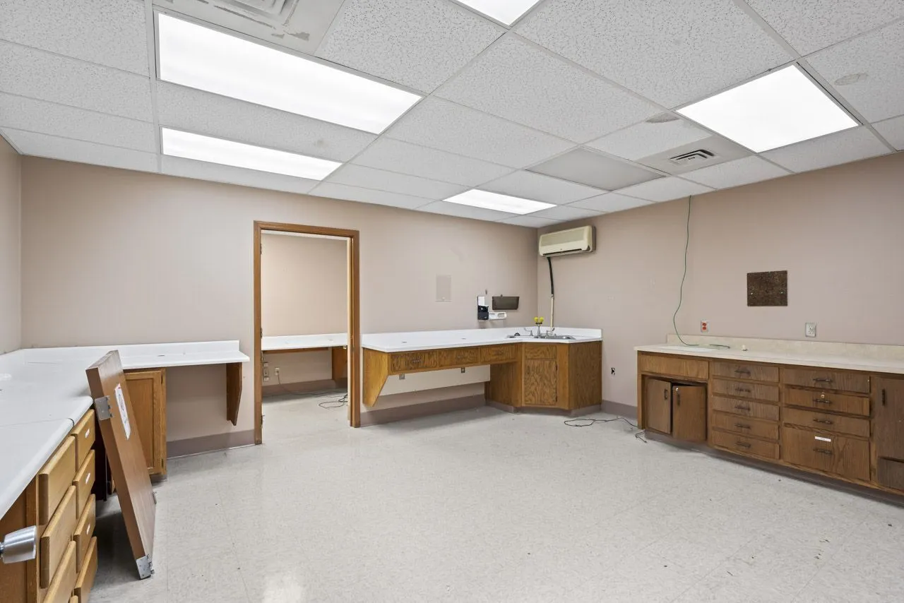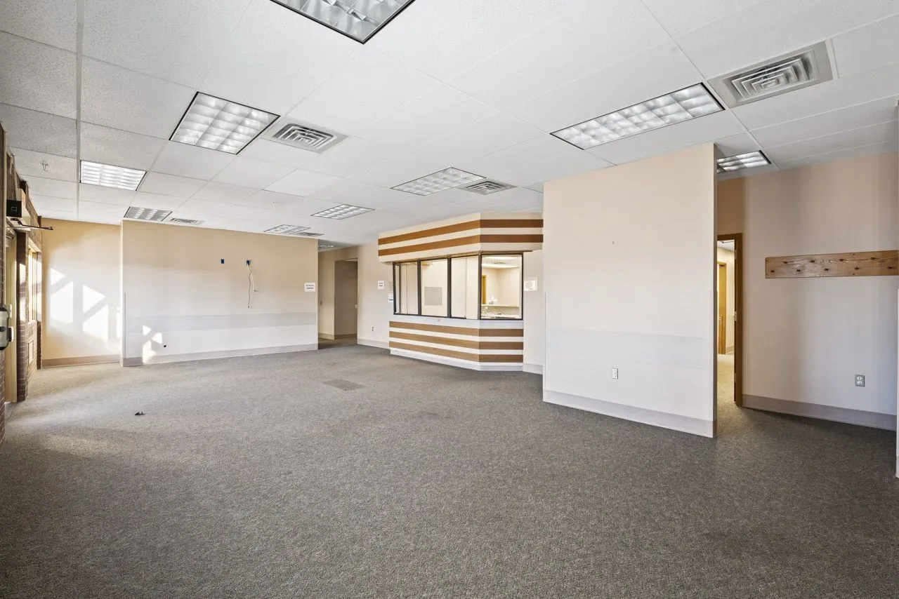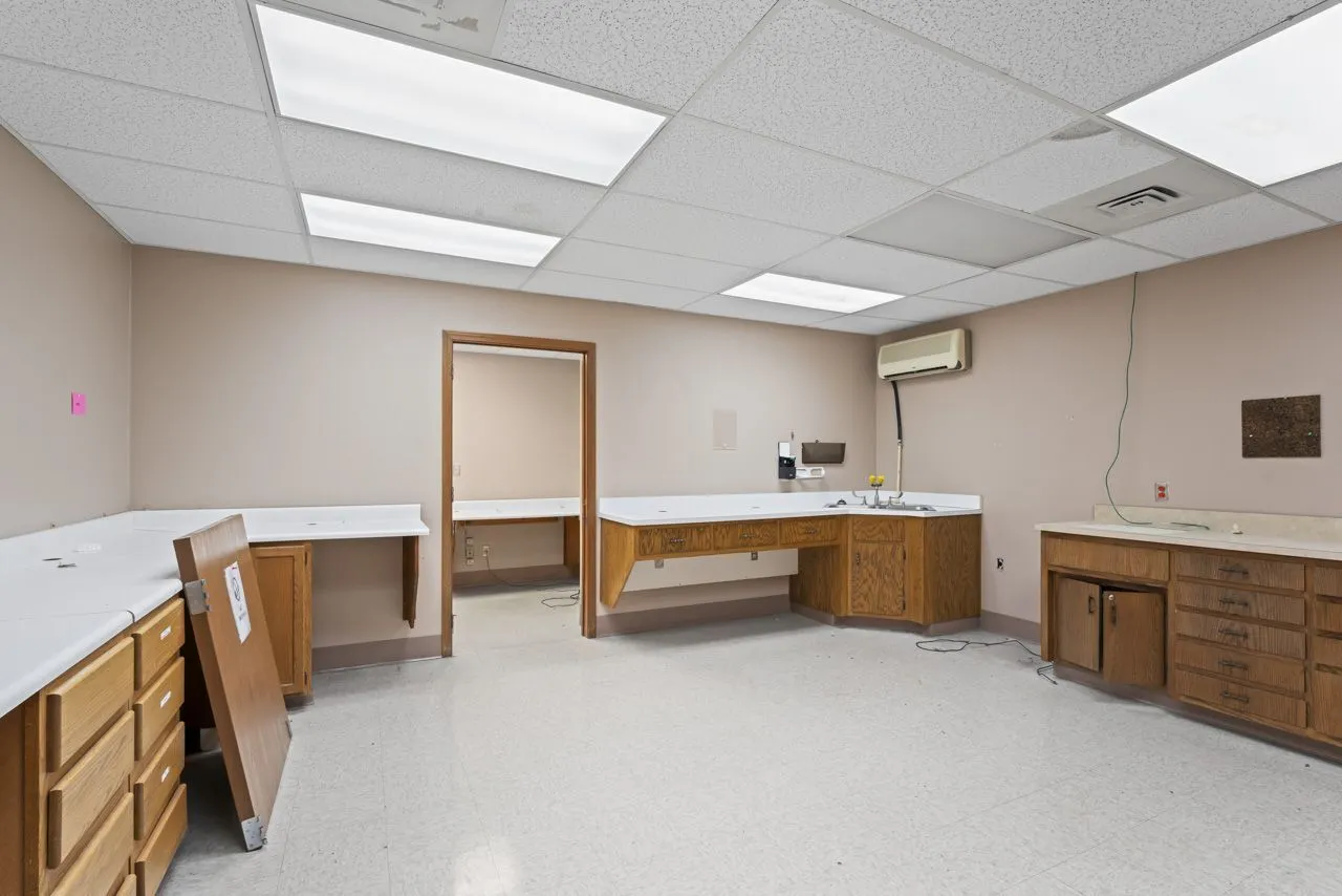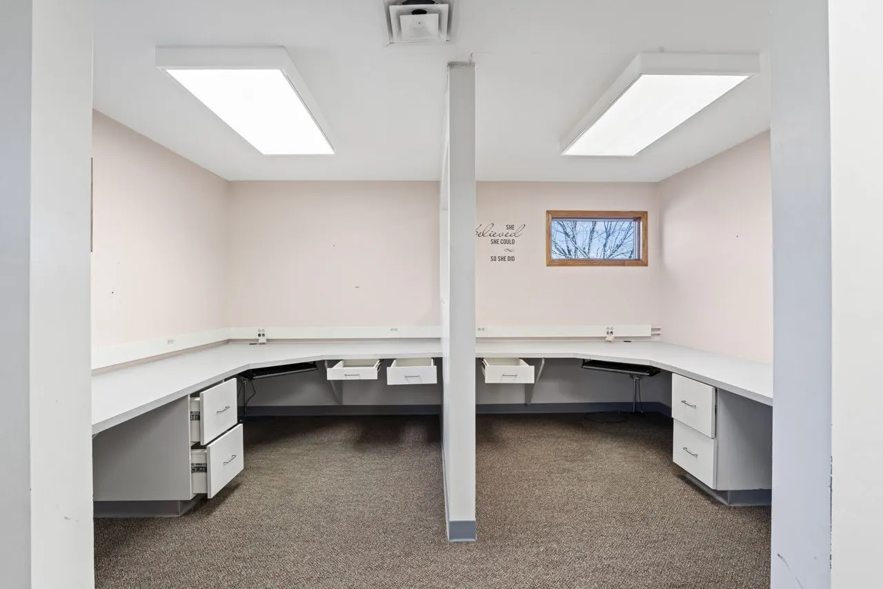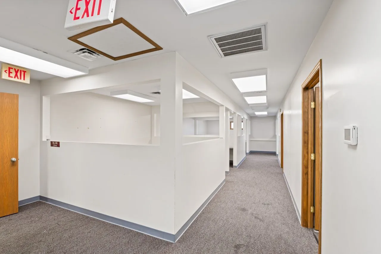 This building is in a great location in Elwood. With over 11,000 square feet it can be used for any type of health services, medical offices, lawyers offices, dentist offices, online business, the list goes on. Both sides are identical and have 6 pods that separate the space, which could be used as office space or any of the above mentioned ideas. The downstairs also has two large rooms that could be used as break rooms. The upstairs offers an open floor plan that could be turned into cubicles with a break room for the upper level. Plenty of storage for both down and upper level. The parking lot was recently paved and belongs with this building as well as the outer structure being painted.
