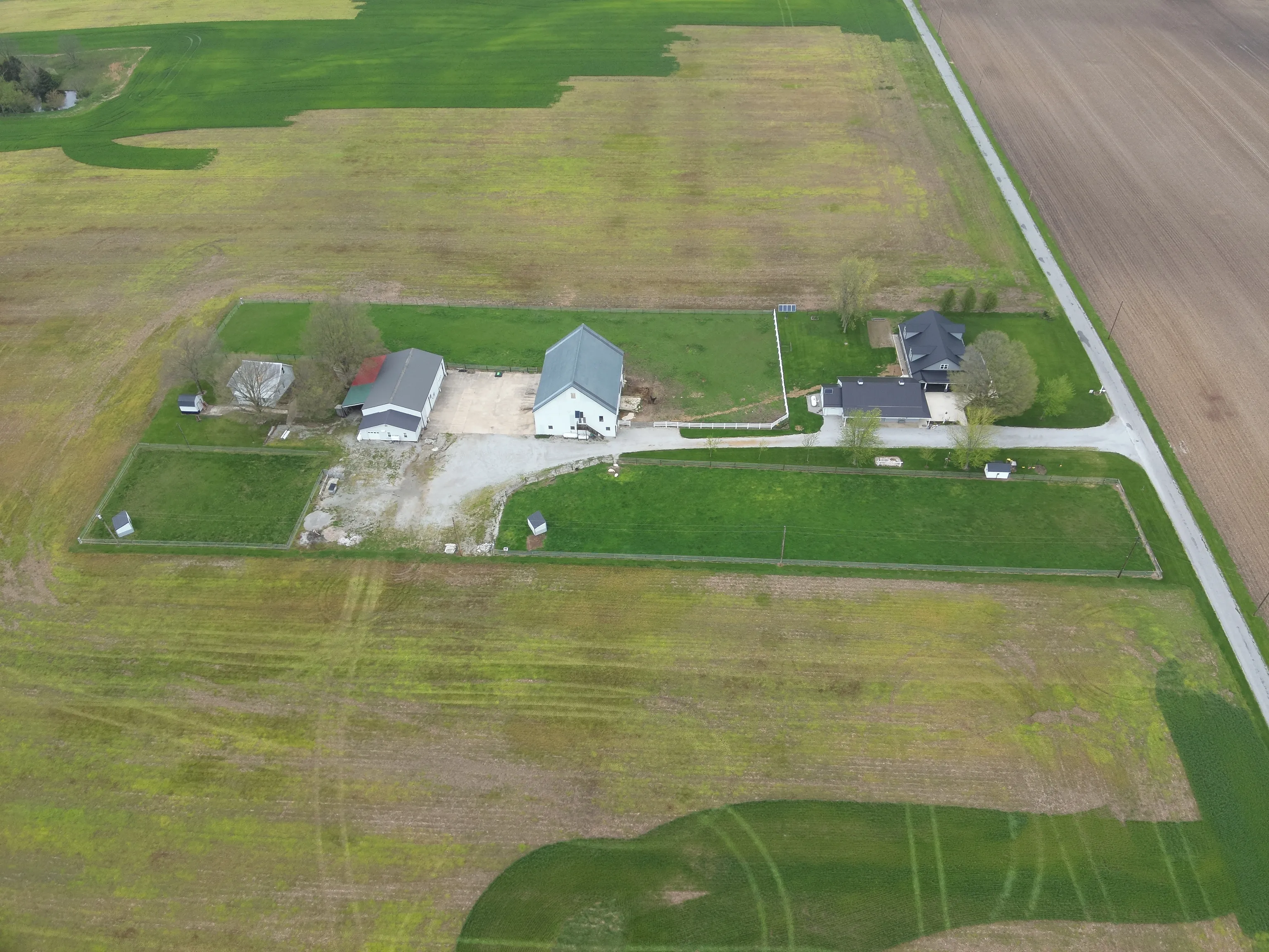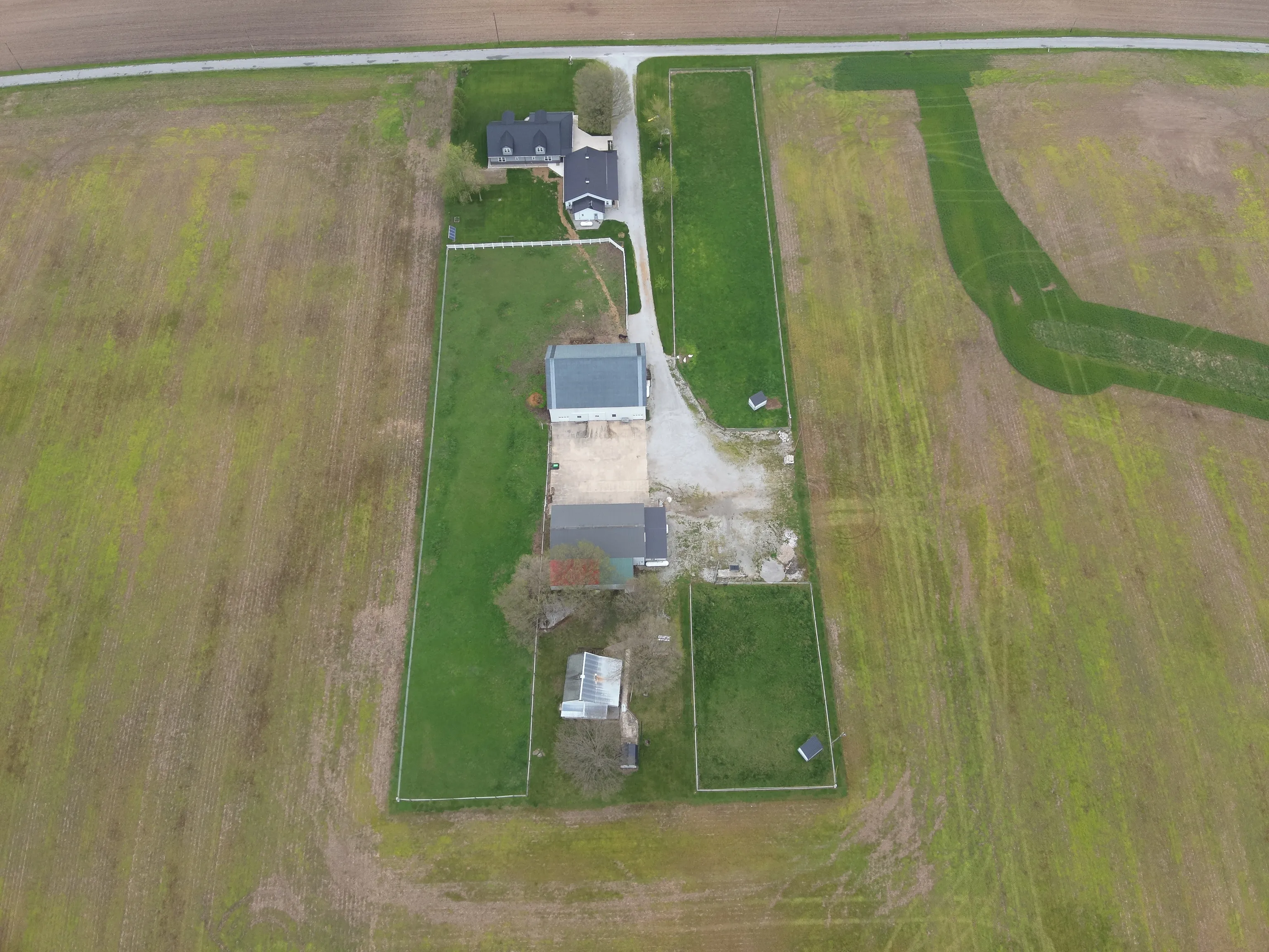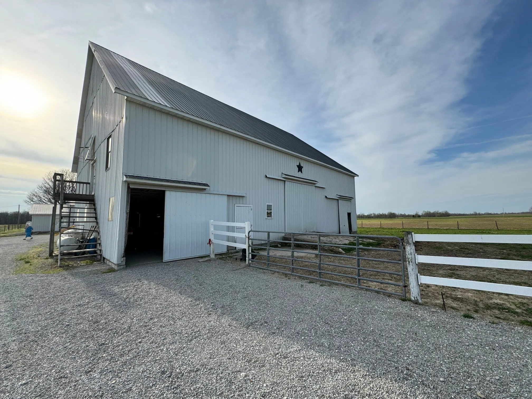 3 year old Barn-dominium is ready for you to call home. Located on 4 acres in southern Rush County, there is so much to love about this Amish built home. Grab your sweet tea and pull up a chair as you sit on under the beautiful wrap around porch with stamped concrete and stone pillars. From the front door you are invited into a large open concept space of living, dining and kitchen. The huge island is perfect to sit the children around and has built-ins for all of the cookbooks. Beautiful cabinets provide plenty of storage along with the tremendous amount of counter space. The primary bedroom is massive with a closet and private bathroom. The walk-in shower was designed with a beautiful stone floor and a neutral-colored tile. Again, lots of great cabinetry in the bathroom encompassing the double sinks. The main level has heated floors to keep your toes toasty warm! Use the front sitting room as sewing room, office or just a quiet space. The beautiful staircase leads to the open great room and 2 additional bedrooms. Both bedrooms are great sizes and share a full bathroom with tub/shower. The large utility room has a half bath and beautiful built-in cabinetry. Outside there are fenced in pasture areas for all of the animals. The detached garage near the house has a summer kitchen, storage, and a 1 car garage. The large barn has 4 or 5 stables and is 46′ tall at the peak. The 3rd metal building is 40’x80′ and has 2 large overhead doors. There is a guest house on the property that needs some TLC. Bring the family and the animals!