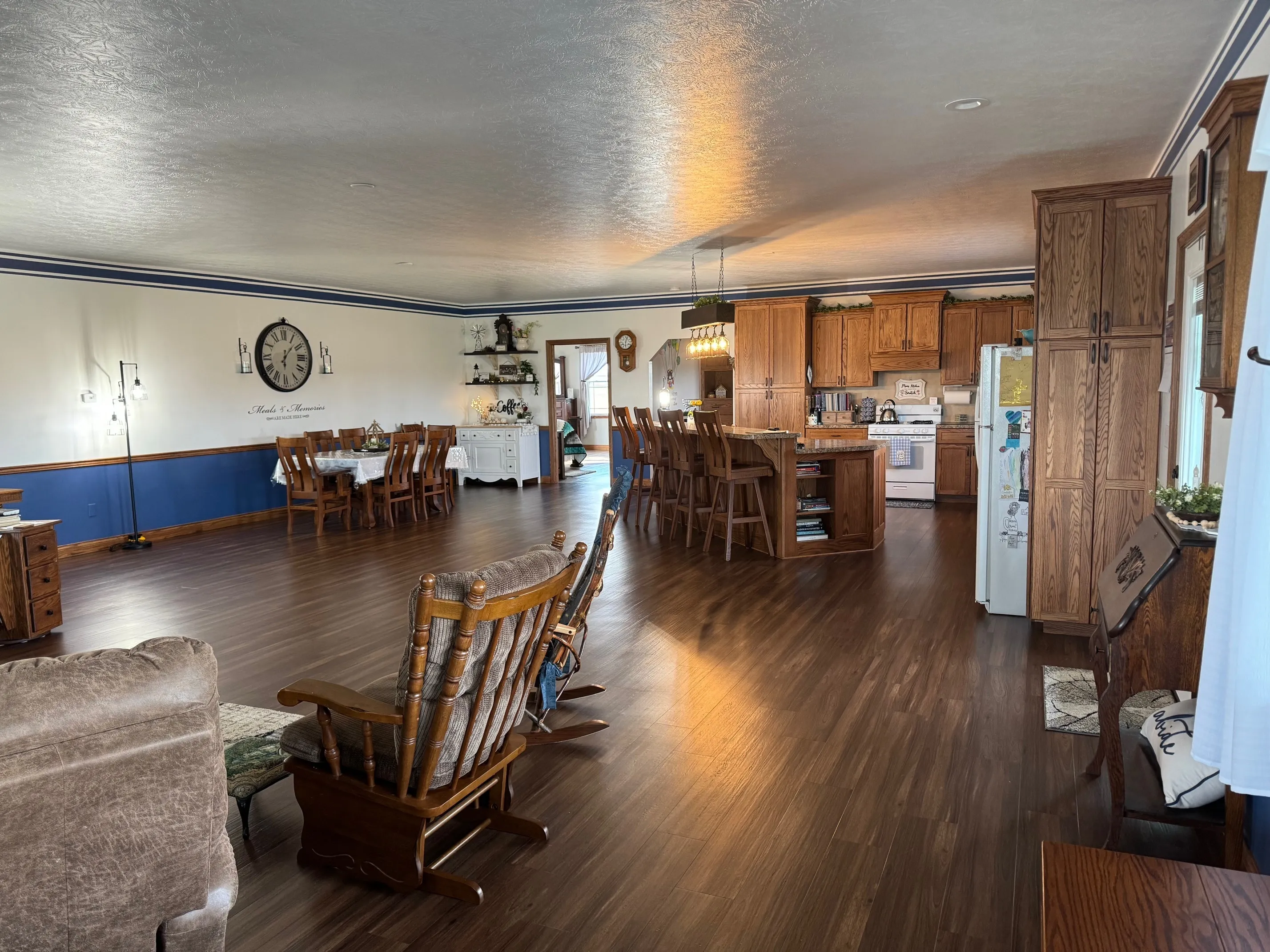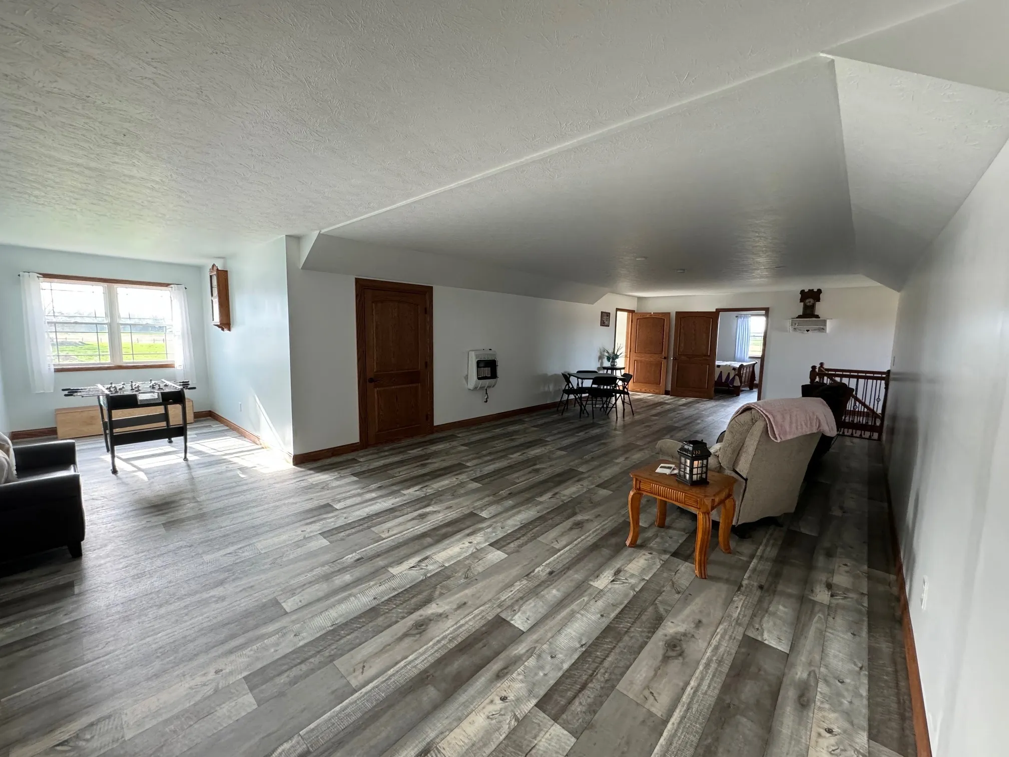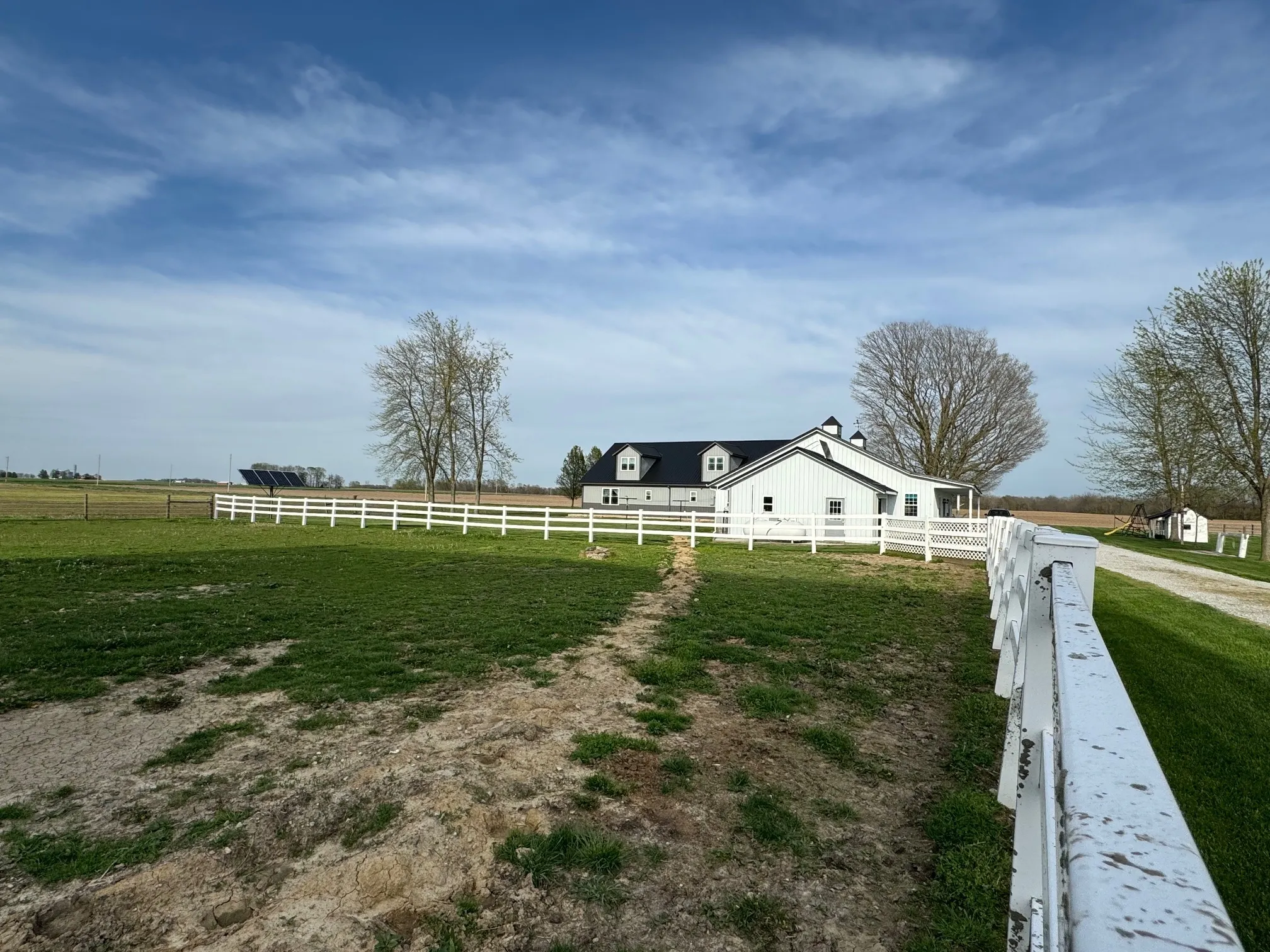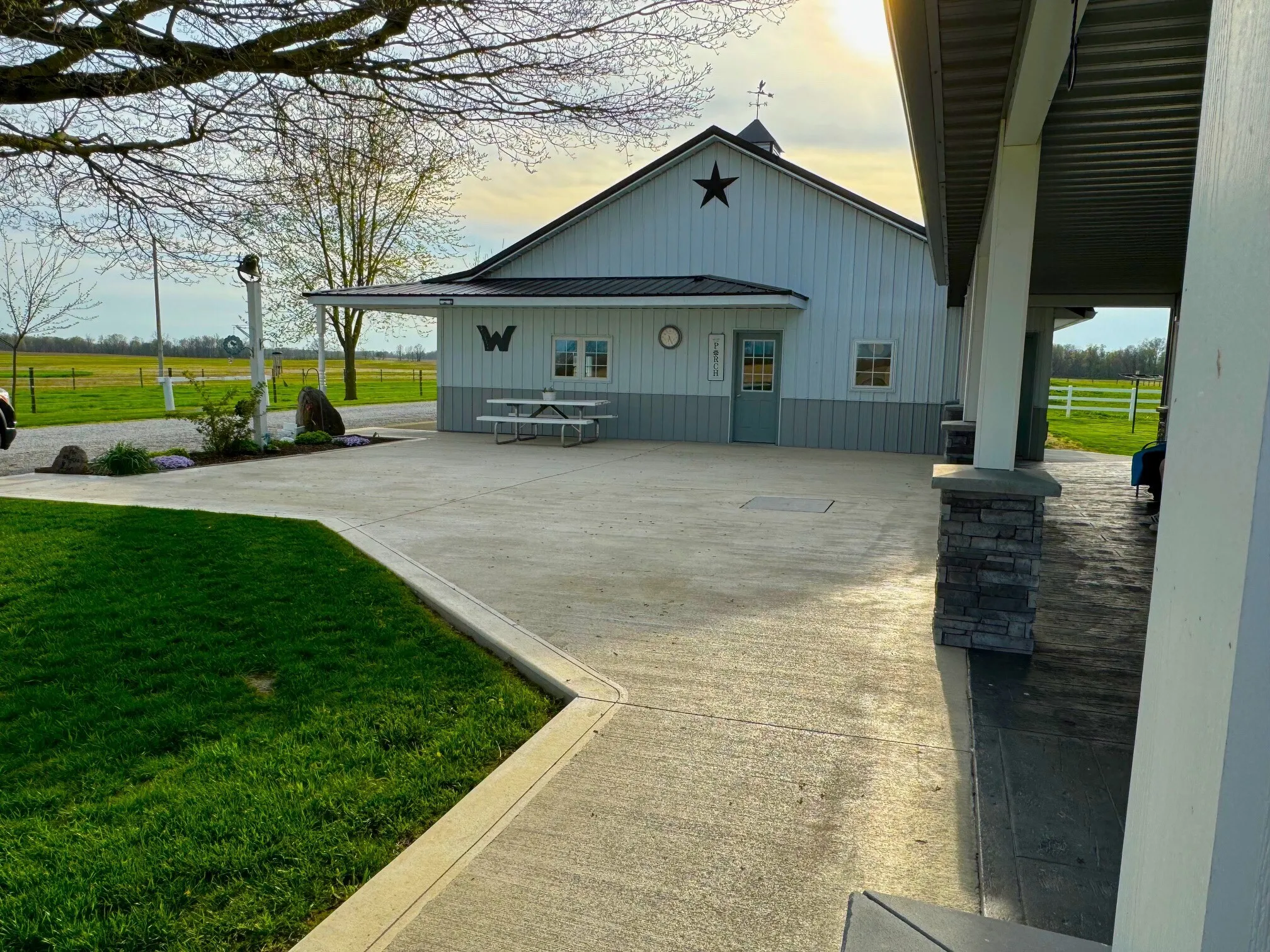 3 year old Barn-dominium is ready for you to call home. Located on 4 acres in southern Rush County, there is so much to love about this Amish built home. Grab your sweet tea and pull up a chair as you sit on under the beautiful wrap around porch with stamped concrete and stone pillars. From the front door you are invited into a large open concept space of living, dining and kitchen. The huge island is perfect to sit the children around and has built-ins for all of the cookbooks. Beautiful cabinets provide plenty of storage along with the tremendous amount of counter space. The primary bedroom is massive with a closet and private bathroom. The walk-in shower was designed with a beautiful stone floor and a neutral-colored tile. Again, lots of great cabinetry in the bathroom encompassing the double sinks. The main level has heated floors to keep your toes toasty warm! Use the front sitting room as sewing room, office or just a quiet space. The beautiful staircase leads to the open great room and 2 additional bedrooms. Both bedrooms are great sizes and share a full bathroom with tub/shower. The large utility room has a half bath and beautiful built-in cabinetry. Outside there are fenced in pasture areas for all of the animals. The detached garage near the house has a summer kitchen, storage, and a 1 car garage. The large barn has 4 or 5 stables and is 46′ tall at the peak. The 3rd metal building is 40’x80′ and has 2 large overhead doors. There is a guest house on the property that needs some TLC. Bring the family and the animals!