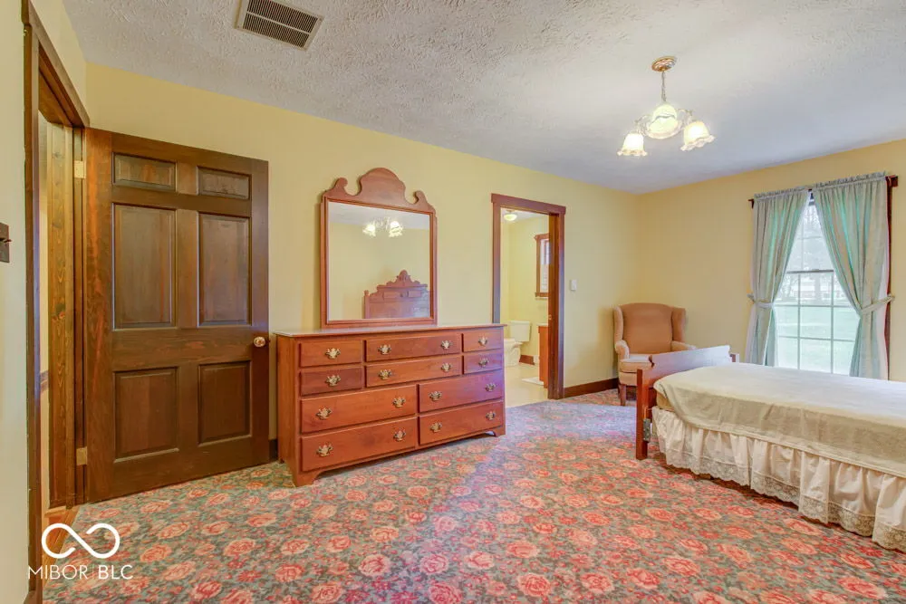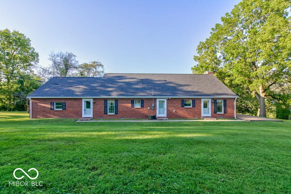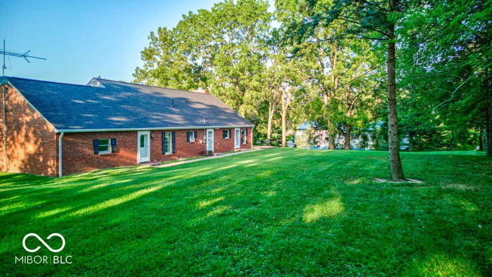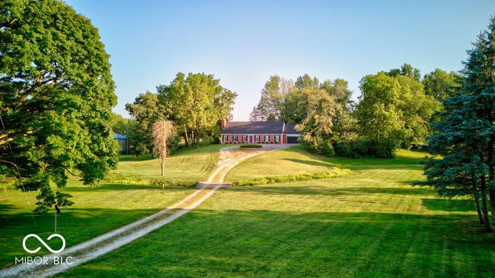 This property is unique, solid, intriguing and ready for you and yours! Two beautiful rolling acres and 1 storage barn. One-owner custom built, all brick, 3 bedroom 2 bath home placed up on a hill overlooking beautiful trees, landscape and a little babbling creek. Large Great Room/Living Room w/stately fireplace, Dining Room, kitchen w/appliances, Den/office,Mudroom/laundry room. Roof is new in Summer of 2024. Drive up the super extended drive and cross the small babbling creek and head to the primary home. Sit out back on the open patio and enjoy the peaceful and serene surroundings. This home has beautiful history and was custom built for the owners family. Enjoy the convenience of being within .5 mile from amazing new eateries, famous Cochran Bakery and Catering and in a town that is experiencing so much growth. Small town feels all the way around. Such a convenient location to the airport, shopping, downtown via I74, lakes, and more.