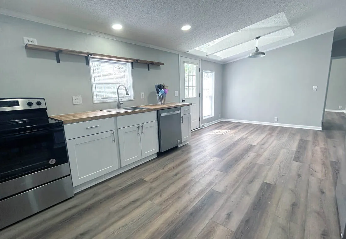Enjoy Downtown Thorntown living in this fully refurbished and spacious three bedroom, two bath home, just blocks from the Post Office, Library, Big 4 Rail Trail, retail and dining. 335 West Bow Street is a three bedroom, two bath home with with a bright and spacious kitchen and dining space, a large living room, and a large, sunny back patio with an 8×10 storage shed for all your outside toys and yard tools. The kitchen has been fully updated with new cabinets, stainless appliances, garbage disposer, dishwasher, cabinets and counter tops. Both bathrooms have been completely refreshed and a washer and dryer is provided too. The HVAC system is brand new as well. The primary bedroom and it’s bathroom are both huge, with the laundry space immediately off of the bathroom. The second and third bedrooms are also quite large and all bedrooms have walk-in closets. Well behaved pets are allowed upon approval.