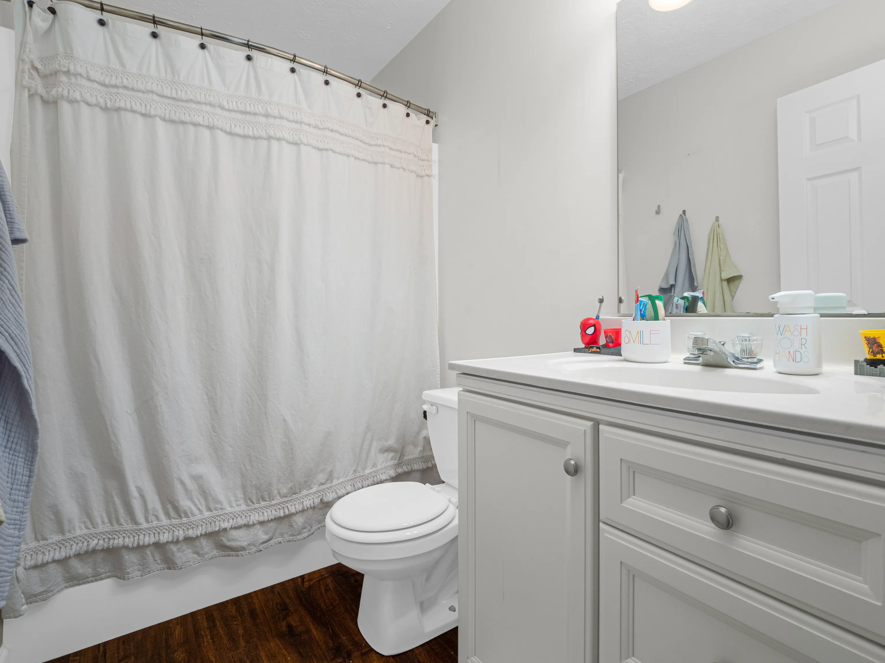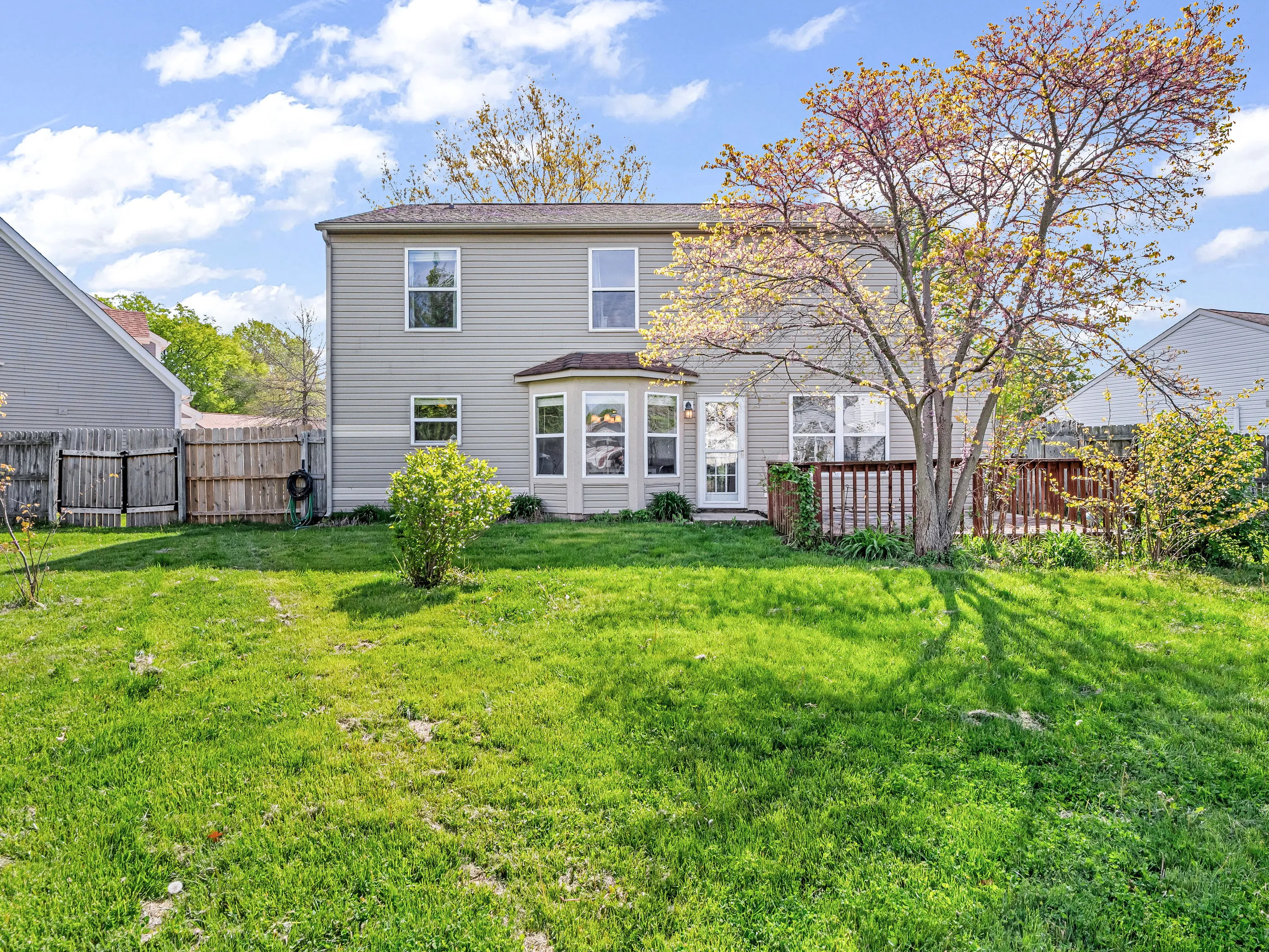 Beautiful 4-BR, 2.5 bath home is ready to move-in and enjoy! Gorgeous hardwood flooring on main level and tasteful colors throughout. Big breakfast room has a bay window with bench seat. Kitchen includes center-island and all appliances stay! Open family room/kitchen layout is easy to live with and separate living room offers more space to spread-out. Huge back-yard is family friendly and incls wood deck, play-set, mini-barn and lots of space to run. Master bedroom incls vaulted ceiling, garden tub, separate shower, double closets and dual vanity … Wow! This gorgeous home includes ceiling fans everywhere and beautiful 6-panel doors and trim. Very nice cul-de-sac setting in a desirable neighborhood close to schools. This may be a short sale.