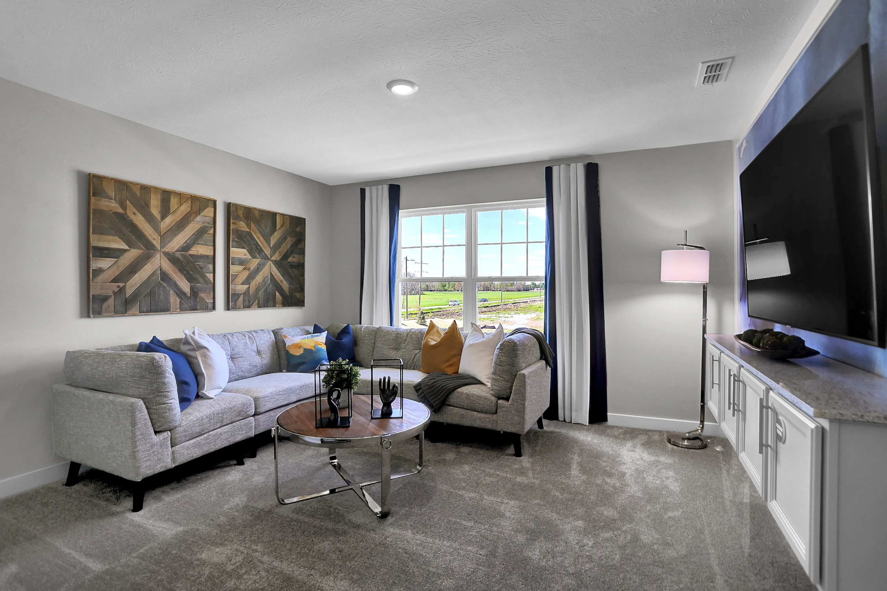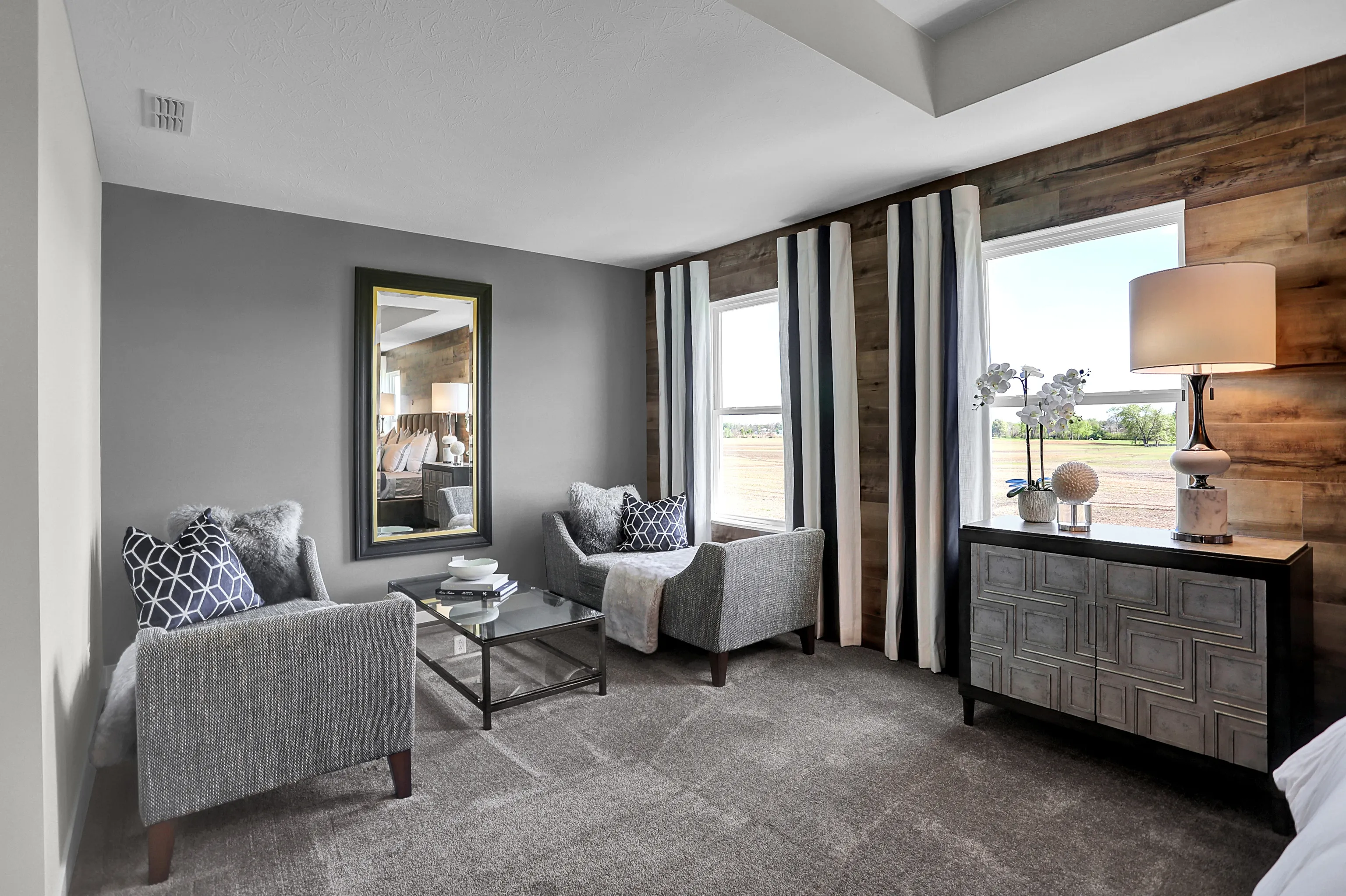 Elmwood Estate Cornerstone is a collection of new single-family homes coming soon to the Elmwood Estates masterplanned community in ever-growing Greenwood, IN. Amenities will include a pool, pool house, playground, ponds and internal walking trails. The community is primely located near popular Greenwood Park Mall, fun restaurants and recreation facilities including golf courses and 17 city parks. The big-city conveniences of downtown Indianapolis are 14 miles away. This two-story home includes a spacious open floorplan between the living room, dining room and kitchen on the first floor. The first level is also host to a convenient study located off the foyer and a bedroom with a walk-in closet that could be used as a guest space or a den. Upstairs, the second floor is occupied by four bedrooms, including the owner’s suite, and a loft. A 3 car garage adds extra storage. *Photos/Tour of model may show features not selected in home.