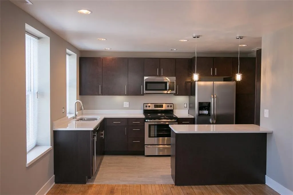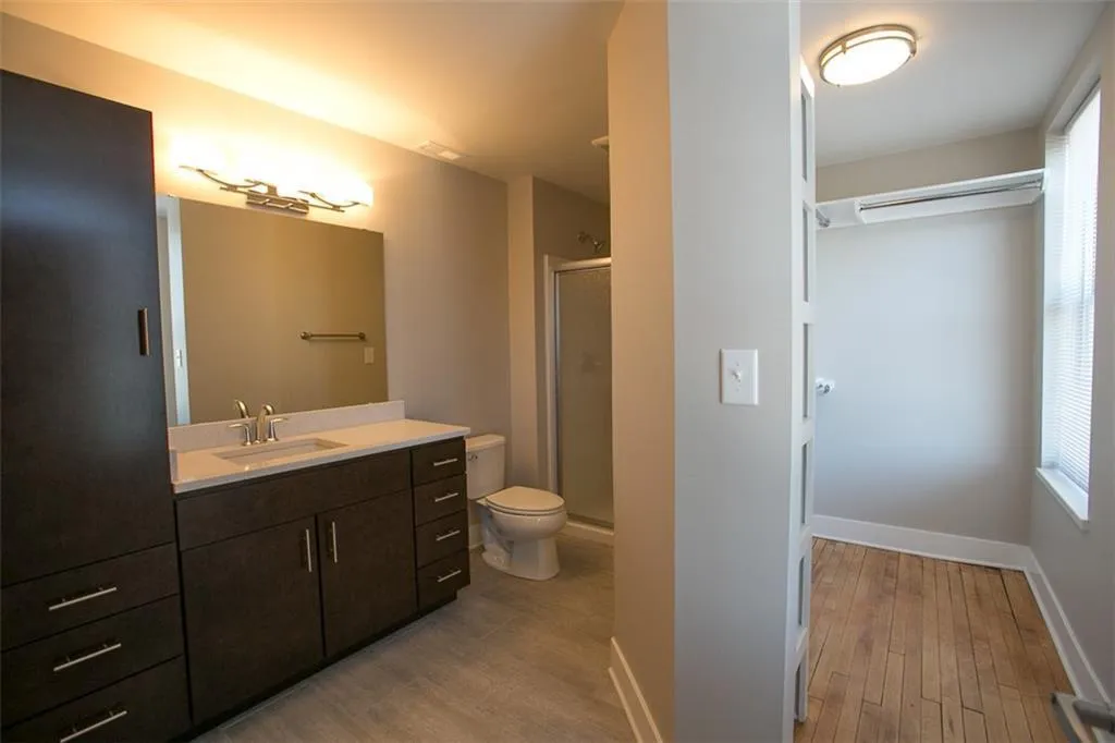 Delightful loft apt with condo quality finishes! Modern slab cabinetry in warm mocha brown tones, Quartz countertops in kitchen & baths, beautiful distressed maple hardwood floors, modern tiled baths, full sized stack washer & dryer in apt. + additional storage in basement. Second floor apt with west & northern exposure. Gas heat & central air + ceiling fans! Off-street reserved parking avail. for an additional $50 / month. Pet friendly building. Garden plots avail. onsite on first come first serve basis! Located in the Historic Old Northside with great walkability to downtown & neighborhood restaurants, coffee shops & Cultural Trail. Avail. August 1, 2024. Residents LOVE the quality & ambience of our apts! You’ll fall in love!