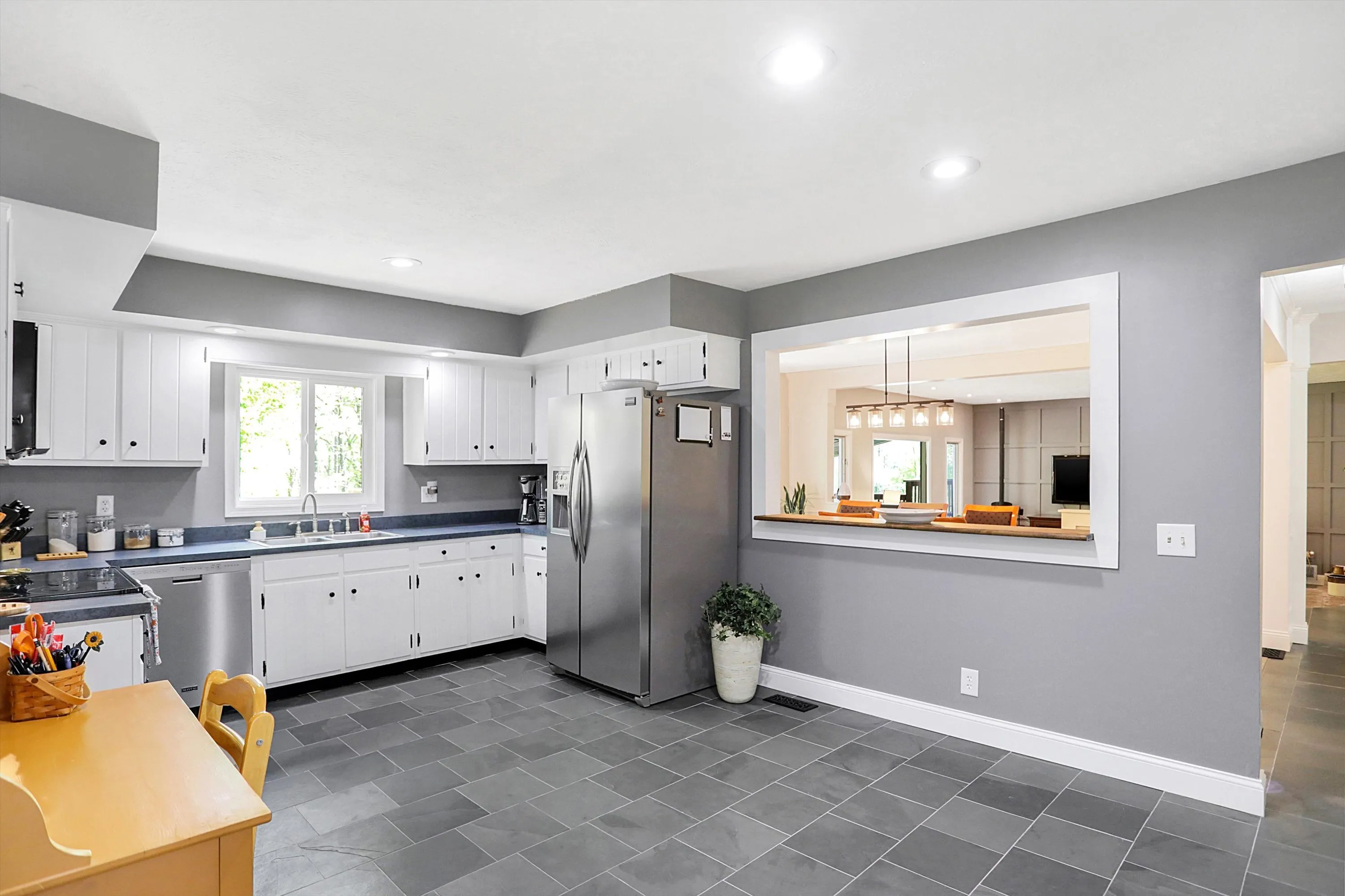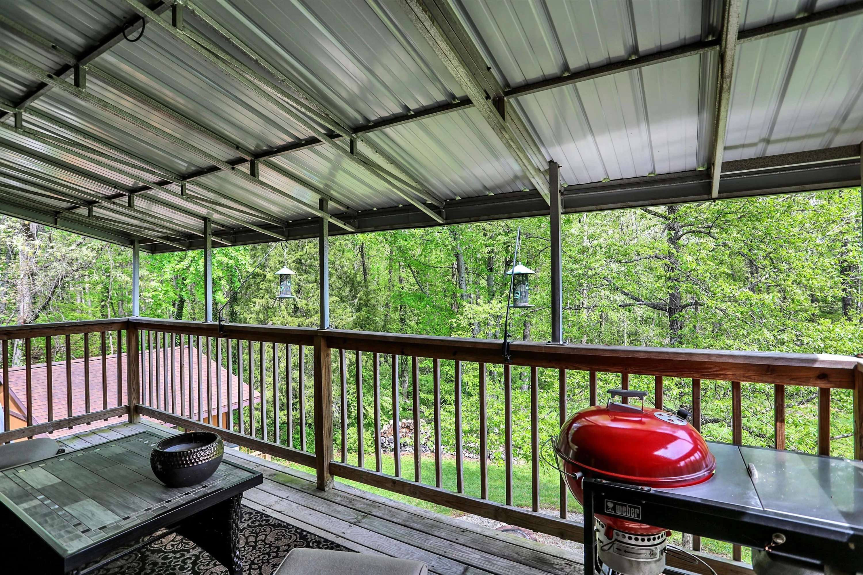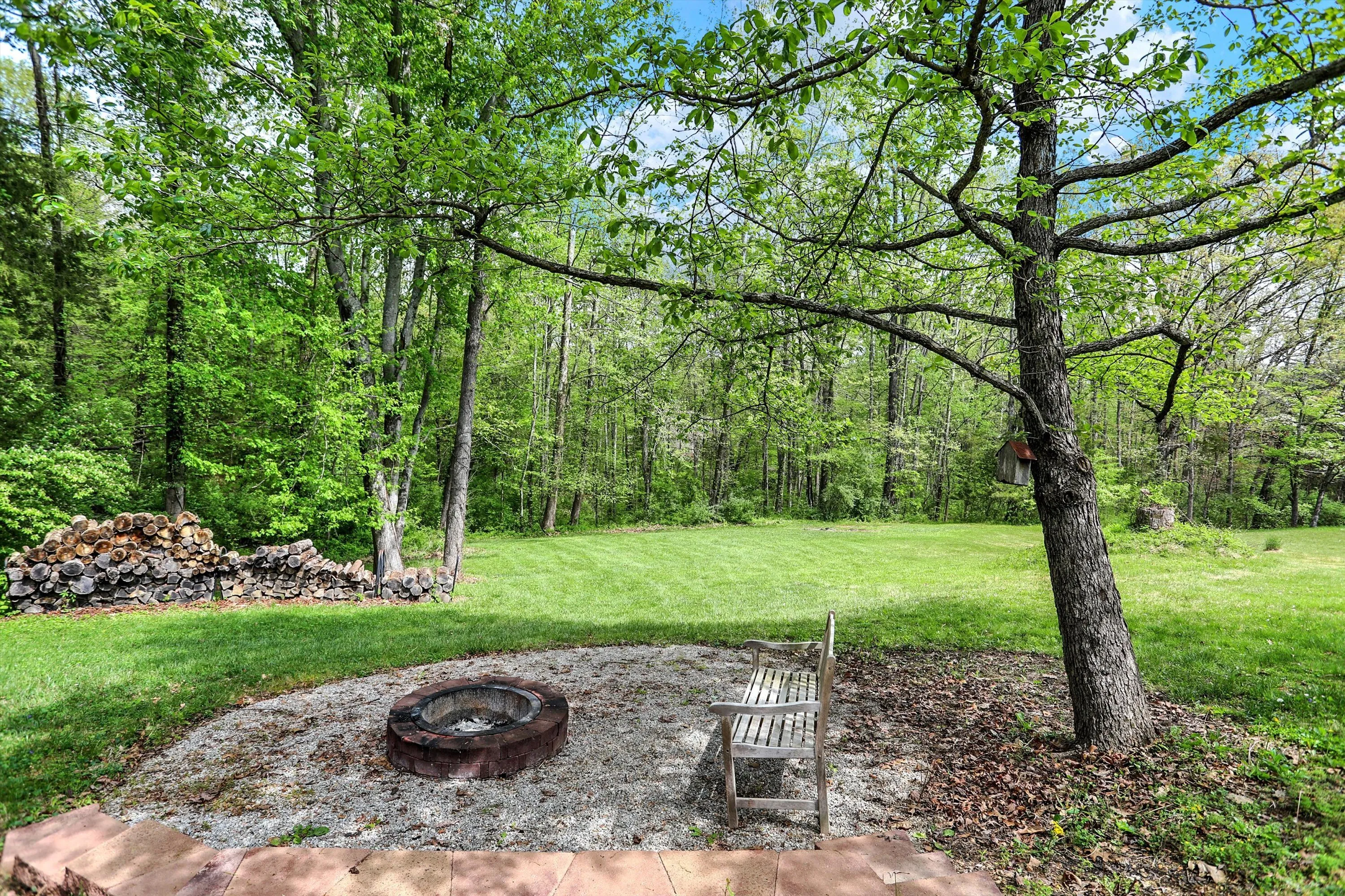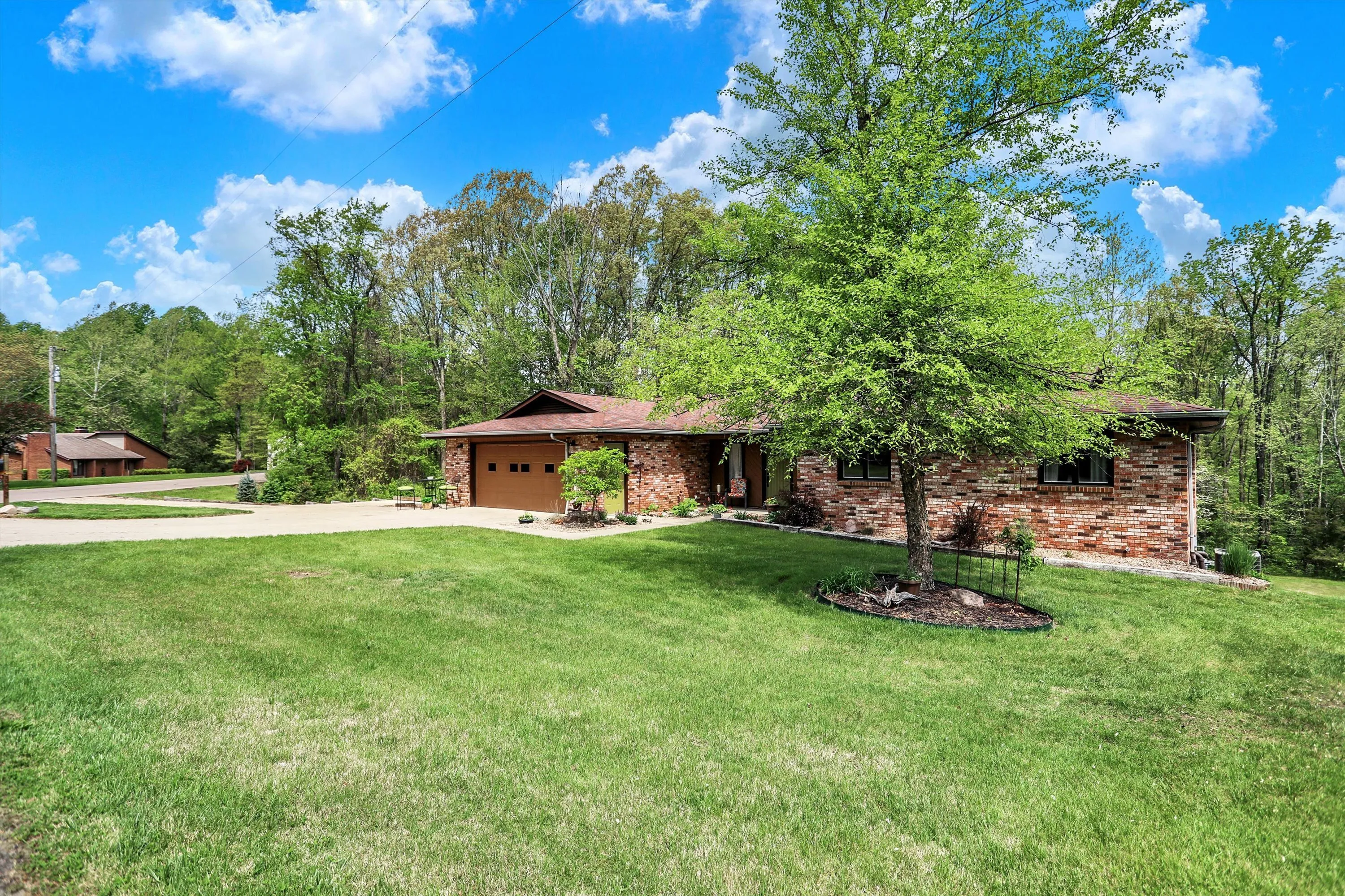 Welcome to this beautiful, spacious, modern, light-filled nearly fully renovated 4 bedroom, 3 bath Ranch home with walk out basement. Make sure to see the 3D walkthrough click Additional Info -Branded Virtual Tour. Enjoy a sprawling 1.45 acre, treed lot, with a trail and charming seasonal creek. This property offers the perfect blend of privacy and picturesque scenery! The newly created open floor plan awaits you with upgraded fixtures and finishes. Enjoy the luxury of oak and slate floors throughout the entire main level. The kitchen’s updates include paint, flooring, appliances, new pantry and coffee bar. The dining and great room flow seamlessly from the kitchen, making it ideal for gatherings and family meals. The main level primary suite has updated bathroom and tiled shower. Second main level bedroom is attached to the second full bath that’s also fully renovated. Large new laundry room, on main, has lots of storage plus a fold down ironing board. The home boasts a spacious walkout lower level with two additional bedrooms, full bath, and family room with wood burning fireplace. This space is perfect for an entertainment room, home gym, or additional family living space, complete with a bonus kitchenette. Storage / utility room is huge and includes a safe for your valuables. Outside oasis includes deck for nature watching, hot tub for relaxation, expansive back yard and large outbuilding. Currently used for storage it’s a versatile space that can be transformed into a workshop, playhouse, or a personalized “he/she shed”- the possibilities are endless. Experience the tranquility of this lovely property offering the space you deserve and it’s priced with your finishing touches in mind. Home warranty included. Located in the desirable Hickory Hills subdivision & Southside school district!