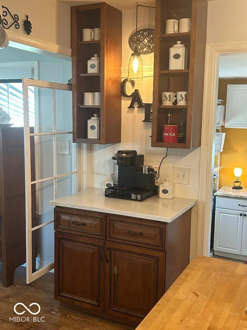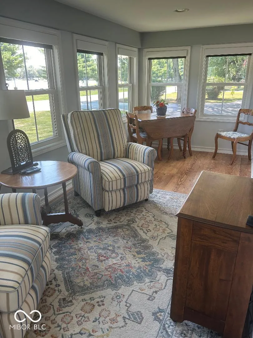 Home is Back on the Market due to financing so here is your second chance!! This unique property is a must see! Updated farmhouse on a big corner lot with mature trees, large great rm with vaulted ceiling, beautiful flooring, windows have custom shutters and electric blinds. Office has B/I corner cabinets and bookcases that stay with home. Dream kitchen has island, soft shut drawers, double oven with 5 burners. All appliances stay. 2 bdrms & 2 full baths are split. Bdrm 2 has a sunroom off it. Oversized 3 car detached brick garage with GDO’s and blacktop driveway. Home has a small screened in front porch plus a big concrete patio with a awning.