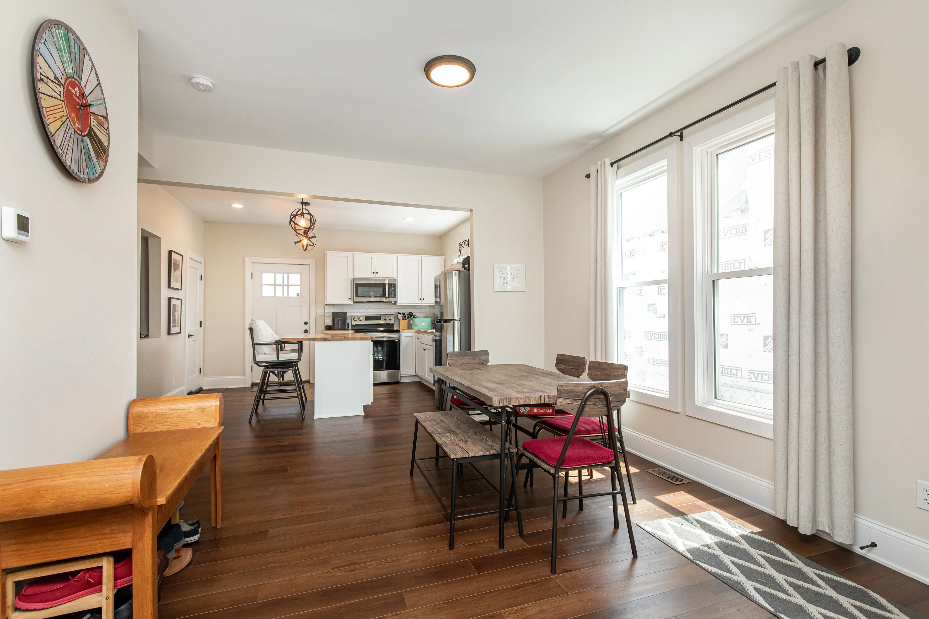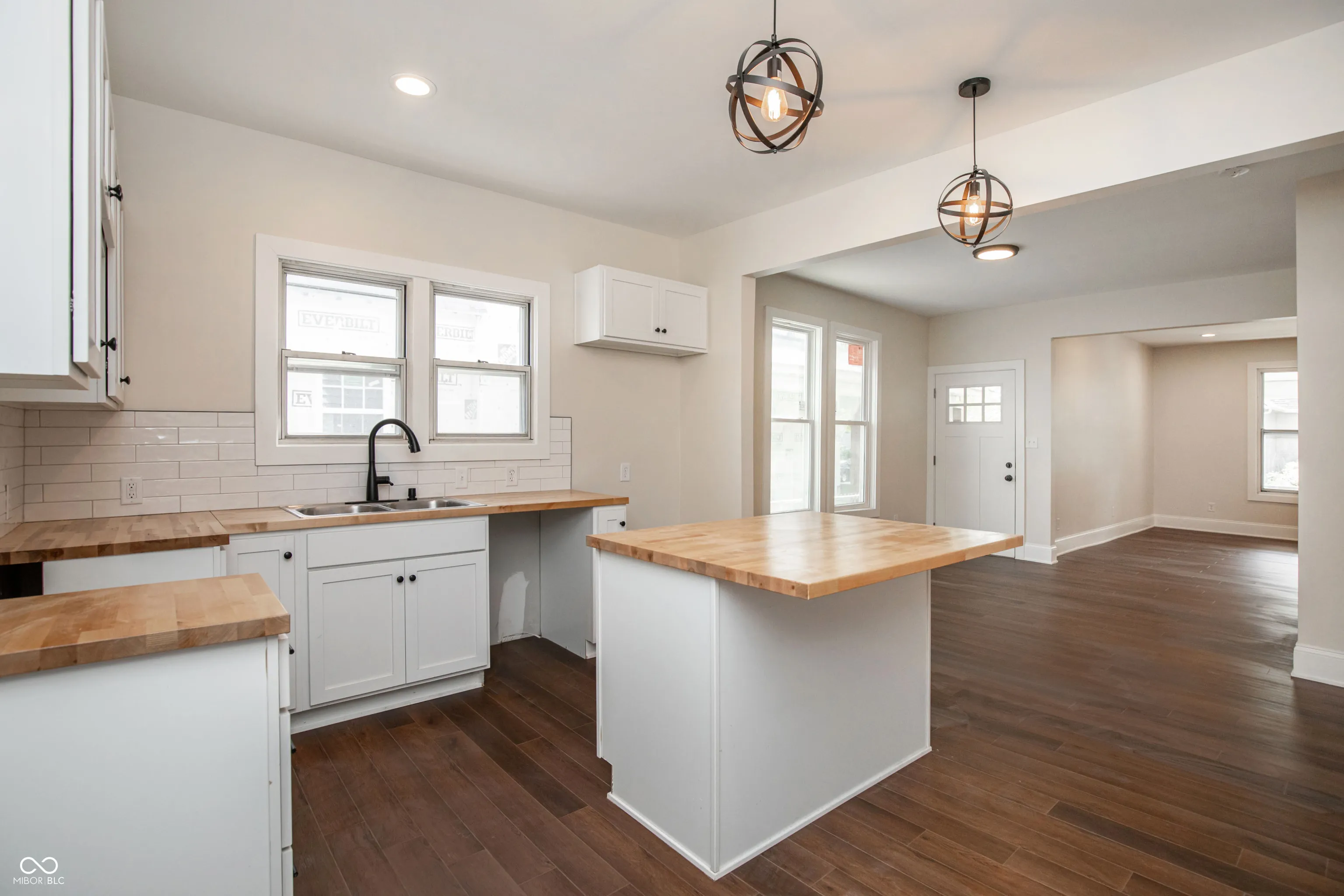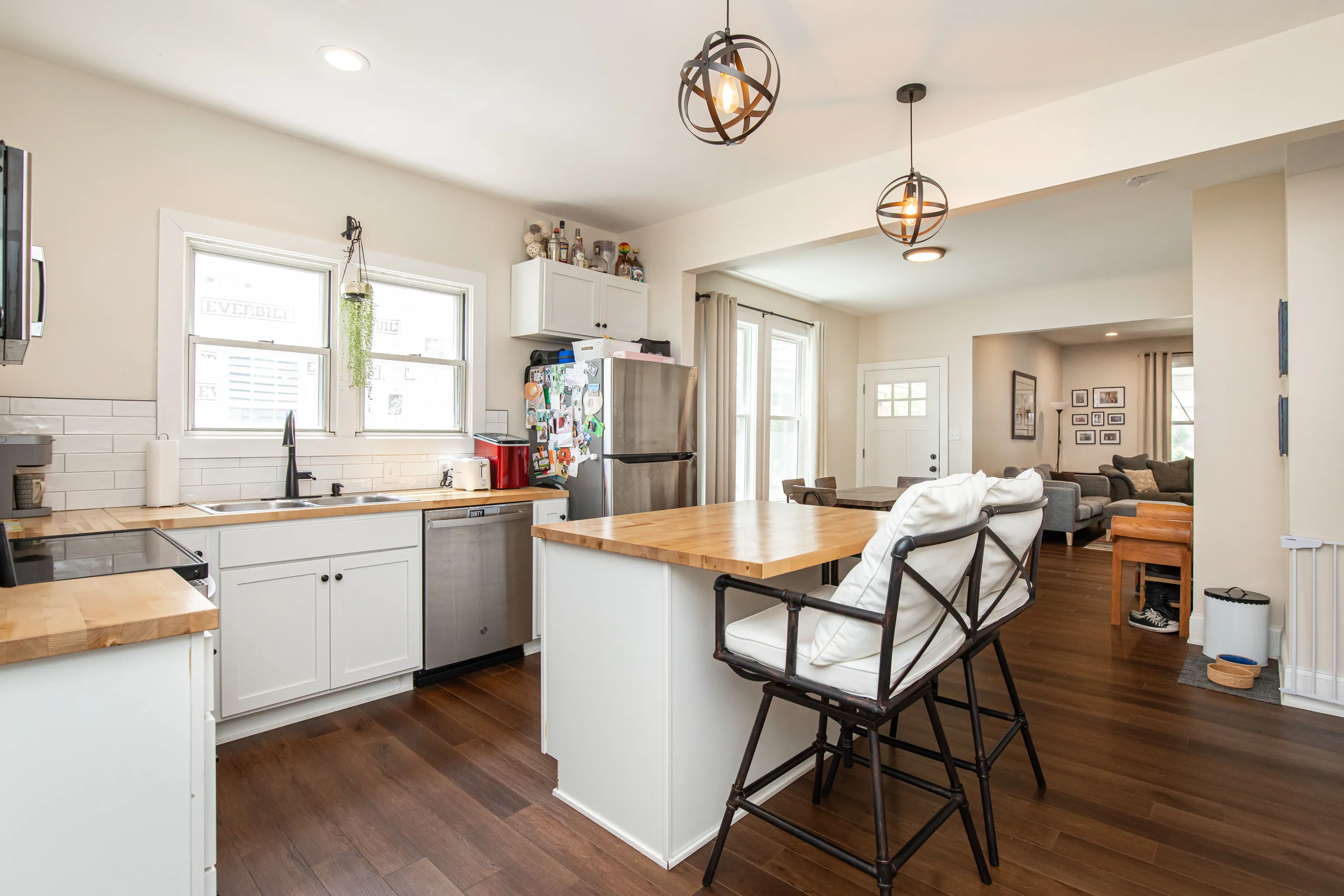 Move right into this completely renovated downtown townhouse! You’ll be greeted by a large covered open air front porch. As you enter the home you’ll notice the 9ft ceilings & open concept living area. Kitchen has brand new stainless steel appliances, soft close cabinets, and butcher block countertops. Convenient guest half bathroom as well as washer & dryer on first floor. Upstairs, find 2 bedrooms with walk in closets and shared full bathroom before you make it to the master suite that features vaulted ceilings, a walk in closet and tiled shower. You will love the exposed brick & new lvp flooring throughout your new home. Basement, Deck, Fenced back yard with sod and garage. Just over 1.5mi from Bottleworks & Mass Ave Fun. Available for immediate occupancy.