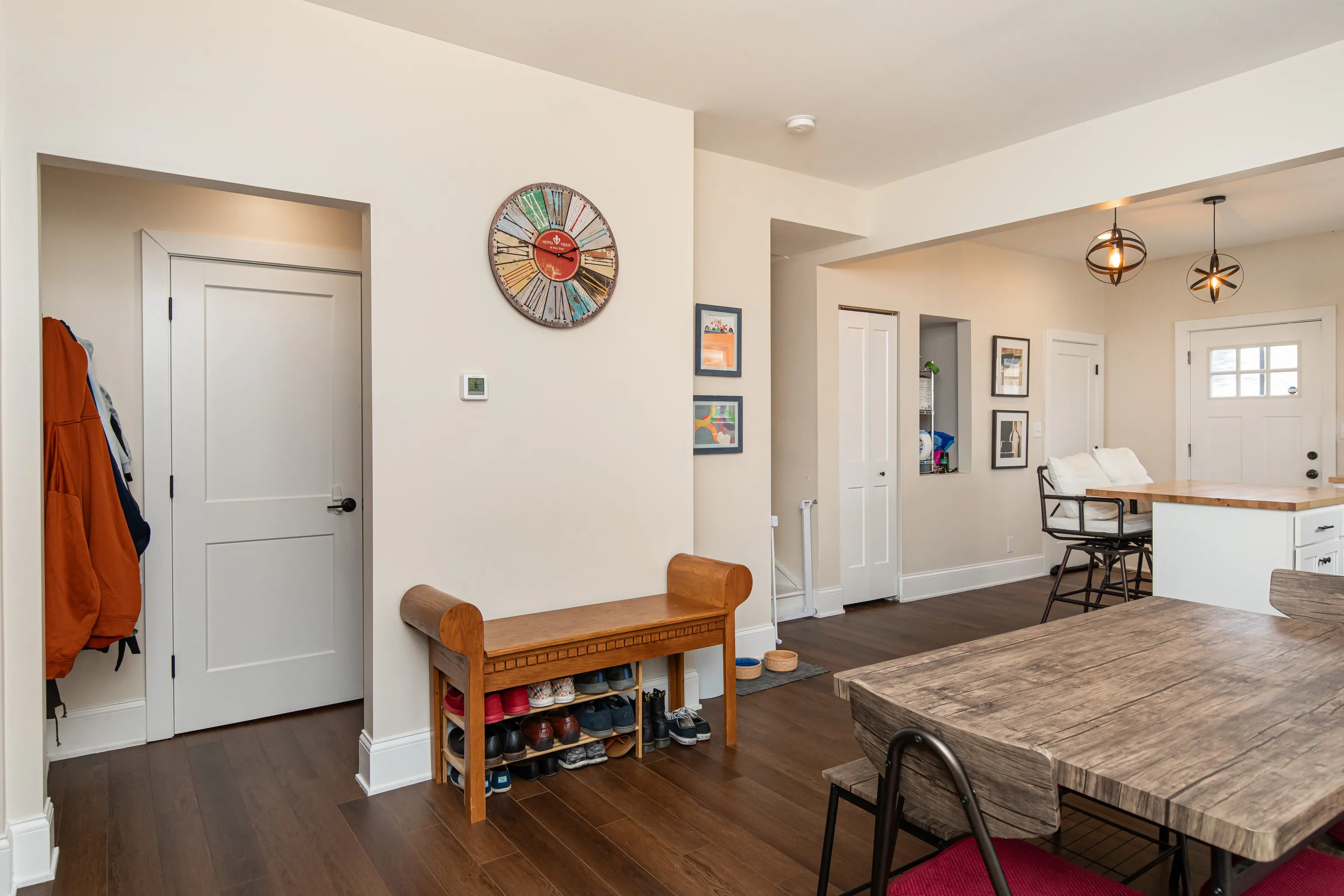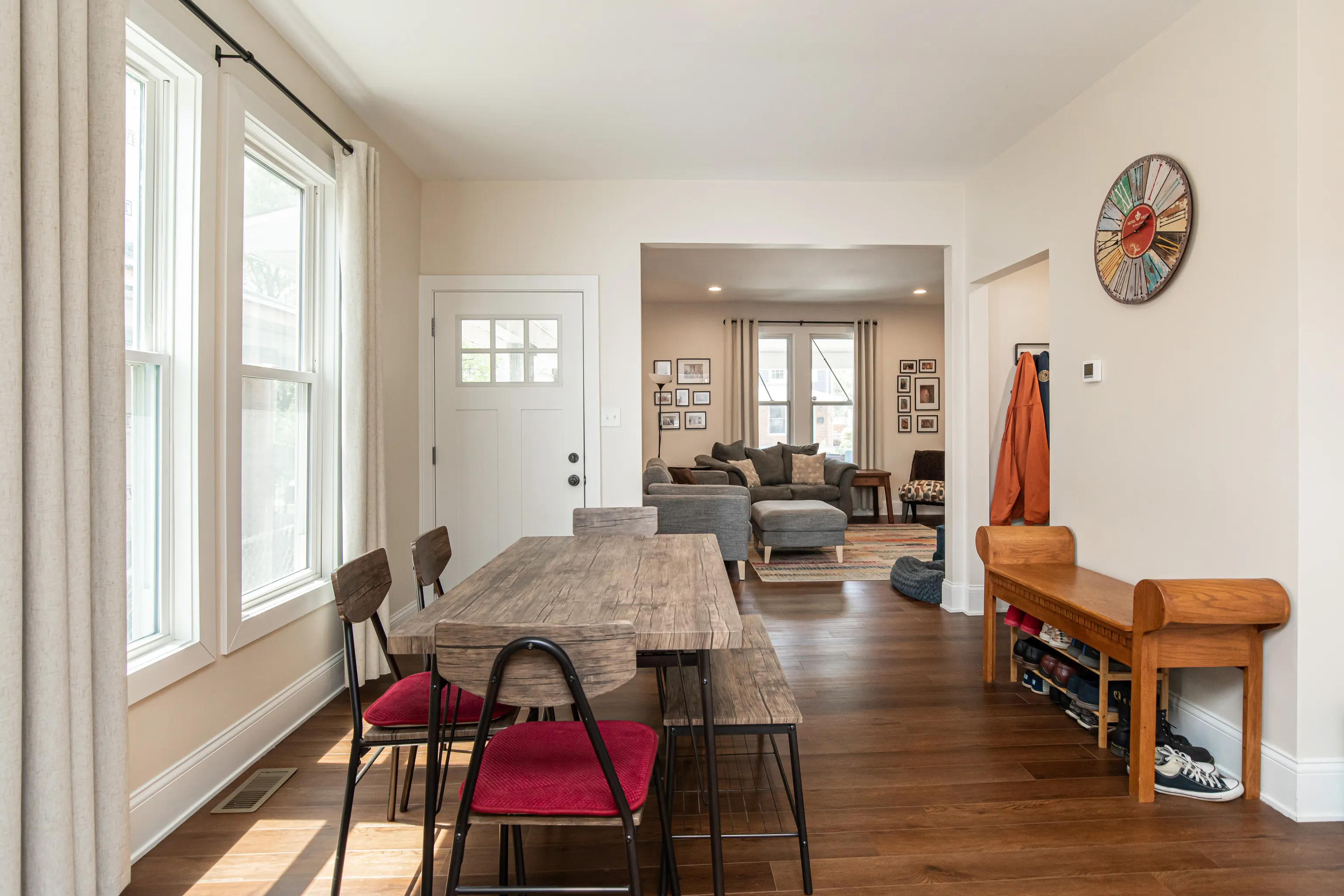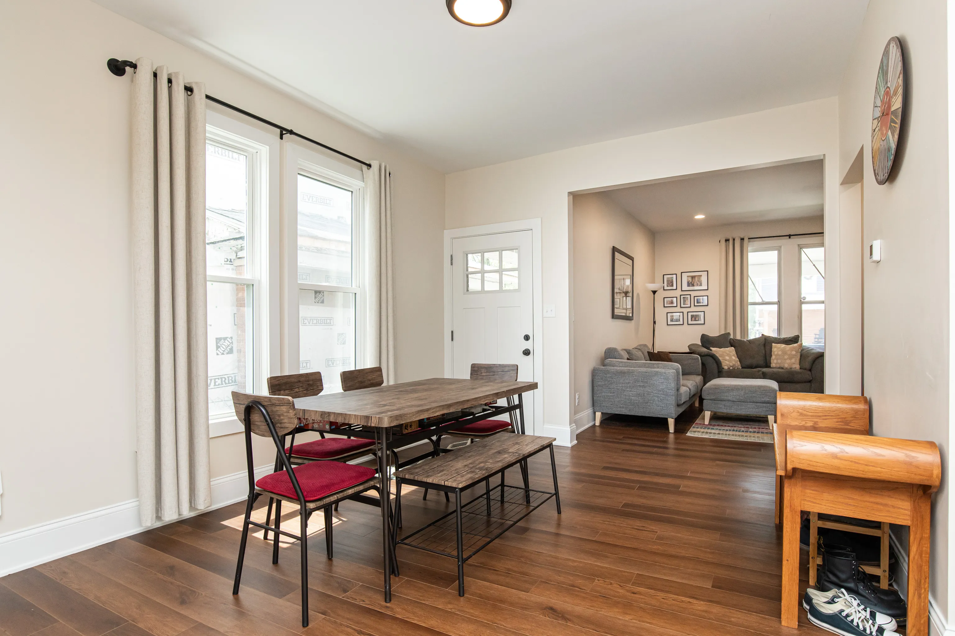 Move right into this completely renovated downtown townhouse! You’ll be greeted by a large covered open air front porch. As you enter the home you’ll notice the 9ft ceilings & open concept living area. Kitchen has brand new stainless steel appliances, soft close cabinets, and butcher block countertops. Convenient guest half bathroom as well as washer & dryer on first floor. Upstairs, find 2 bedrooms with walk in closets and shared full bathroom before you make it to the master suite that features vaulted ceilings, a walk in closet and tiled shower. You will love the exposed brick & new lvp flooring throughout your new home. Basement, Deck, Fenced back yard with sod and garage. Just over 1.5mi from Bottleworks & Mass Ave Fun. Available for immediate occupancy.