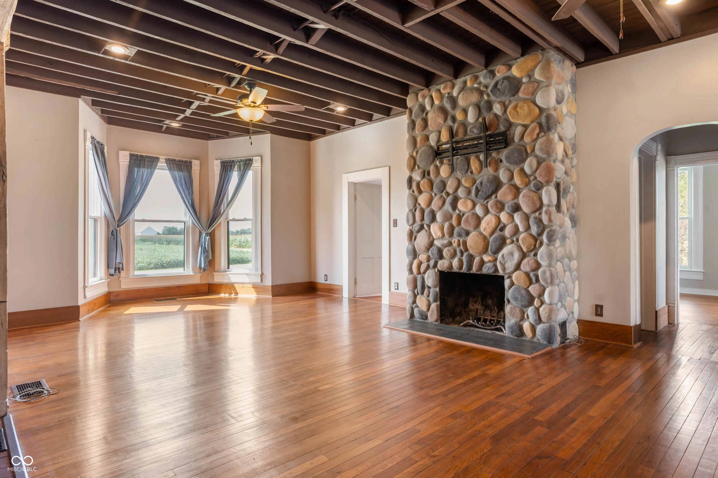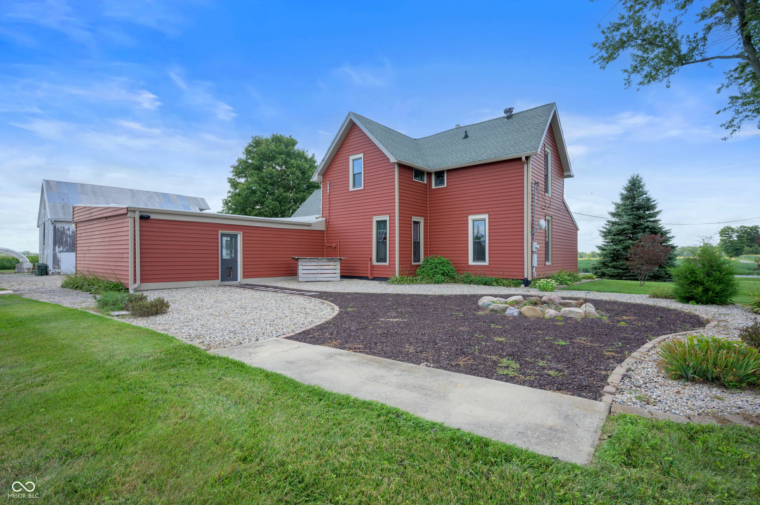 Country living is at its best in this incredibly unique 2,300+ SqFt Farmhouse sitting on 2 acres of pure beauty! Pendleton address but Lapel Schools! Property includes a large barn – perfect for equipment or machinery – a second mid-size barn great for workshop or extra storage, and a fenced-in field great for farm animals or an extra large garden. Inside you’ll find hardwood floors, beautiful wood & trim work around doors & windows. The spacious great room boasts a floor-to-ceiling wood burning stone fireplace, open rafter ceilings, & stunning bay window. The eat-in kitchen has both a dining area and cozy breakfast nook + farmhouse details at every turn. The large mudroom off the side entrance/2-car garage offers room to drop all your things. Main-level laundry room + full bathroom so convenient, too. Additional bedrooms offer great space & unique details, too! Landscaping has been beautifully maintained and there is tons of room to entertain & run and play out back.