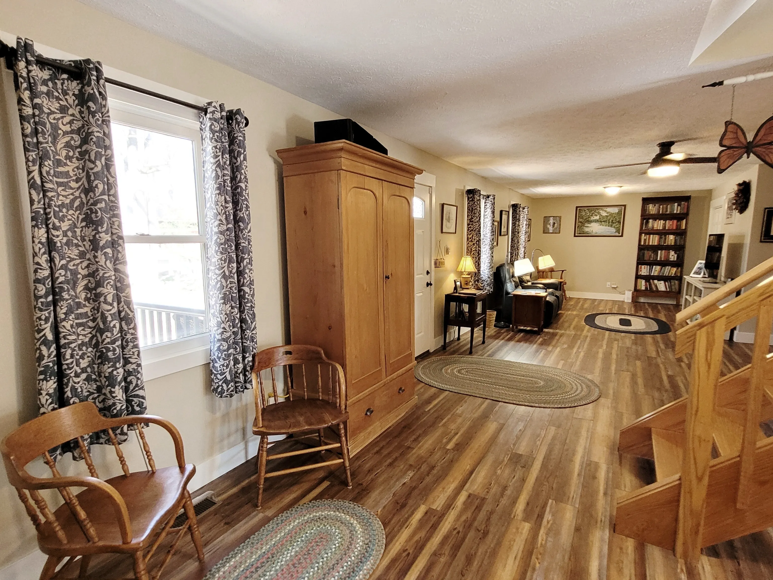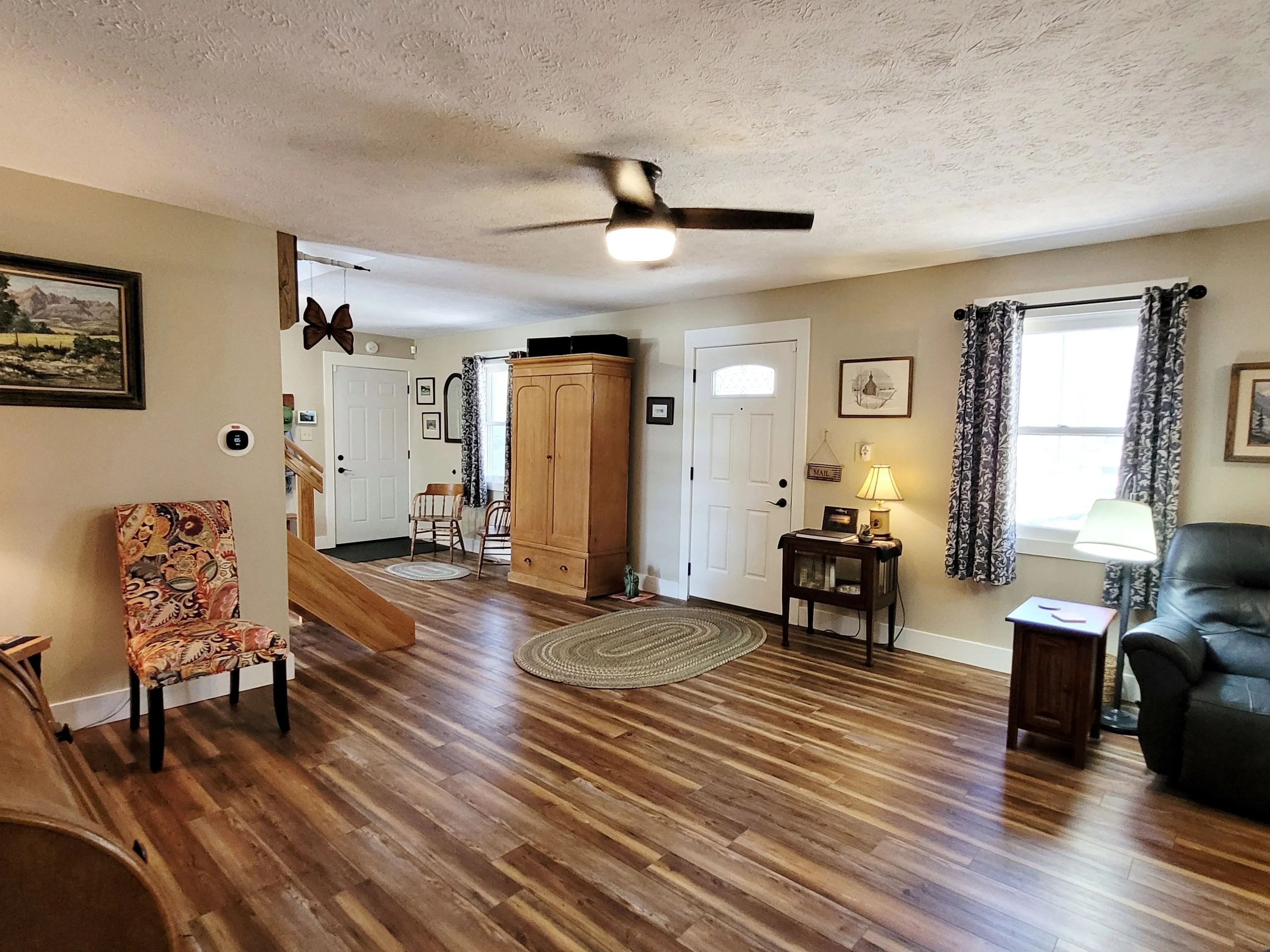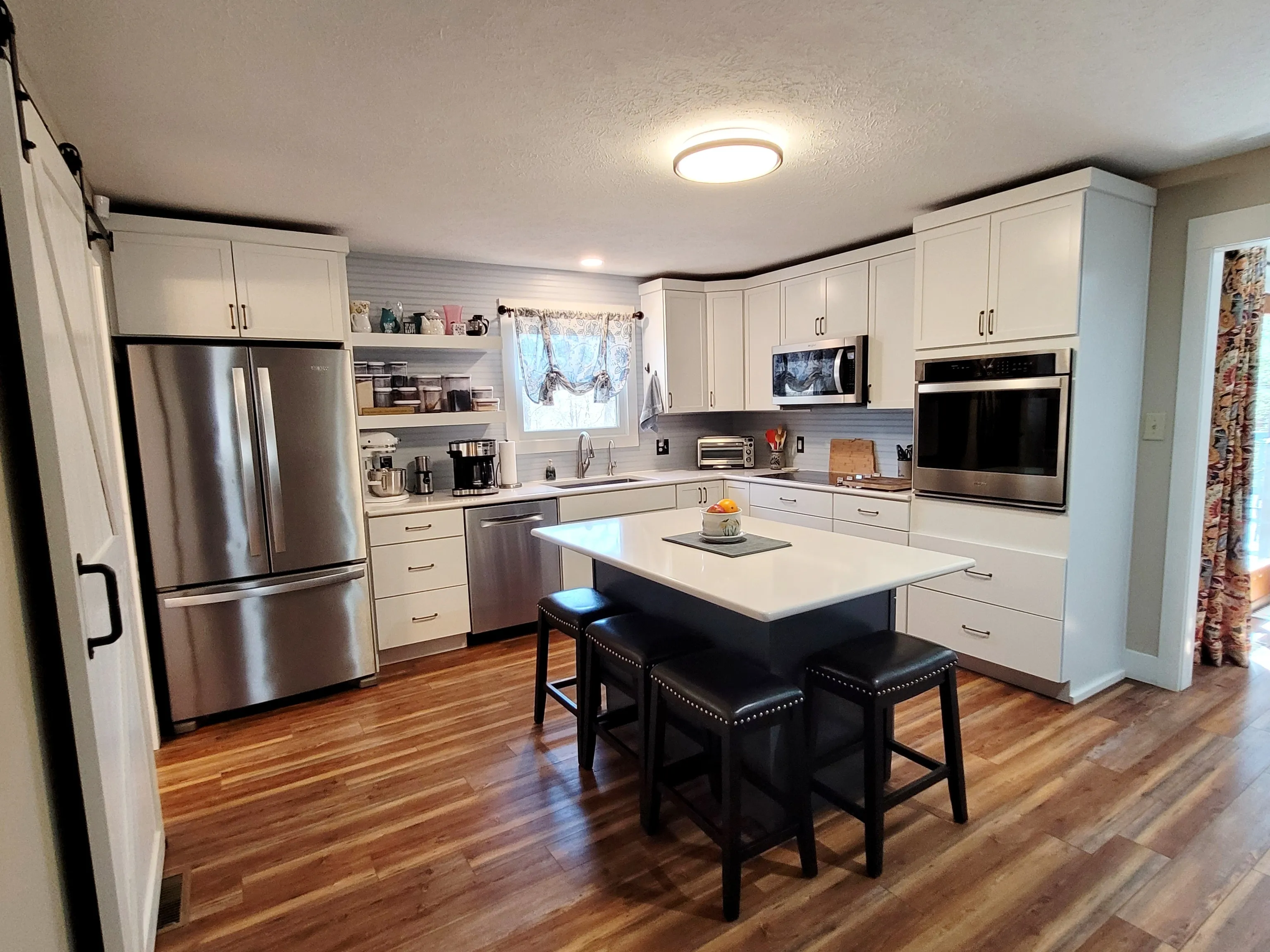 Looking for a cabin with little upkeep close to Nashville, IN? Welcome to this beautiful completely redone cabin on a quiet, private road in the hills of Brown County only a mile from downtown Nashville. Professionally remodeled throughout in 2022-2023: HVAC system; whole house dehumidifier; tankless water heater; kitchen and bathrooms completely redone with new fixtures, cabinetry, appliances, and lighting; LVP throughout entire cabin; ceiling fans; fresh paint. Convenient main floor laundry, finished family room with easy access to unfinished basement/storage/utility area. Professionally completed exterior work: New metal siding (no more woodpecker damage!); Leafguard gutters; new downspouts; extra-long single attached garage with built in storage; new front door and outside lights; brick and stone walkway for easy access around the house; lower stone patio overlooking beautiful trees surrounding the property; minimal outdoor upkeep. Wonderful neighborhood on a private, dead end road. Easy access to Nashville, Bloomington and Columbus.
