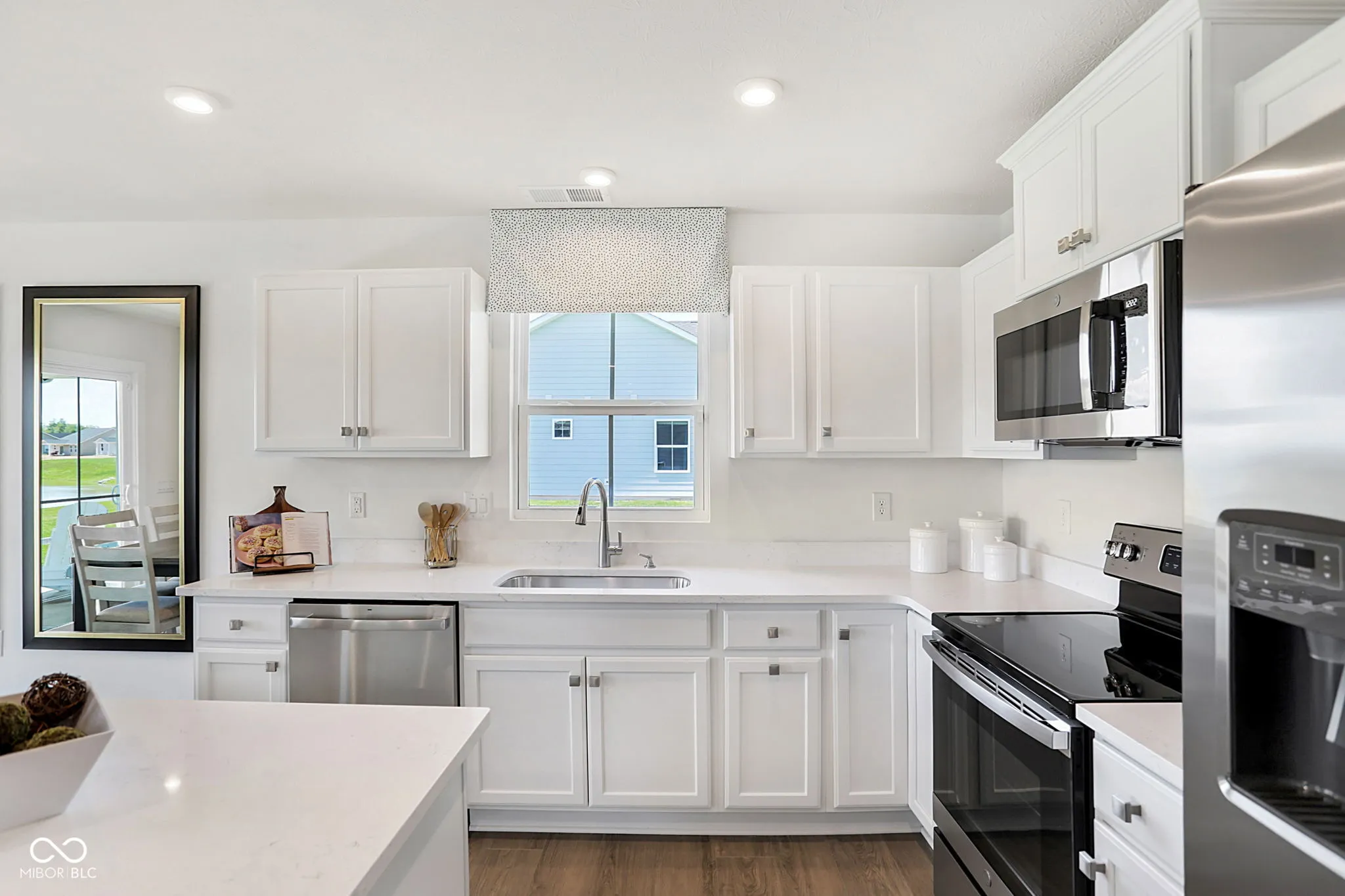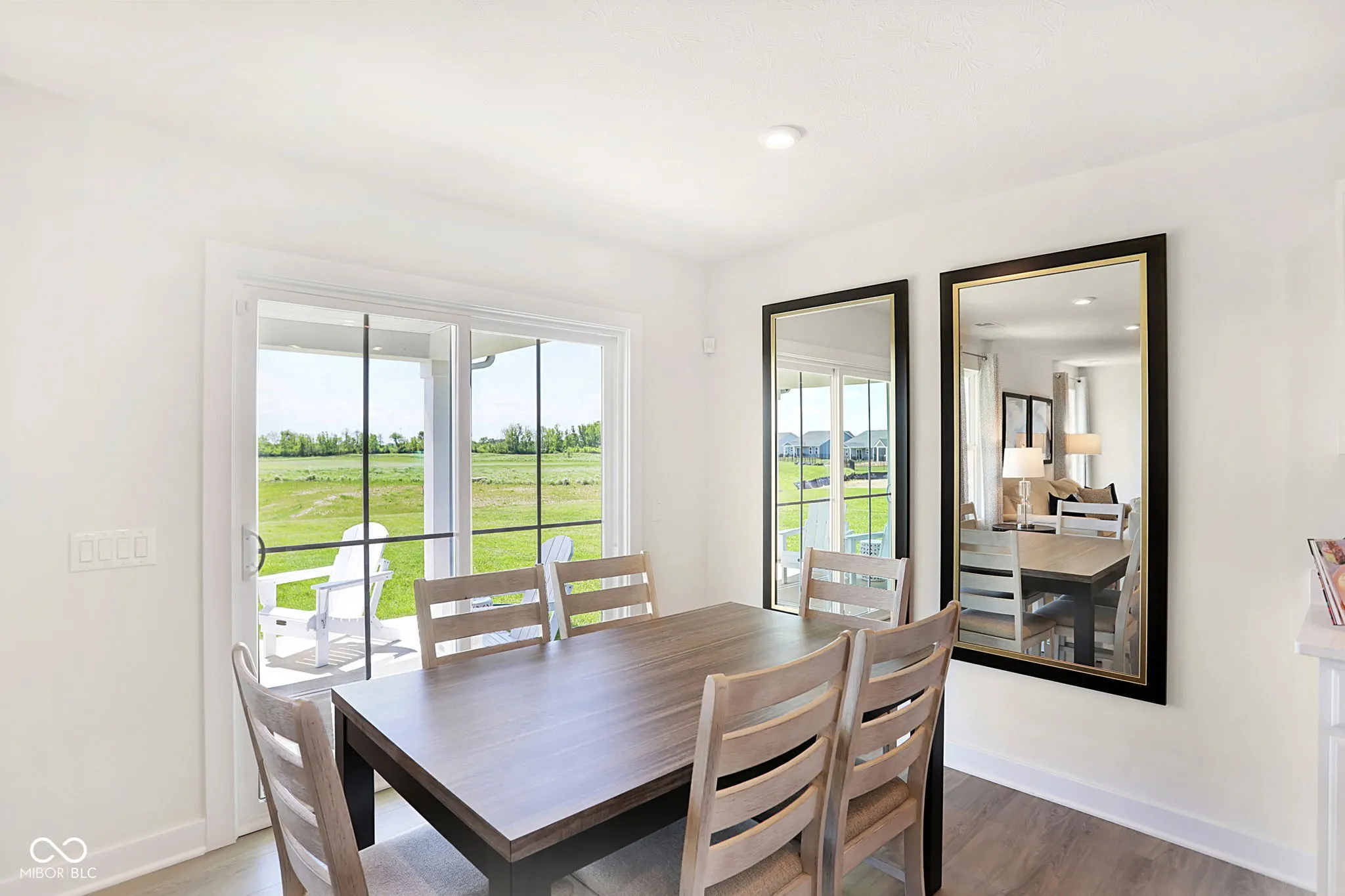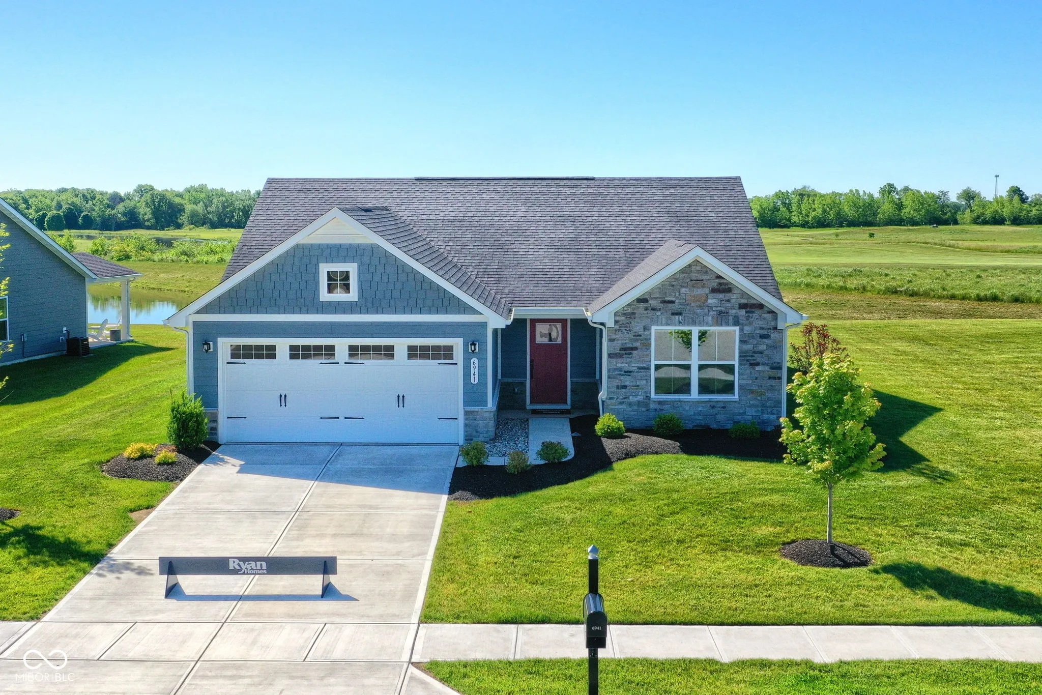 Located in the serene Heartland Crossing community, this newly built ranch home epitomizes modern comfort, style, and low-maintenance living. This 3-bedroom, 2-bathroom home displays a seamless design and all upgraded Grand Bahama options including top-tier appliances, custom cabinetry, elegant countertops, HDMI and Internet cables, LED light package, and washer/dryer. The open floor plan features a bright and inviting living room, perfect for relaxation or entertaining. The adjoining kitchen, with its sleek finishes and center-island, serves as a focal point for enjoying fresh meals or gatherings. The owner’s suite offers a luxurious retreat with a spacious bedroom, walk-in closet, and en-suite bathroom featuring dual vanities and a walk in shower. Two additional bedrooms provide ample space for family, guests, or a home office. A standout feature is the covered back patio overlooking an ideal backyard for enjoying morning coffee or evening barbecues. This premium lot is located on a small private pond and adjacent golf course providing the perfect amount of privacy. Living in Heartland Crossing offers access to numerous amenities, including two swimming pools, tennis and basketball courts, baseball field, parks, walking trails, playgrounds, and a golf course and clubhouse are just out your front door. Lawn care and snow removal is included, enhancing the appeal of this vibrant neighborhood. Move-in ready, this ranch home blends modern design with luxurious features, making it an ideal choice for comfortable and convenient living in Camby.