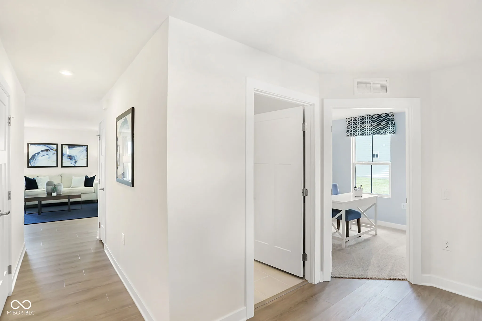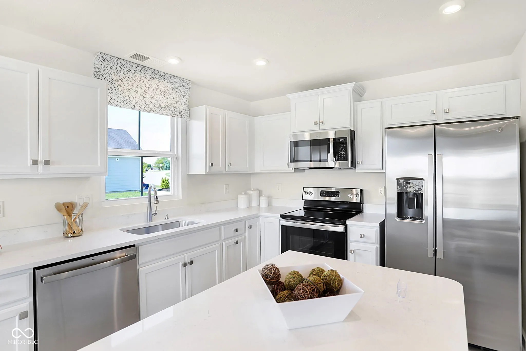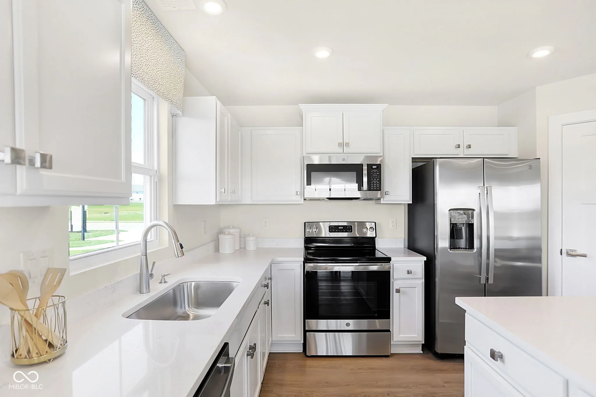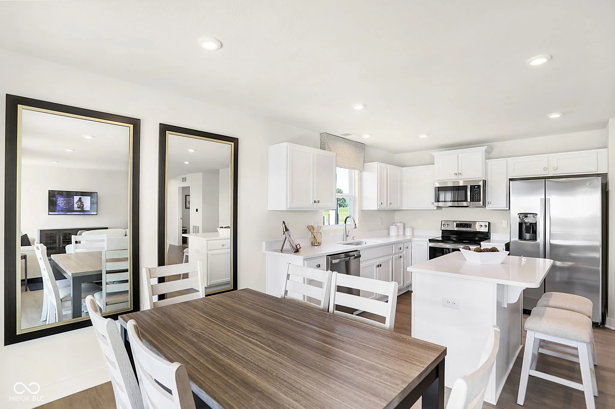 Located in the serene Heartland Crossing community, this newly built ranch home epitomizes modern comfort, style, and low-maintenance living. This 3-bedroom, 2-bathroom home displays a seamless design and all upgraded Grand Bahama options including top-tier appliances, custom cabinetry, elegant countertops, HDMI and Internet cables, LED light package, and washer/dryer. The open floor plan features a bright and inviting living room, perfect for relaxation or entertaining. The adjoining kitchen, with its sleek finishes and center-island, serves as a focal point for enjoying fresh meals or gatherings. The owner’s suite offers a luxurious retreat with a spacious bedroom, walk-in closet, and en-suite bathroom featuring dual vanities and a walk in shower. Two additional bedrooms provide ample space for family, guests, or a home office. A standout feature is the covered back patio overlooking an ideal backyard for enjoying morning coffee or evening barbecues. This premium lot is located on a small private pond and adjacent golf course providing the perfect amount of privacy. Living in Heartland Crossing offers access to numerous amenities, including two swimming pools, tennis and basketball courts, baseball field, parks, walking trails, playgrounds, and a golf course and clubhouse are just out your front door. Lawn care and snow removal is included, enhancing the appeal of this vibrant neighborhood. Move-in ready, this ranch home blends modern design with luxurious features, making it an ideal choice for comfortable and convenient living in Camby.