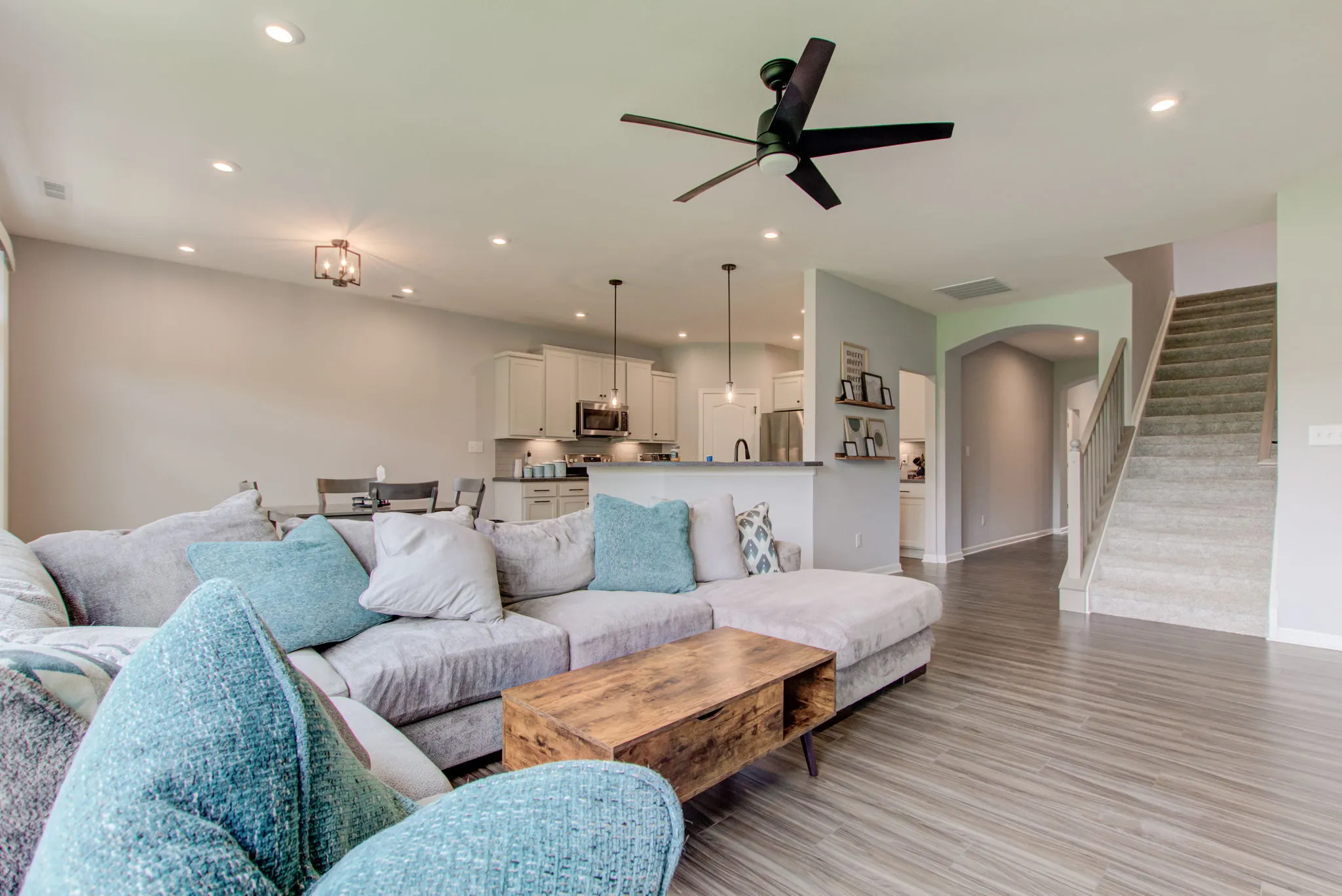 Experience the luxury of owning a meticulously maintained home that is only 2 years old in the highly sought-after neighborhood of the The Enclave at Lyster Lane, nestled in Franklin Township. Offering the benefits of new construction without the inconvenience of construction mess & traffic. This beautiful home boasts 3 bedrooms, 2 baths, a large loft & a bonus room offering unlimited possibilities that meet your needs, including a potential 4th bedroom. Bask in the spectacular natural lighting that floods the family room through wall-to-ceiling windows, creating an inviting and uplifting atmosphere throughout the home. The kitchen features soft close cabinetry, pantry, staggered cabinets, under cabinet lighting, & stainless-steel appliances, making meal preparation a breeze. Retreat to the spacious primary bedroom, complete with a tall double vanity with soft-close drawers, floor-to-ceiling tiled shower, & a walk-in closet with direct access to the laundry room. Step outside onto the large concrete patio & enjoy plenty of yard space, courtesy of one of the largest lots in the neighborhood. The HOA covers all lawn care, so you can relax and enjoy your outdoor space without lifting a finger. Don’t miss out on the opportunity to make this stunning home yours.