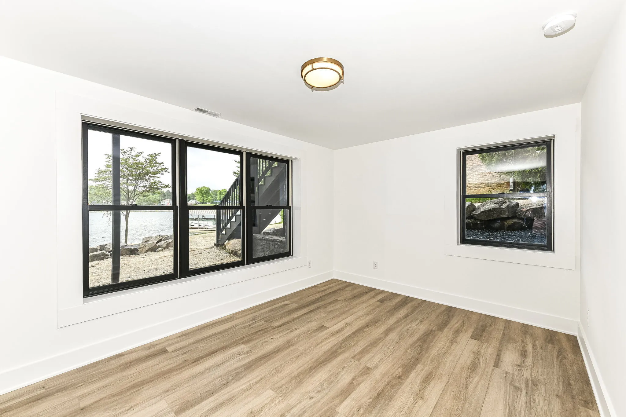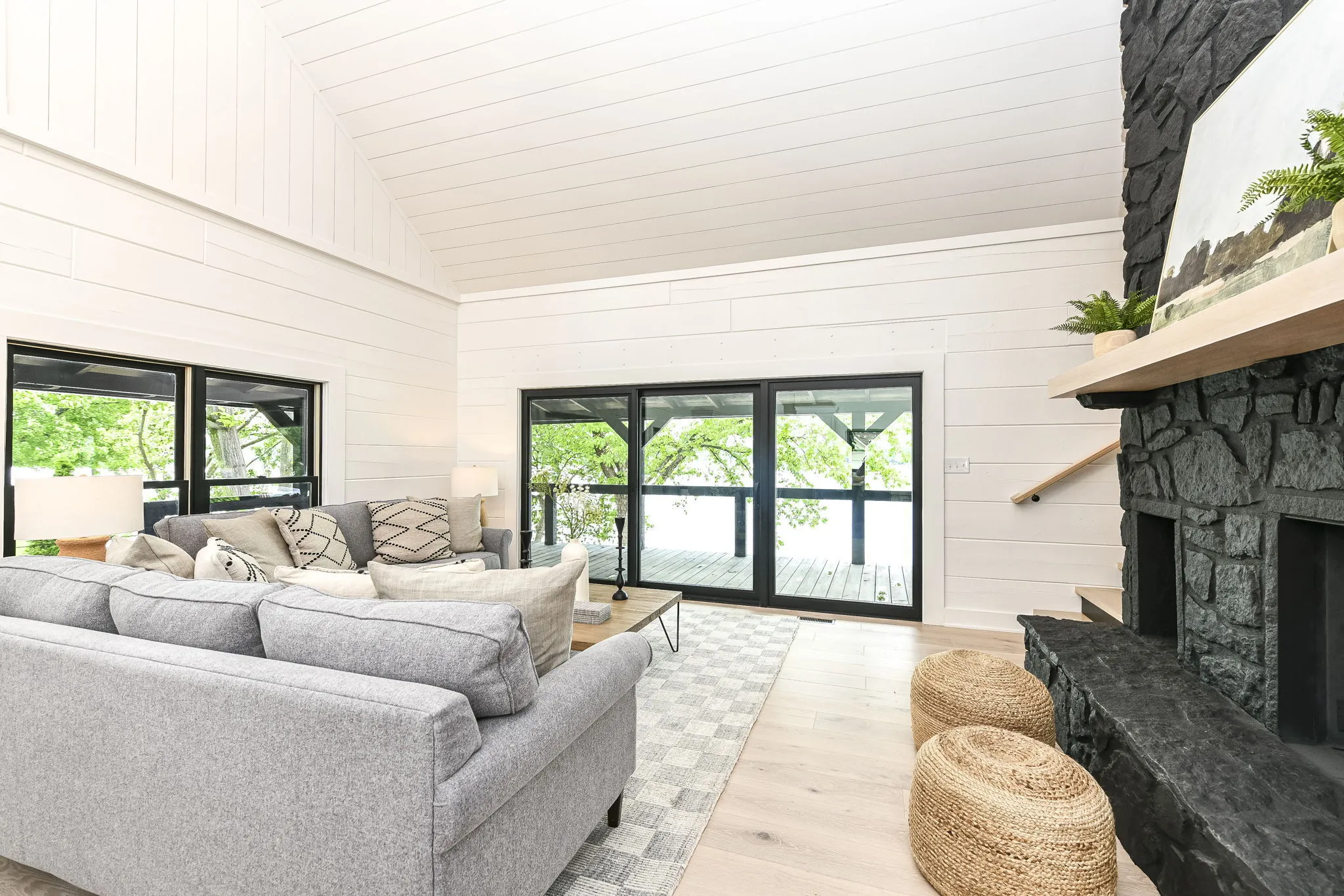 Welcome to your newly transformed luxury lakefront home, where rustic charm meets modern elegance. This exquisite residence offers a perfect blend of natural beauty and contemporary sophistication, providing a serene and stylish retreat. The soaring cathedral ceilings create a sense of grandeur and openness, enhancing the spacious feel of the home. These high ceilings not only allow for an abundance of natural light to fill the space but also offer stunning views of the lake and surrounding landscape, making the living areas feel even more expansive and connected to nature. The kitchen features top-of-the-line appliances that blend seamlessly with the modern design. These high-end appliances not only elevate the style of the kitchen but also offer superior performance and efficiency, making meal preparation and entertaining a delight. The spacious walk-in shower in the primary bath provides ample room to move around comfortably, creating a spa-like experience right in the comfort of your own home. With its generous size, it offers a sense of openness and freedom, allowing you to fully relax and rejuvenate under the soothing flow of water. Combined with the upscale interior features and thoughtful design elements, this remodeled lake home truly offers the ultimate blend of luxury, comfort, and natural beauty. The walk-out basement provides additional living space that opens directly to the beautiful lakefront. This versatile area can be used for a variety of purposes, such as a family room, guest suite, home gym, or entertainment space. The direct access to the outdoors makes it easy to enjoy the lake and surrounding nature, further enhancing the indoor-outdoor living experience. Spend tranquil evenings gathered around the firepit, watching the sunset over the shimmering water. It’s the perfect setting for cozy conversations and making cherished memories with loved ones. Start living your happily ever after in this exquisite lakehome.