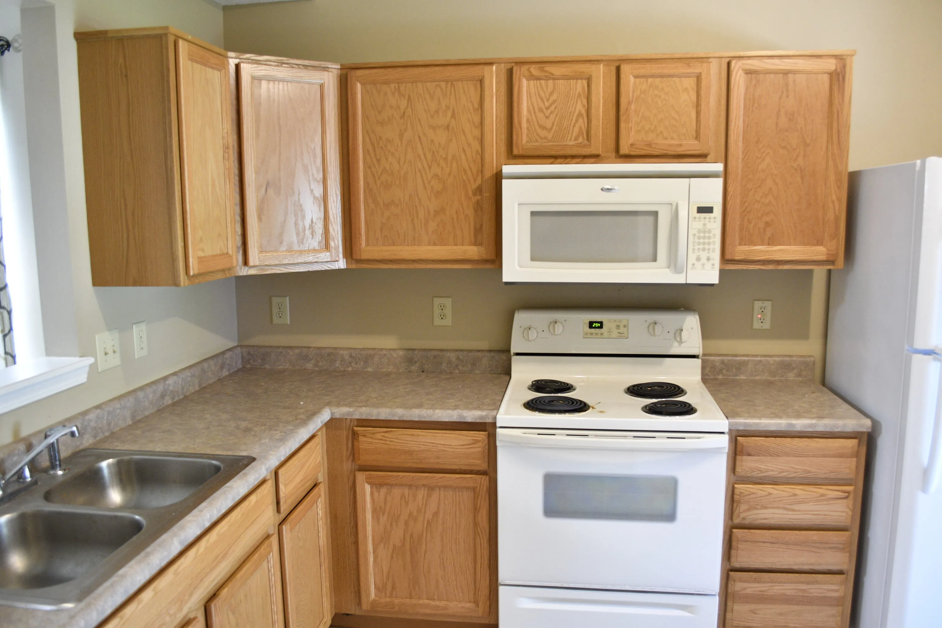 Move-in ready rental boasts three bedrooms and two full baths, super open floor plan. Backs up to wooded area for privacy. Lovely deck to relax on in the evenings. Keep your car out of the elements in your attached two-car garage. Home is all electric. $300 non-refundable pet fee per approved pet. This cozy ranch is a must see.
