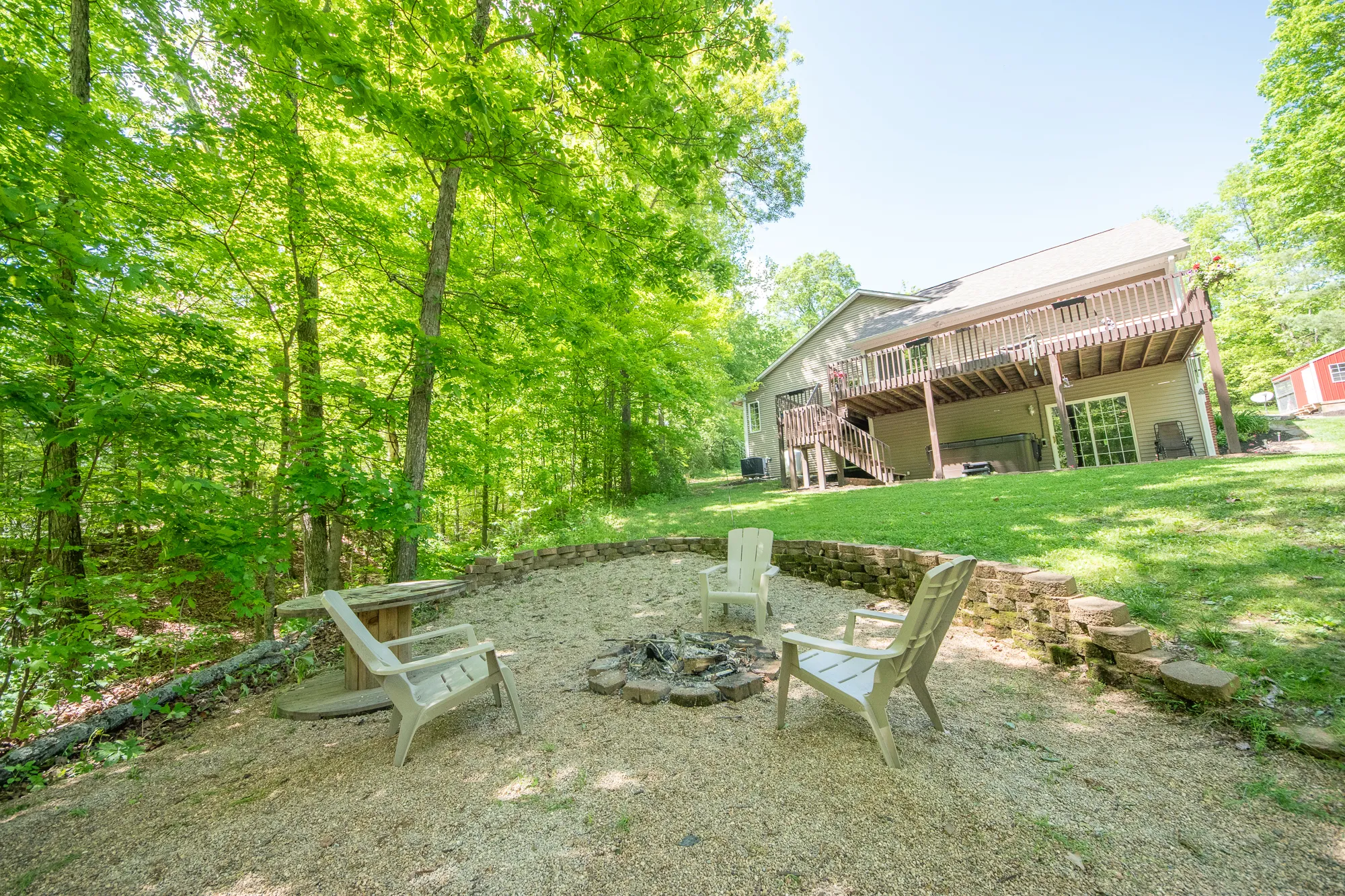 Welcome to the privacy, seclusion, and beauty of this 6 acre property located in Brown County. You will be welcomed home by the modern floorpan with updated kitchen, perfectly connected to the great room. The gourmet kitchen features a central island, quartz countertops, tile backsplash and industrial style 6 burner range. Enjoy the serenity of nature and the outdoors from the large deck. The primary bedroom suite includes plenty of space to relax and well appointed bath with full shower, separate tub and separate toilet. Two additional bedrooms and a full bath complete the main level of this home. In the lower level, the family room provides space to spread out, entertain, or enjoy the view outside. Two additional bedrooms, full bath, laundry room, and plenty of storage space round out this lower level. Walk out from the family room onto the patio perfectly shaded by the deck above for the hot summer afternoons. The 36×22 pole barn with 12×36 lean-to provide storage for any equipment, toys, or hobbies. Property can be hunted and game abounds.