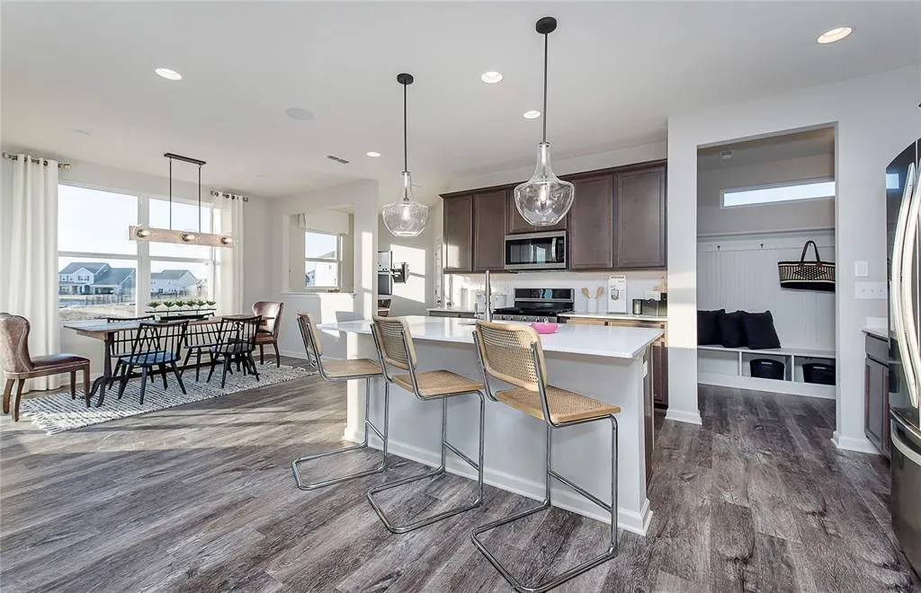The Boardwalk open concept plan is ideal for entertaining. The stunning kitchen features quartz countertops and gas stainless-steel appliances and luxury vinyl plank throughout the first floor. The second floor has a spacious loft, a luxurious owner’s suite with private bath and walk-in closet. There is ample storage within the home plus the 4 feet garage side extension. This beautiful Boardwalk sits on a corner lot that backs up to a berm for privacy. There are endless opportunities when you select new home construction to live in Westmoor of Noblesville. Located just off Hazel Dell Road, Westmoor offers a convenient location minutes from everyday conveniences along w/ upscale shopping & dining at Clay Terrace.