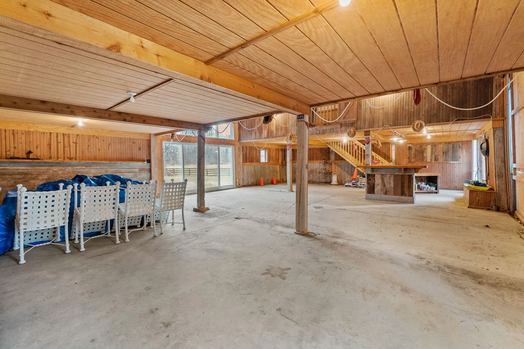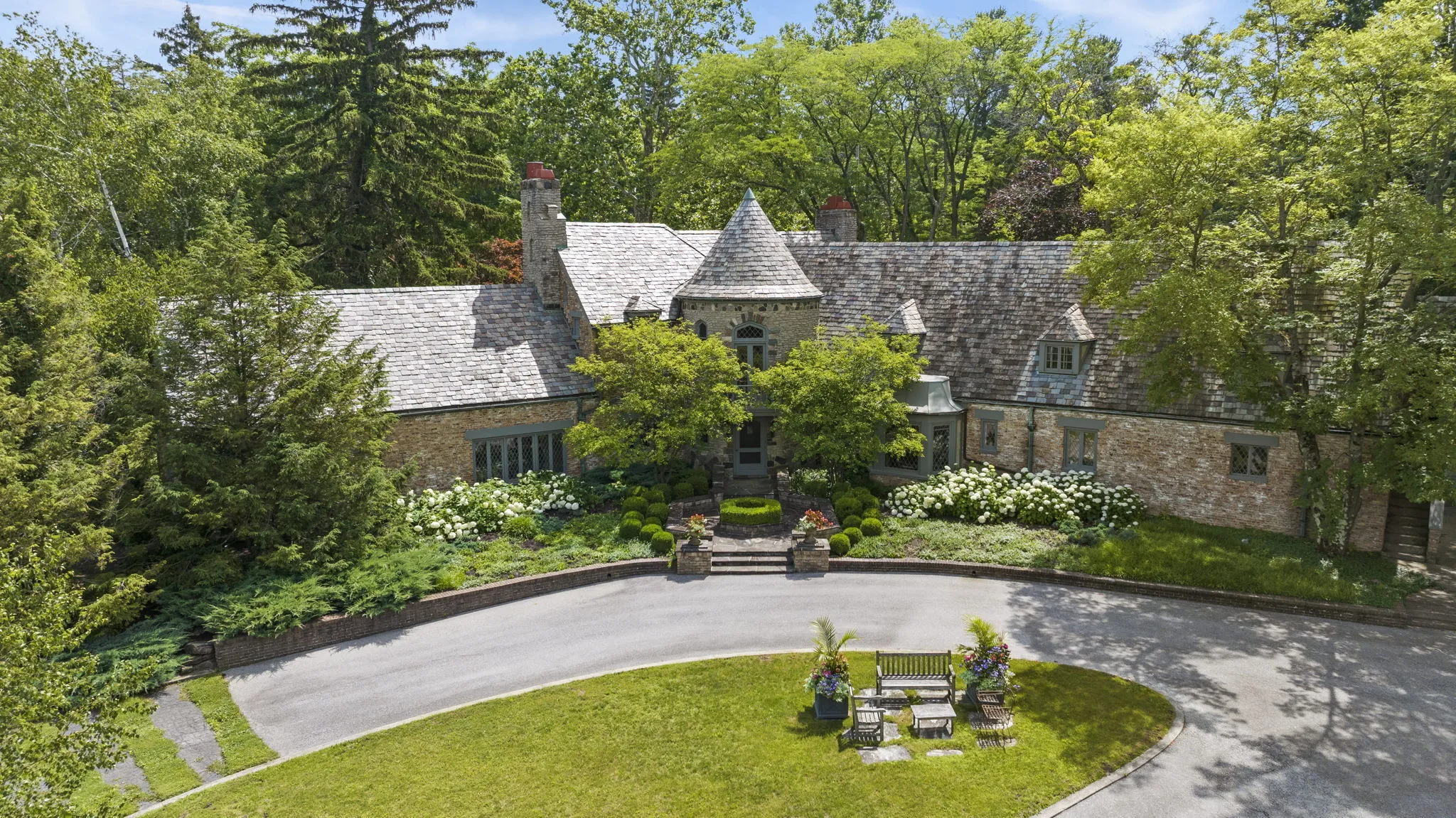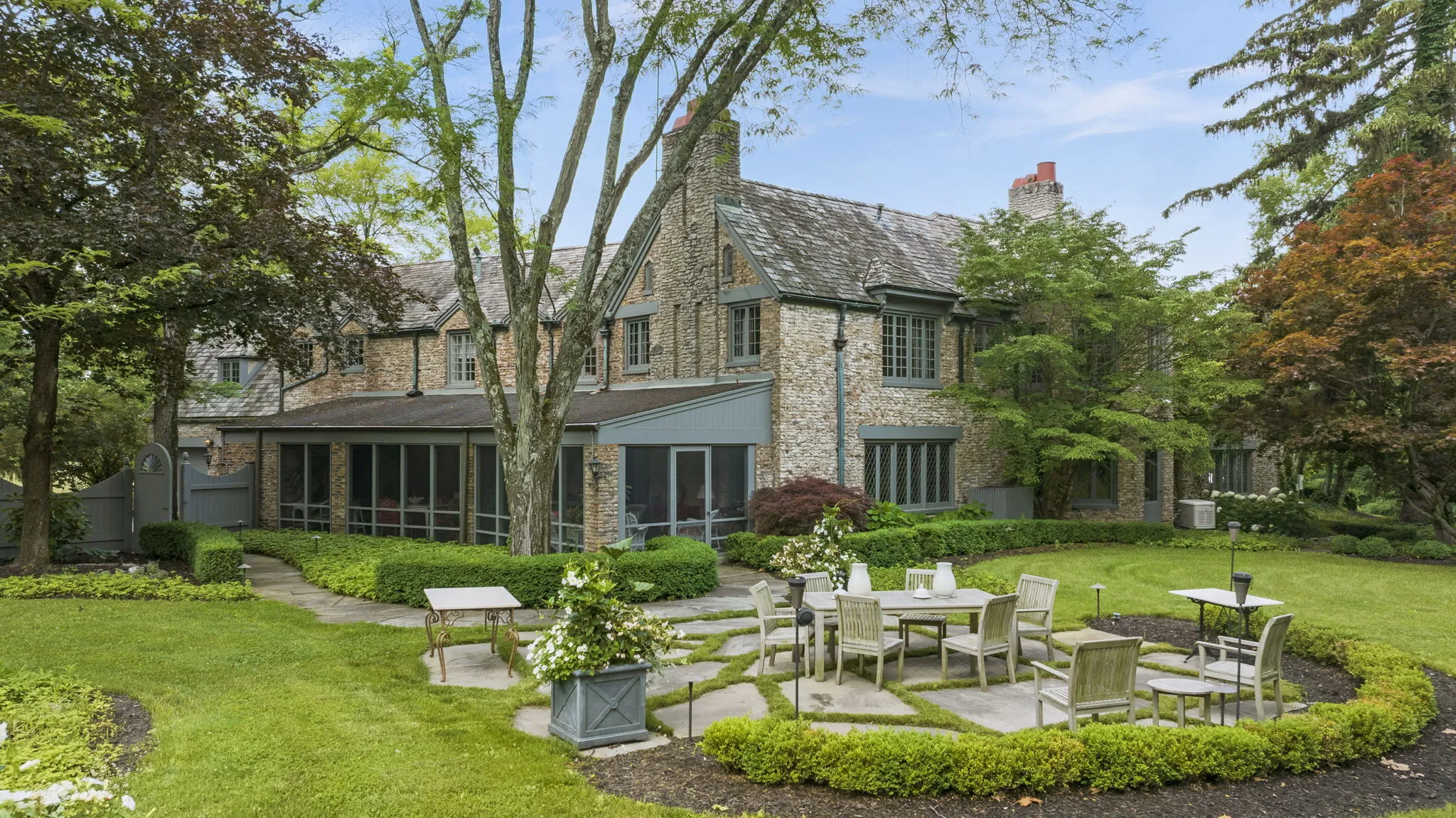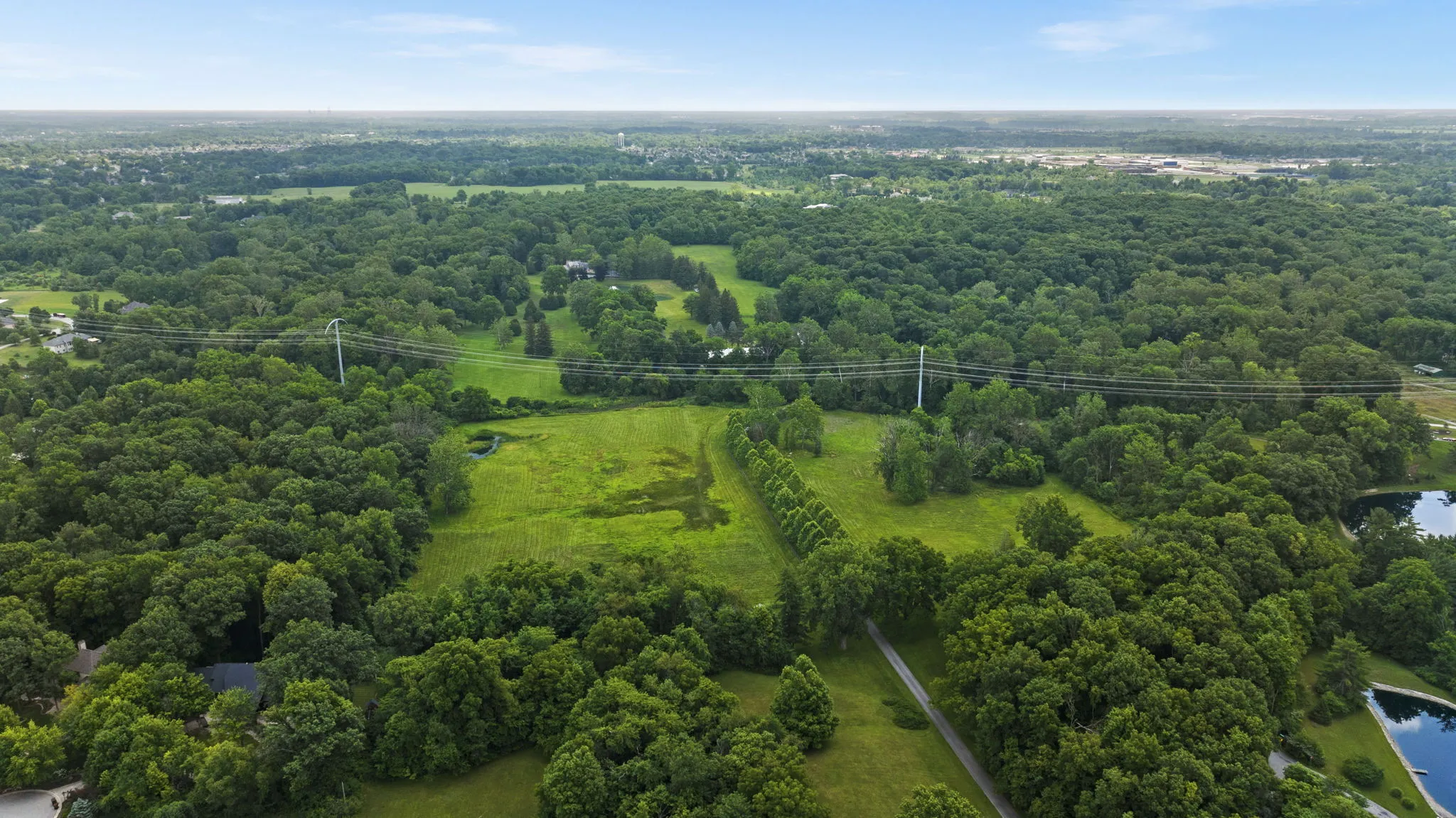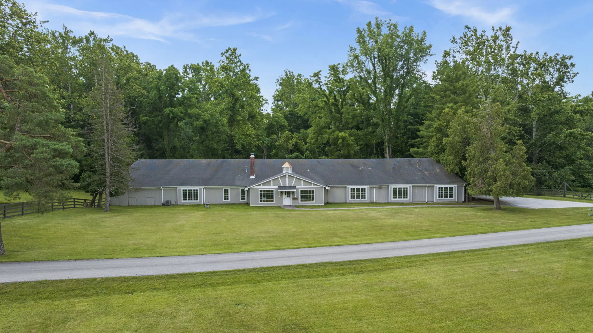 Covington Manor Farms is an elegant luxury estate and distinctive country home seated on over 63 acres of prestigious Southwest Fort Wayne landscape. A 6,846 sqft. English Tudor home sits at the end of a long tree-lined drive just beyond two ponds. Endless possibilities await a new owner, as the property also includes a workshop/three car garage in addition to the attached 2 car, horse arena and stables, a separate business office and a party barn. The historic stone-wrapped landmark home sits secluded atop a hill with pristine landscaping. The grand 2 story entry features a circular stairwell that wraps up towards the Juliet window on the front of the home. Entertainment awaits in the elegant and spacious living room, with soaring ceilings, hand-hewn oak beams with timber native to the property, and a 2 story English stuccoed fireplace, which tapers as it extends upward. All of your guests will find ample room to feast in the large formal dining room with fireplace. The cozy library on the main level also features a fireplace and built-ins. The kitchen features Imperial Danby honed marble countertops, built-in Sub-Zero freezer and refrigerator, butler’s pantry with wet bar, and a dine-in area with windows to take in the morning views outside. On a beautiful day, meals can be cooked and enjoyed in the expansive screened-in porch, with kitchen featuring built-in grill and honed soapstone counters. A home office is located off of the kitchen, as well as a large laundry room and a bath and another half-bath on the main level. Utilize a rec room, exercise room, plus a wine bar and additional kitchen space. The possibilities are truly whatever one can imagine at Covington Manor Farms! Exact duplicates of the White House gates sit at the front of the property. The past location of the historic Fort Wayne charity horse show and multiple on-site weddings, this grand estate is ready for generations of family and friends to explore and enjoy.